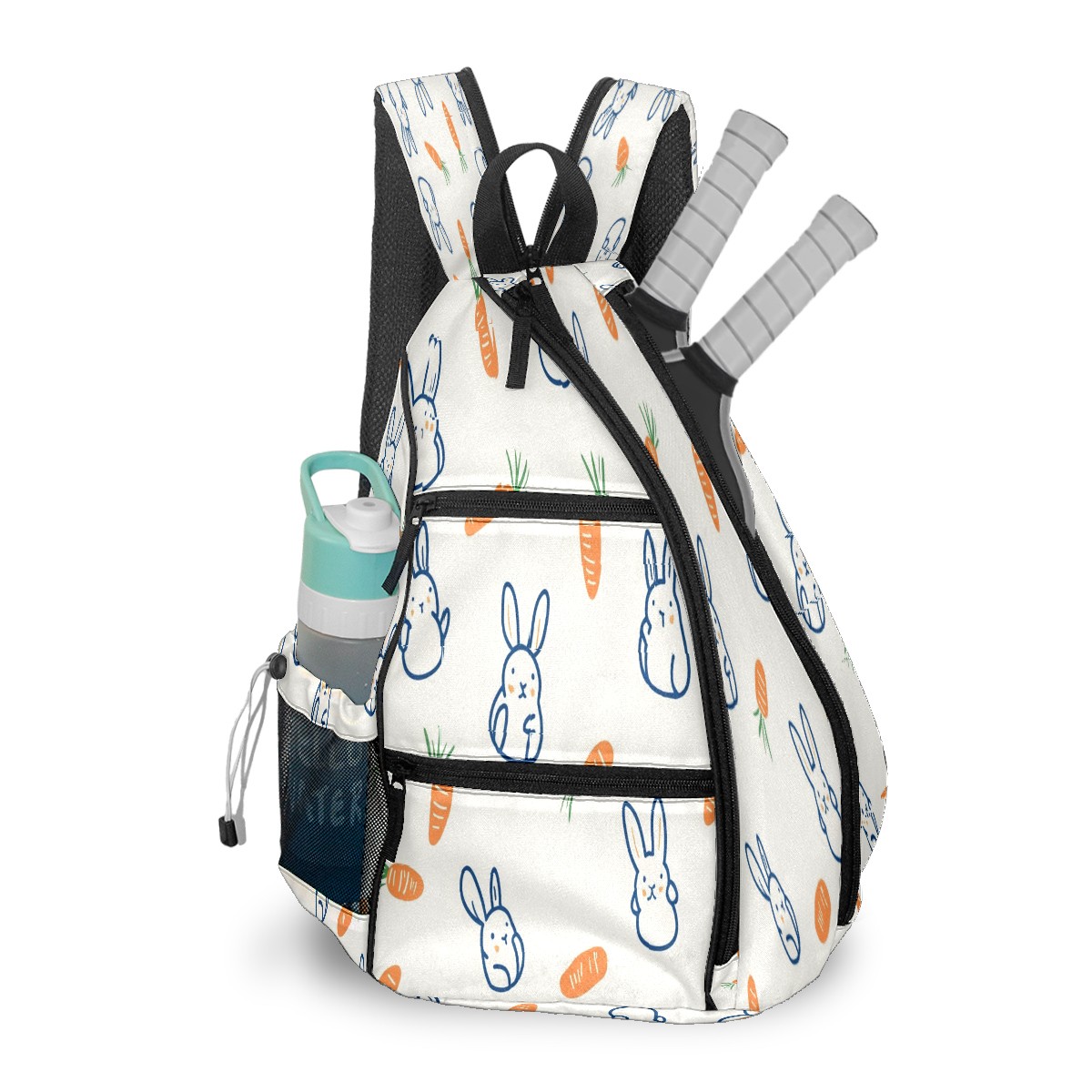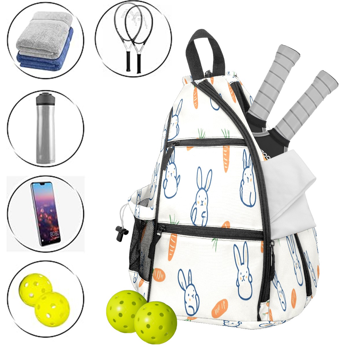 Pickleball Backpack for Women and Men, Adjustable Pickleball Sling Bag for Paddles, Balls & Accessories (Rabbits And Carrots)