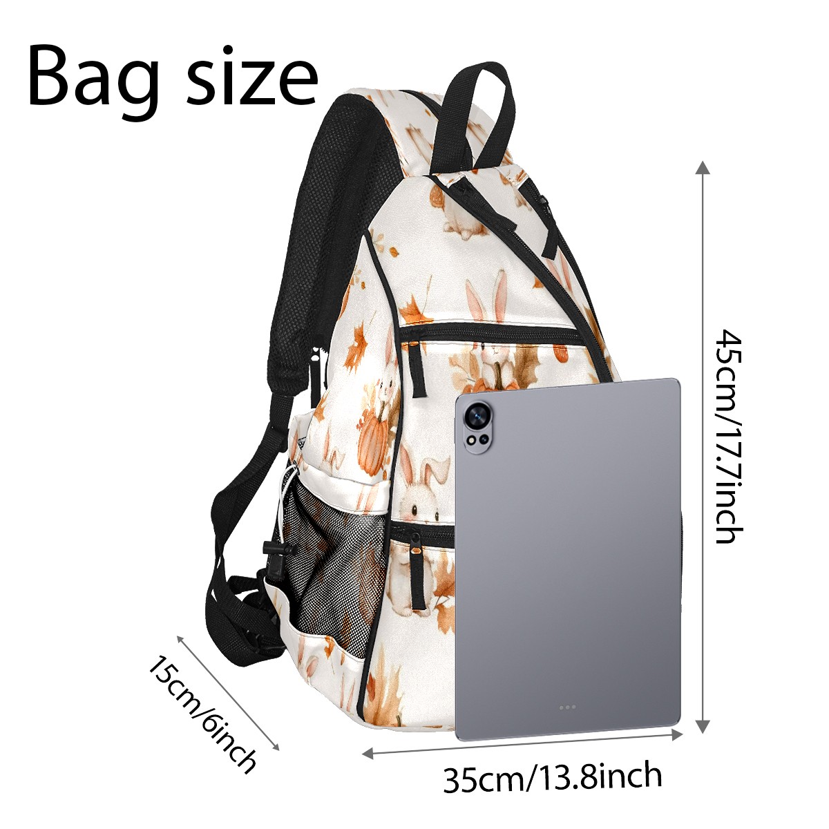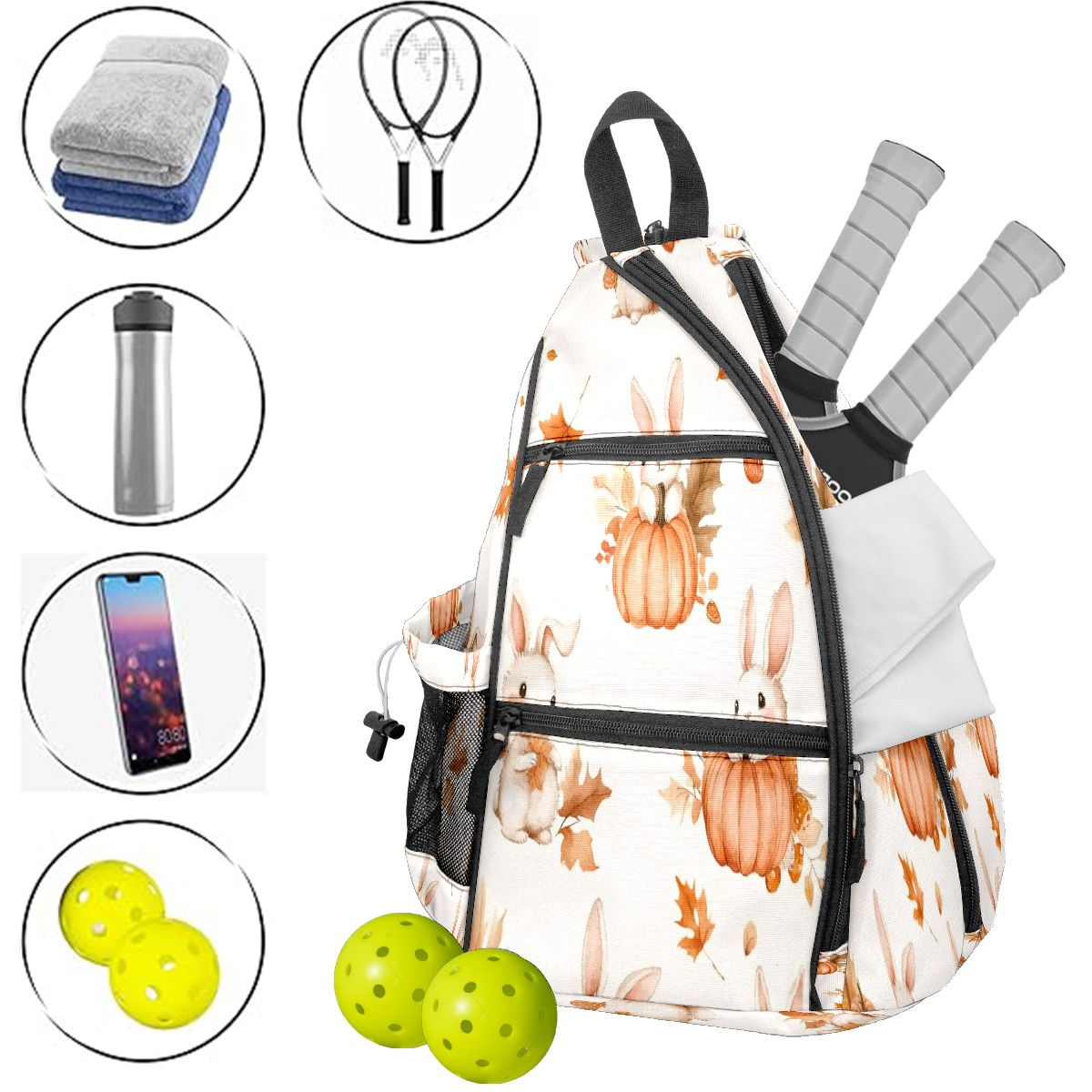 Pickleball Backpack for Women and Men, Adjustable Pickleball Sling Bag for Paddles, Balls & Accessories (Bunnies And Pumpkin)