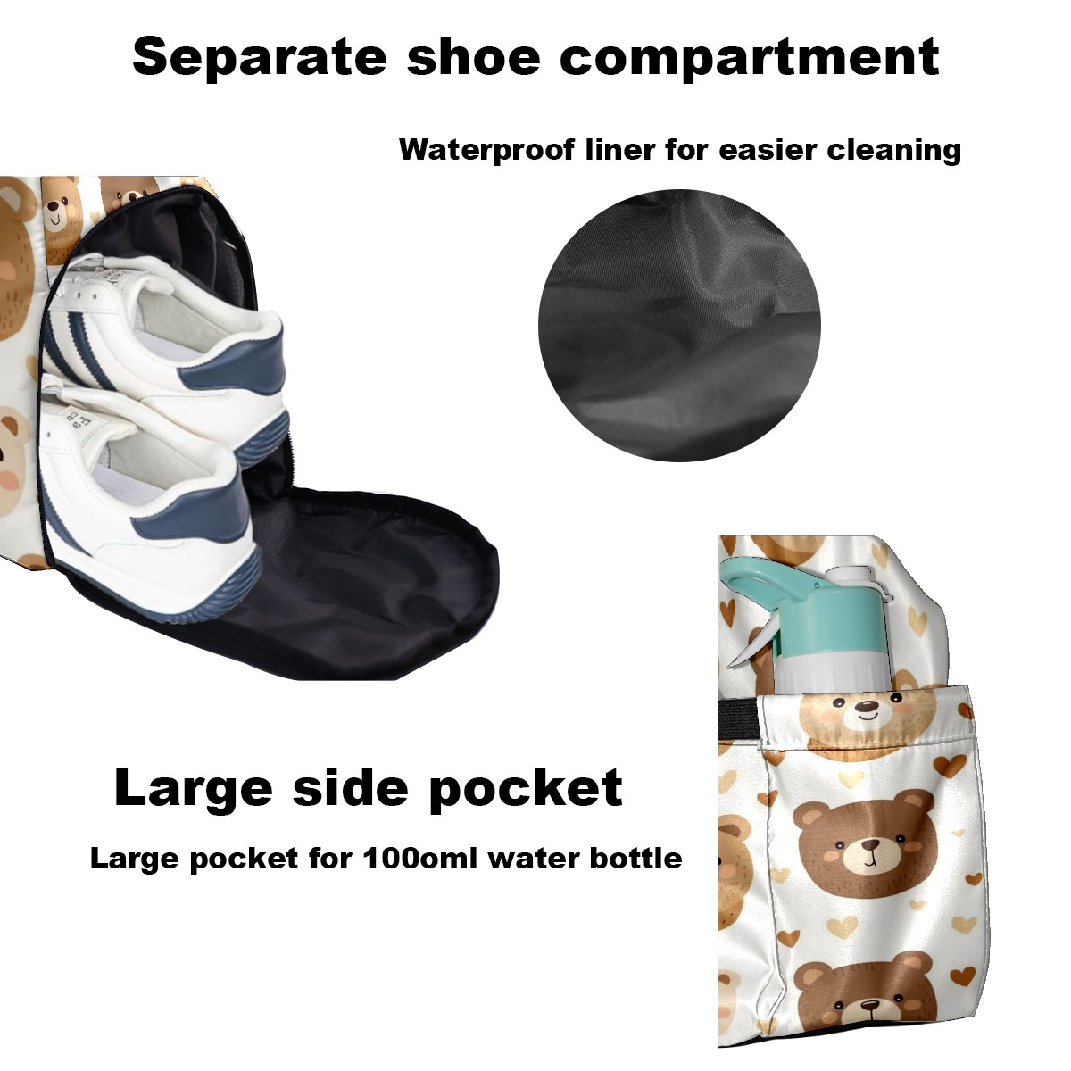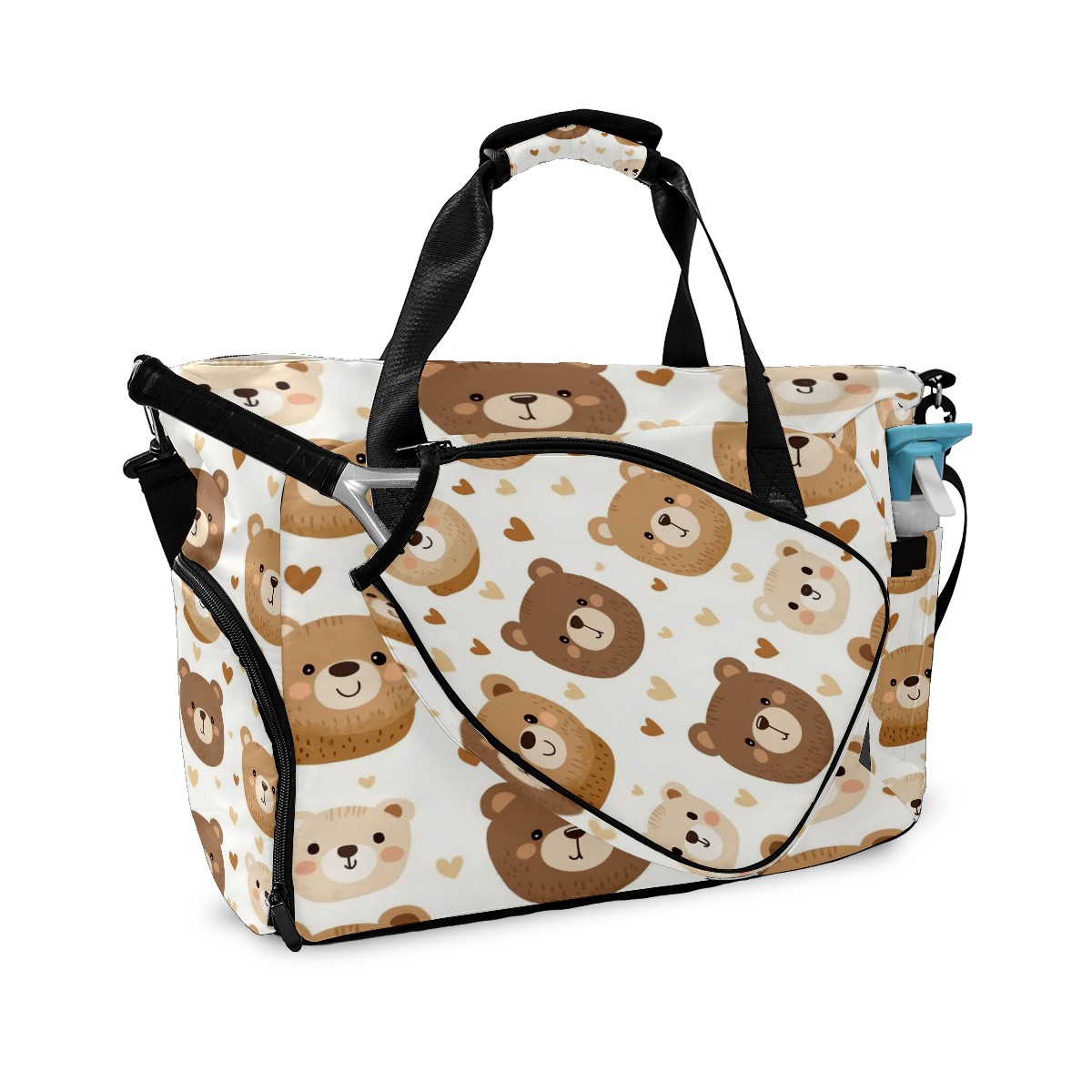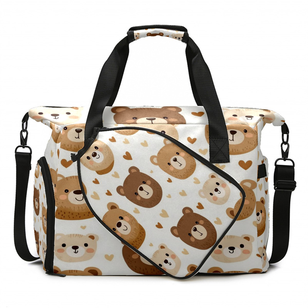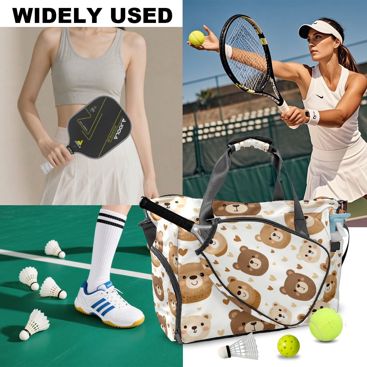 Pickleball Tote Bag Carryall for Paddles Balls and Accessories, Portable Lightweight Gear Bag for Players(Teddy Bear)