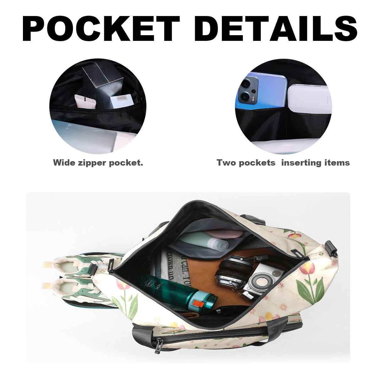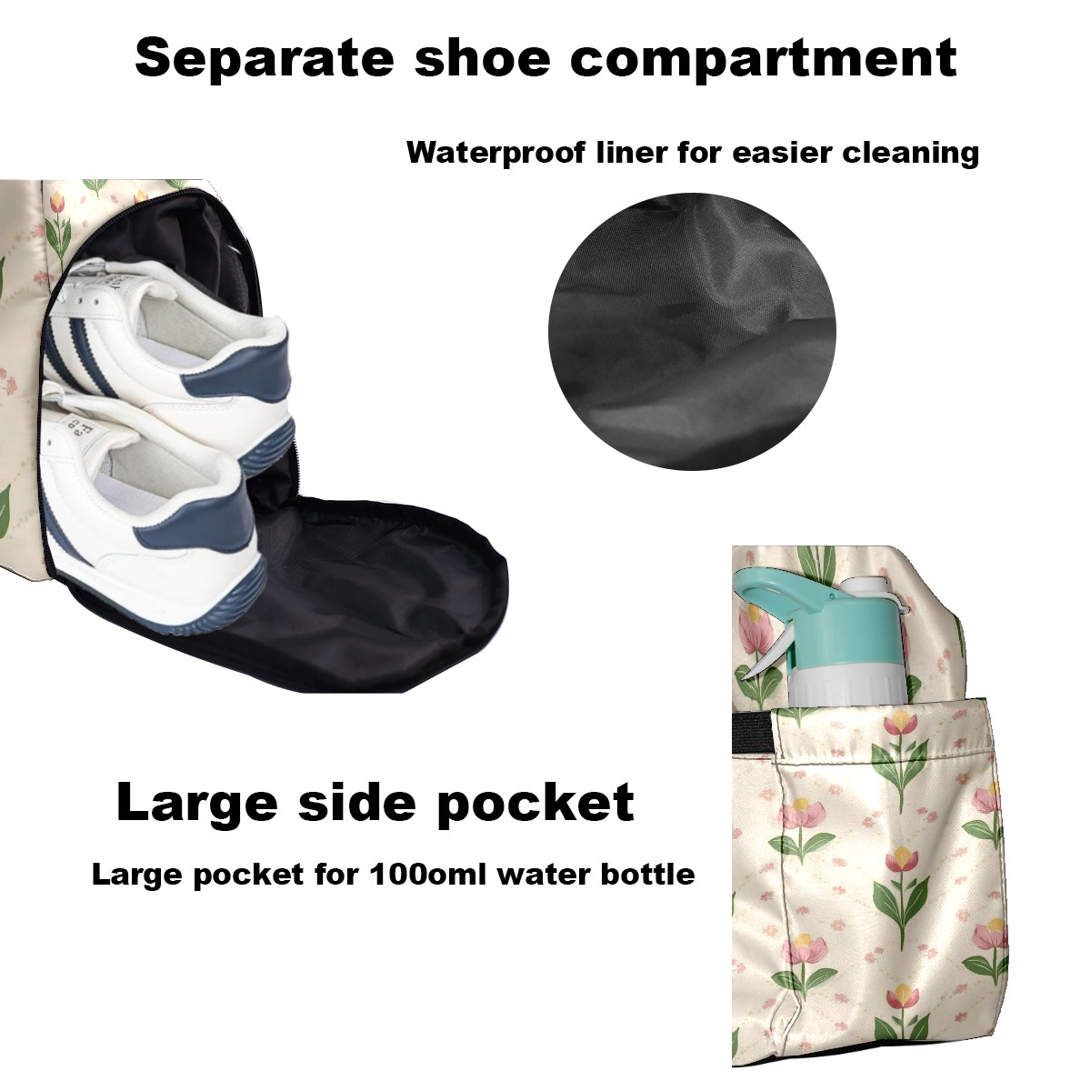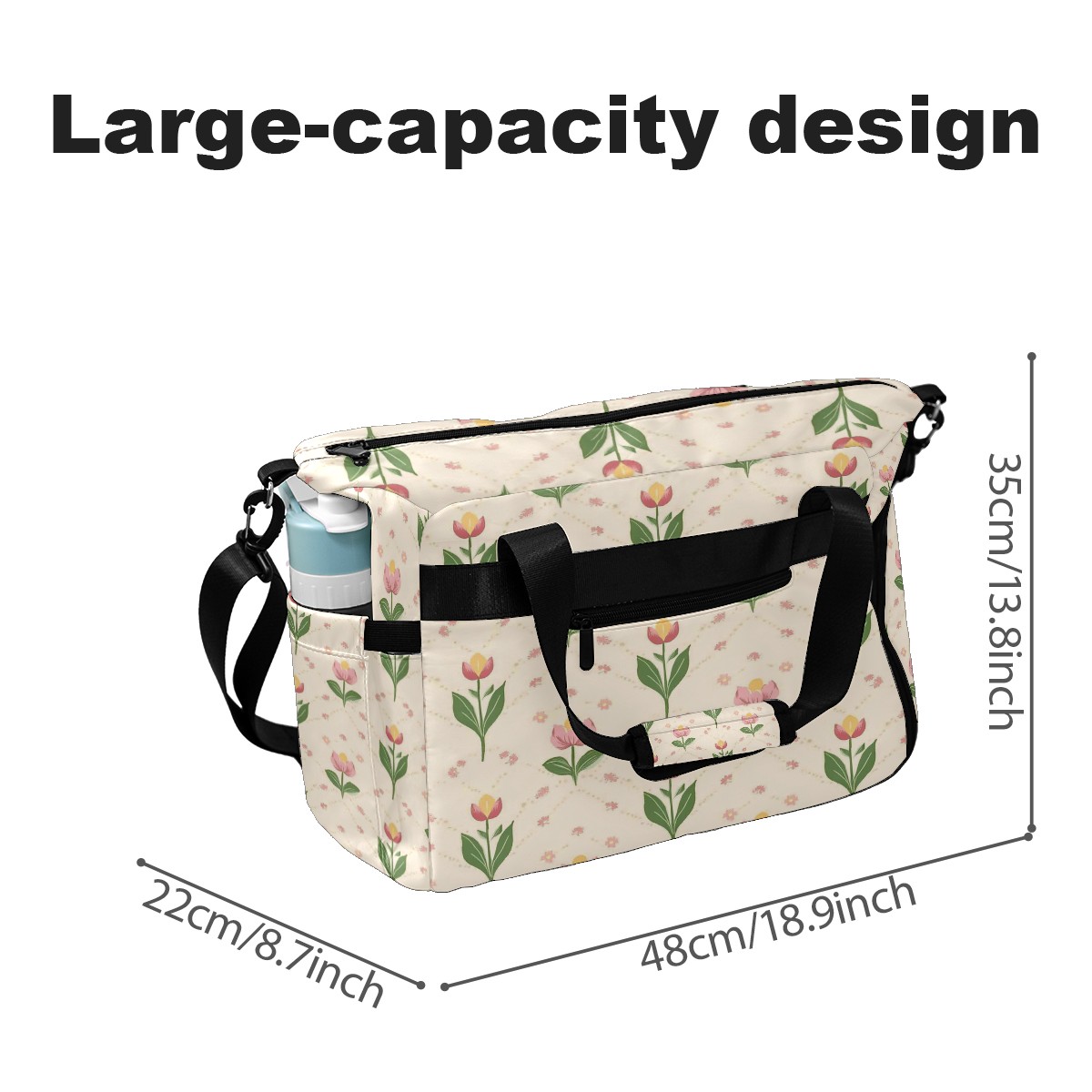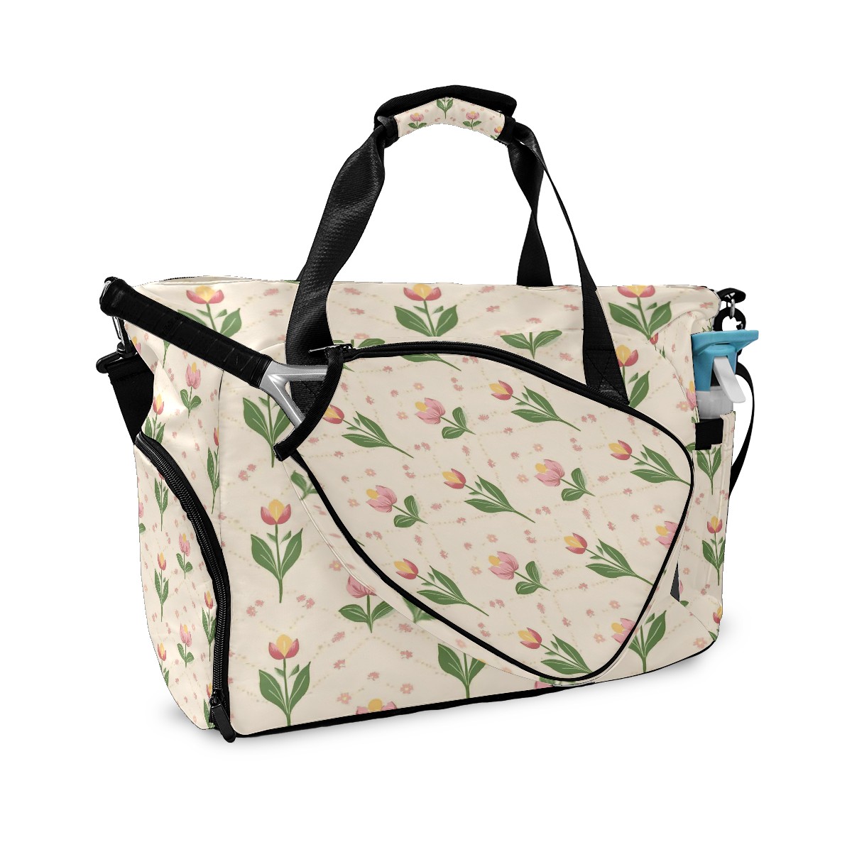 Pickleball Tote Bag Carryall for Paddles Balls and Accessories, Portable Lightweight Gear Bag for Players(Small Tulips)
