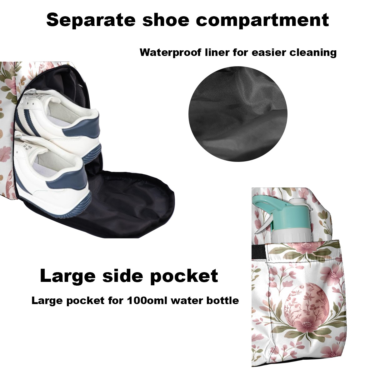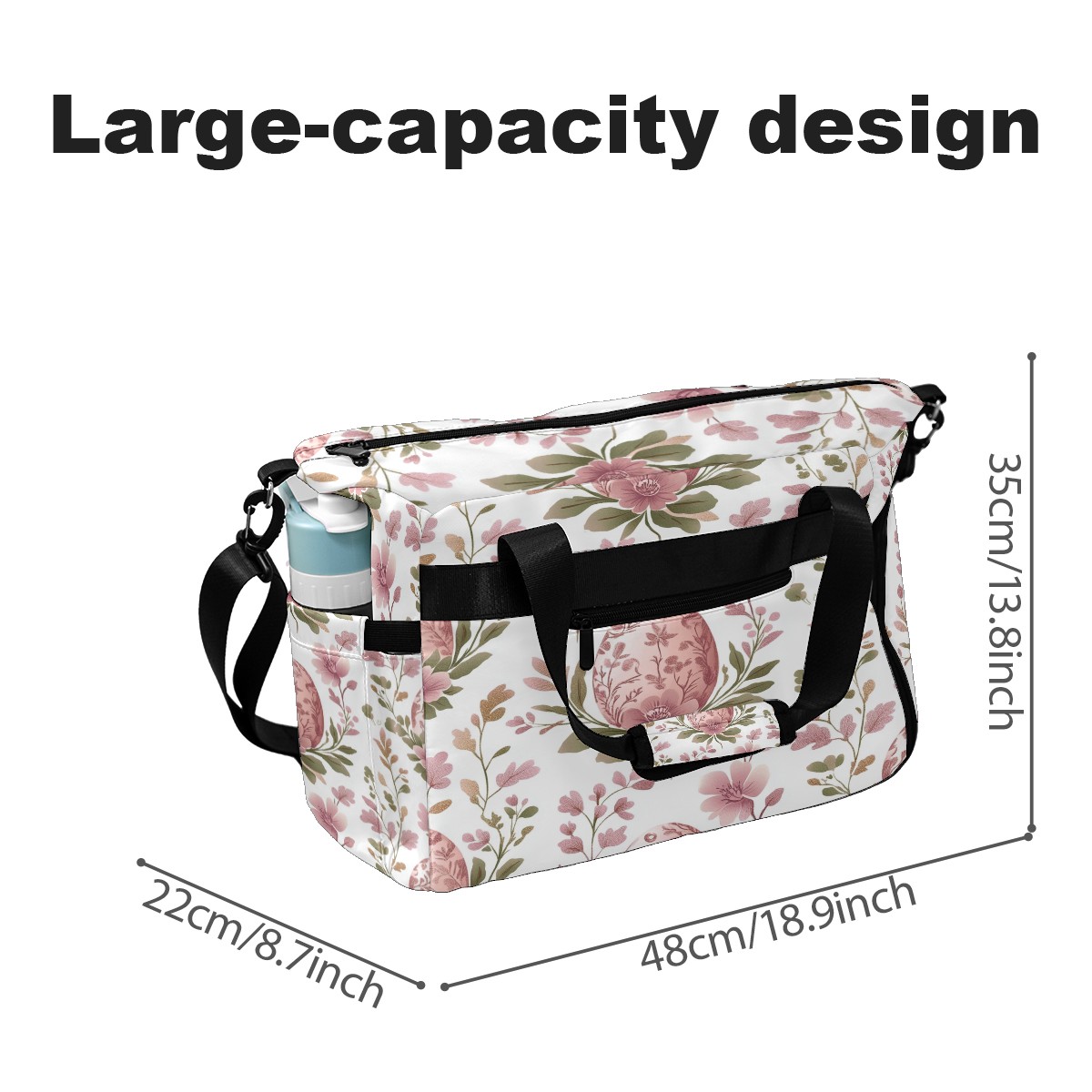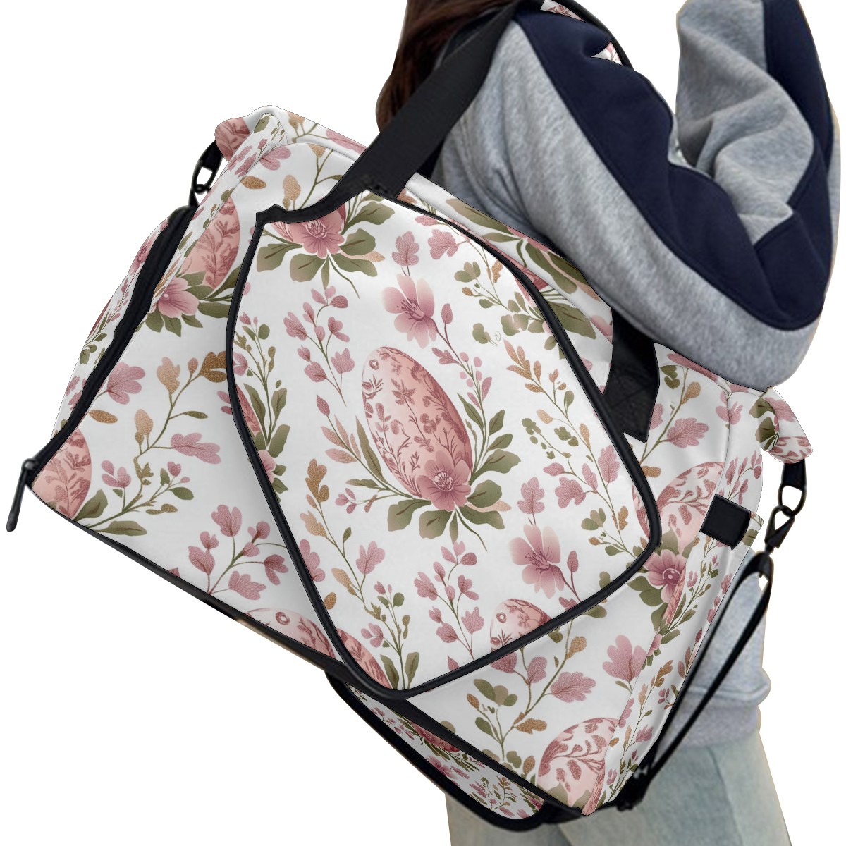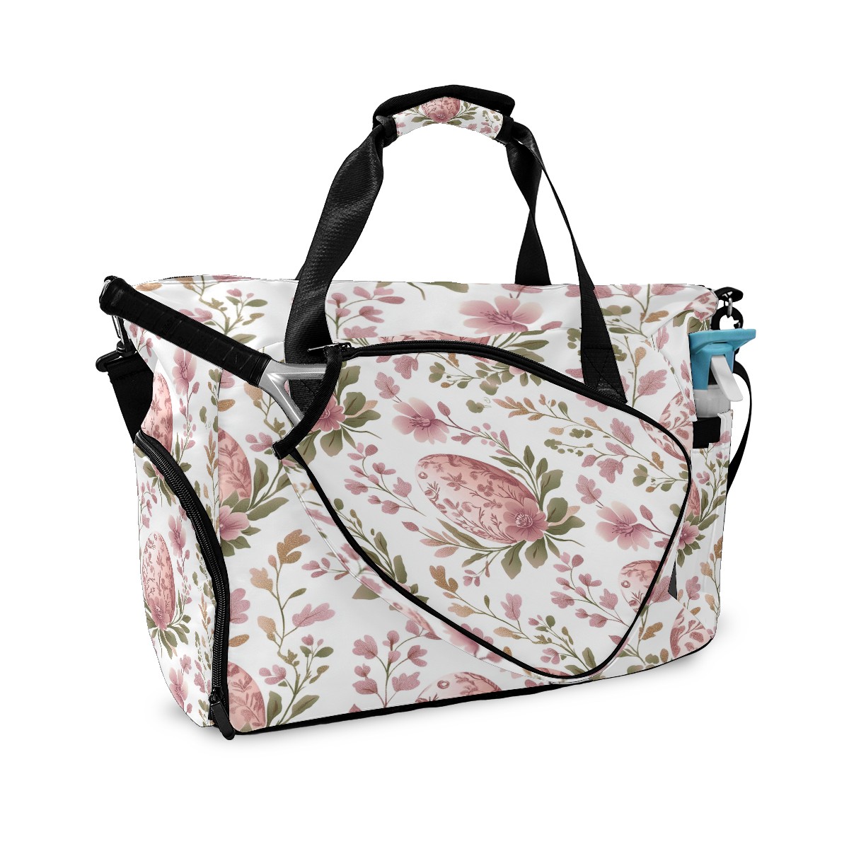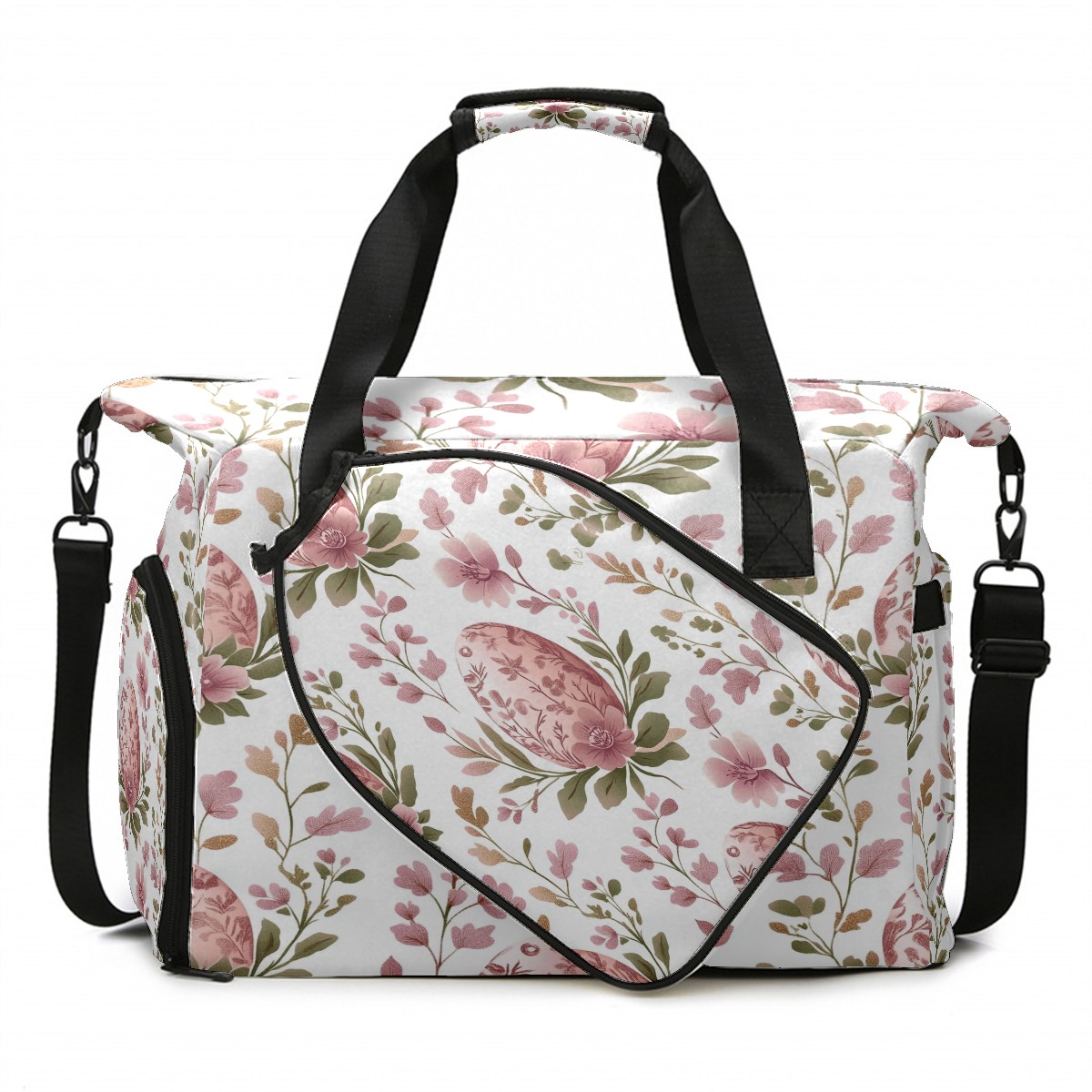 Pickleball Tote Bag Carryall for Paddles Balls and Accessories, Portable Lightweight Gear Bag for Players(Pink Egg-shaped Floral)