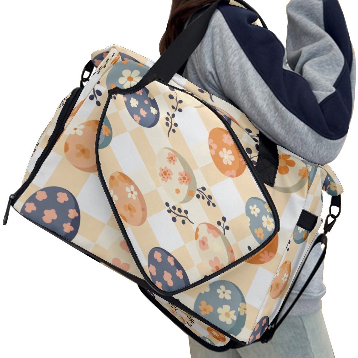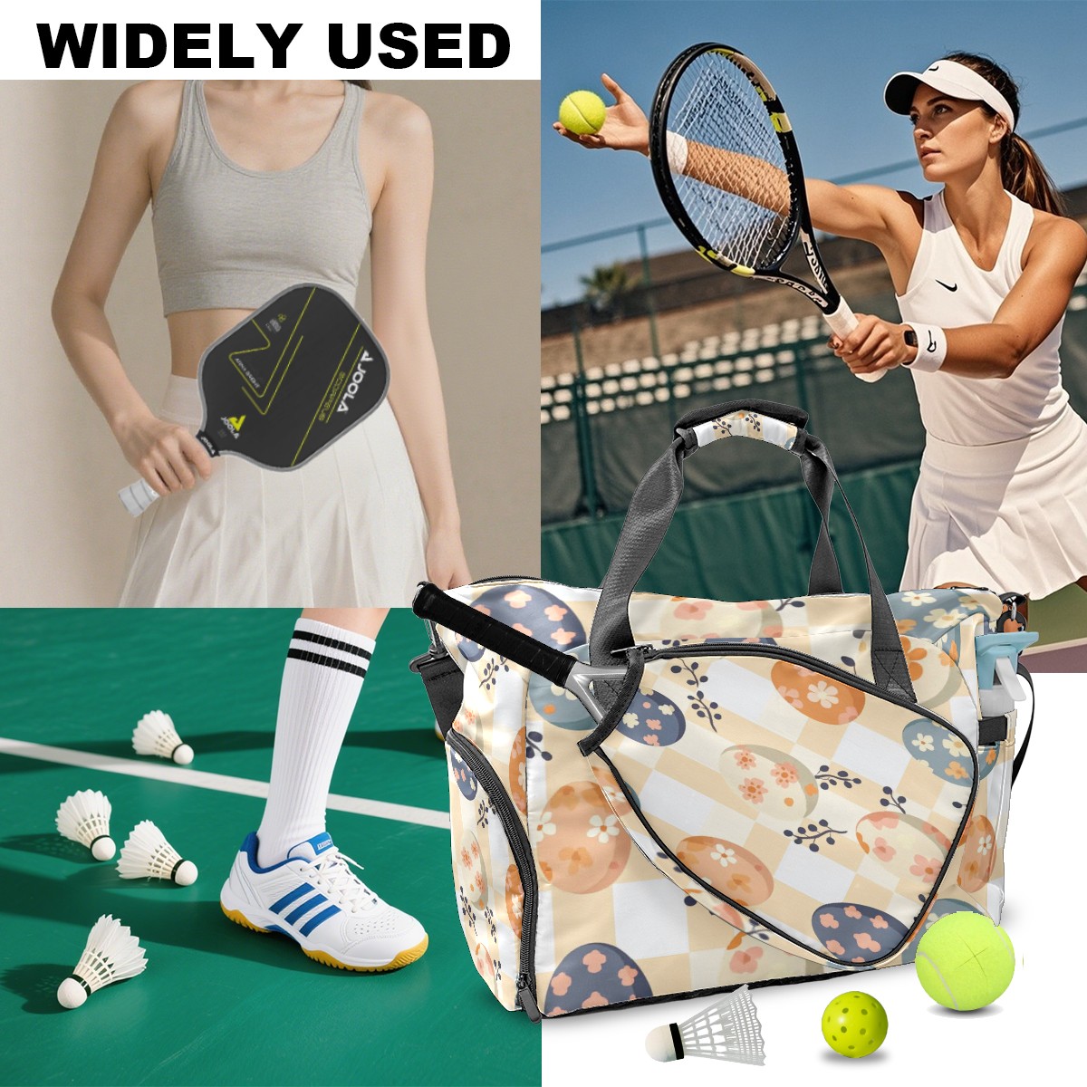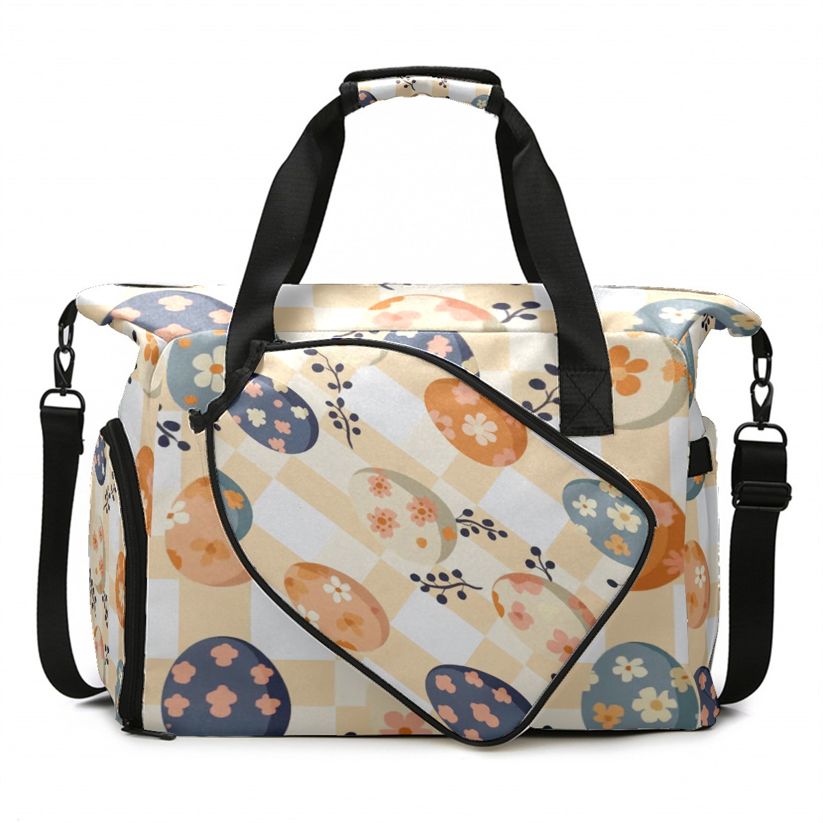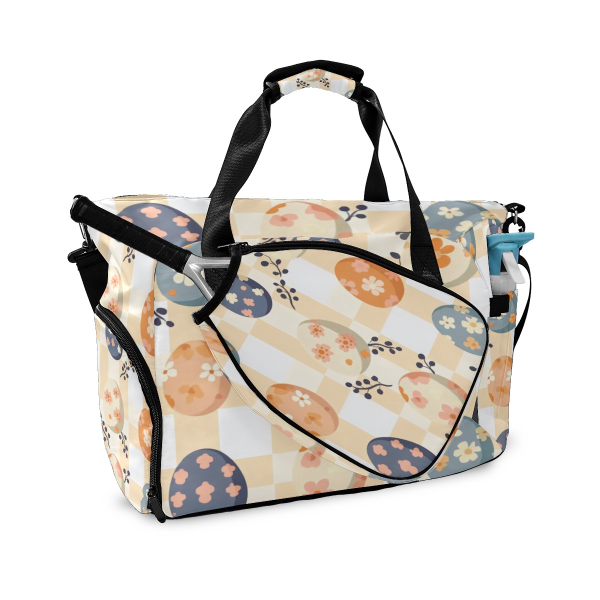 Pickleball Tote Bag Carryall for Paddles Balls and Accessories, Portable Lightweight Gear Bag for Players(Pastel Easter Eggs And Flowers)