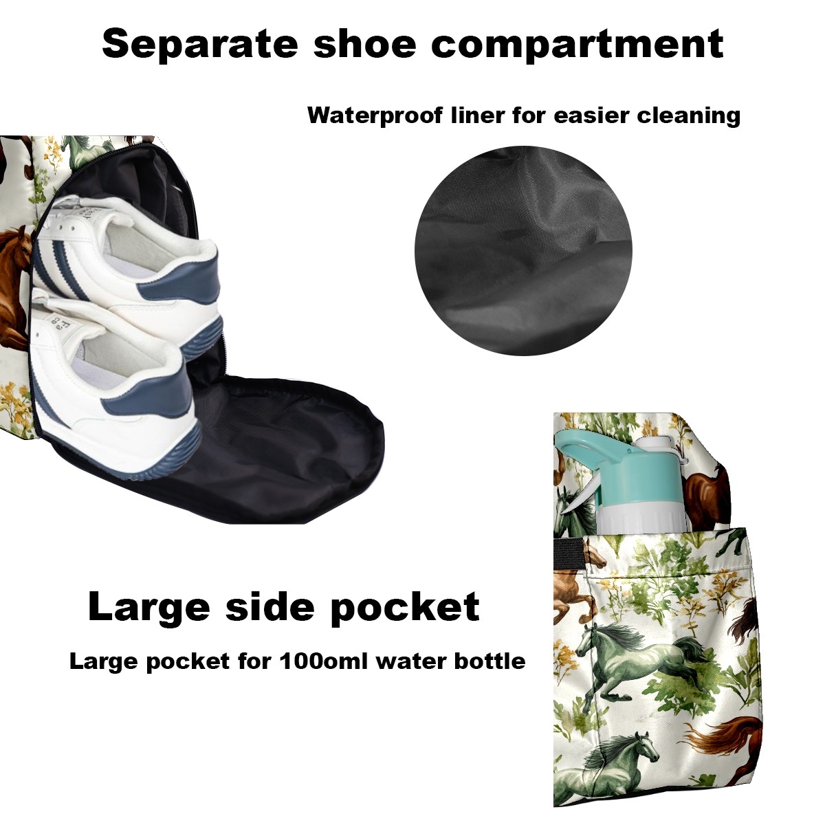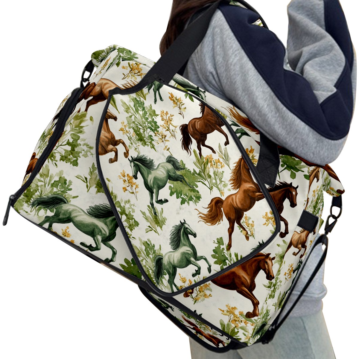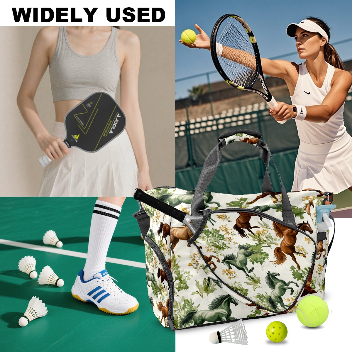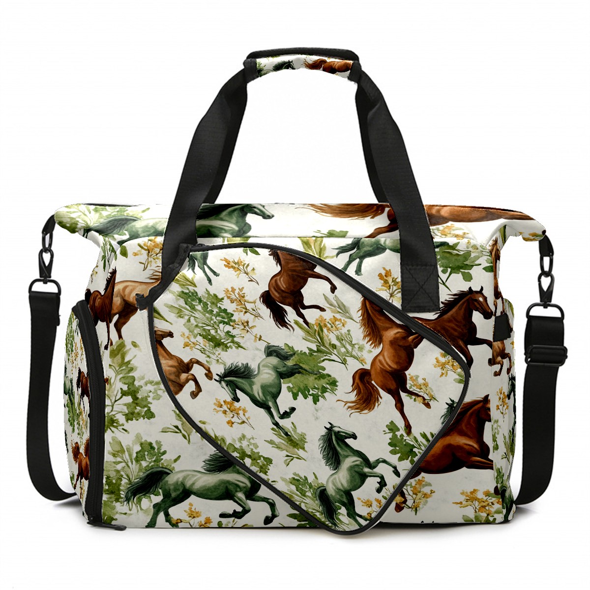 Pickleball Tote Bag Carryall for Paddles Balls and Accessories, Portable Lightweight Gear Bag for Players(Galloping Horses)