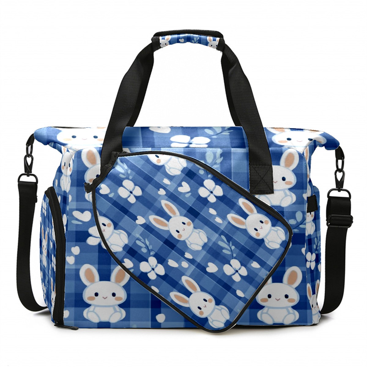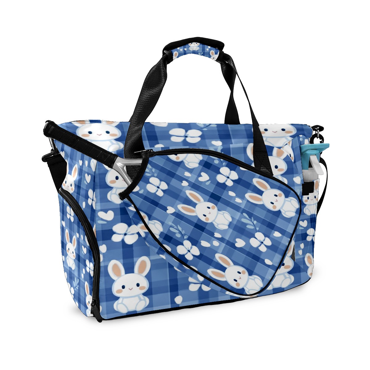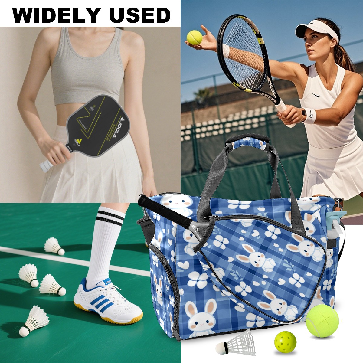 Pickleball Tote Bag Carryall for Paddles Balls and Accessories, Portable Lightweight Gear Bag for Players(Cute Rabbit And Heart)