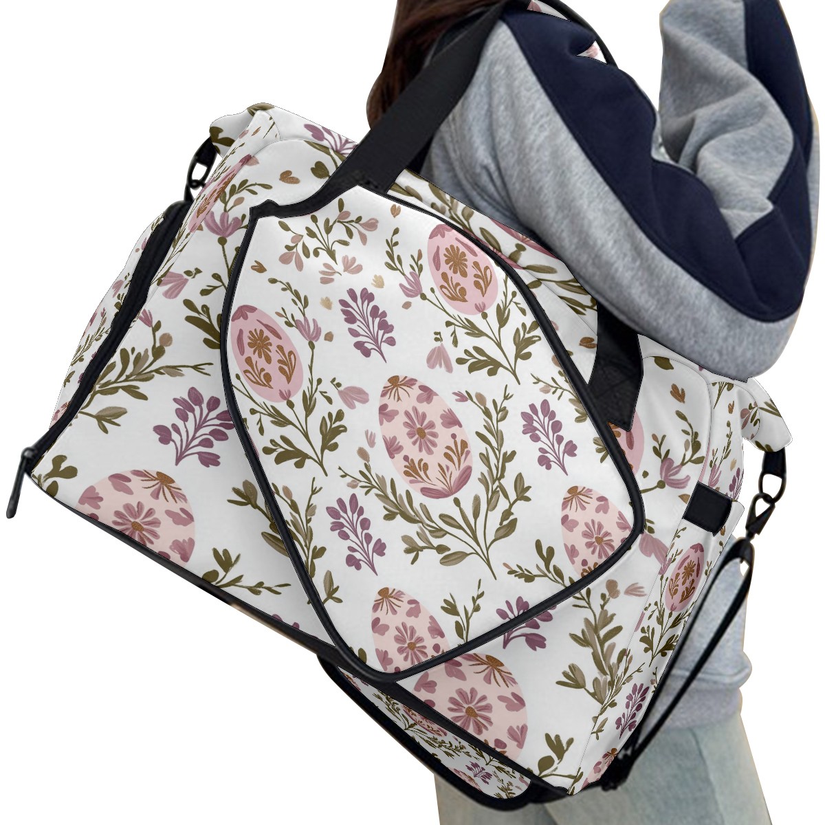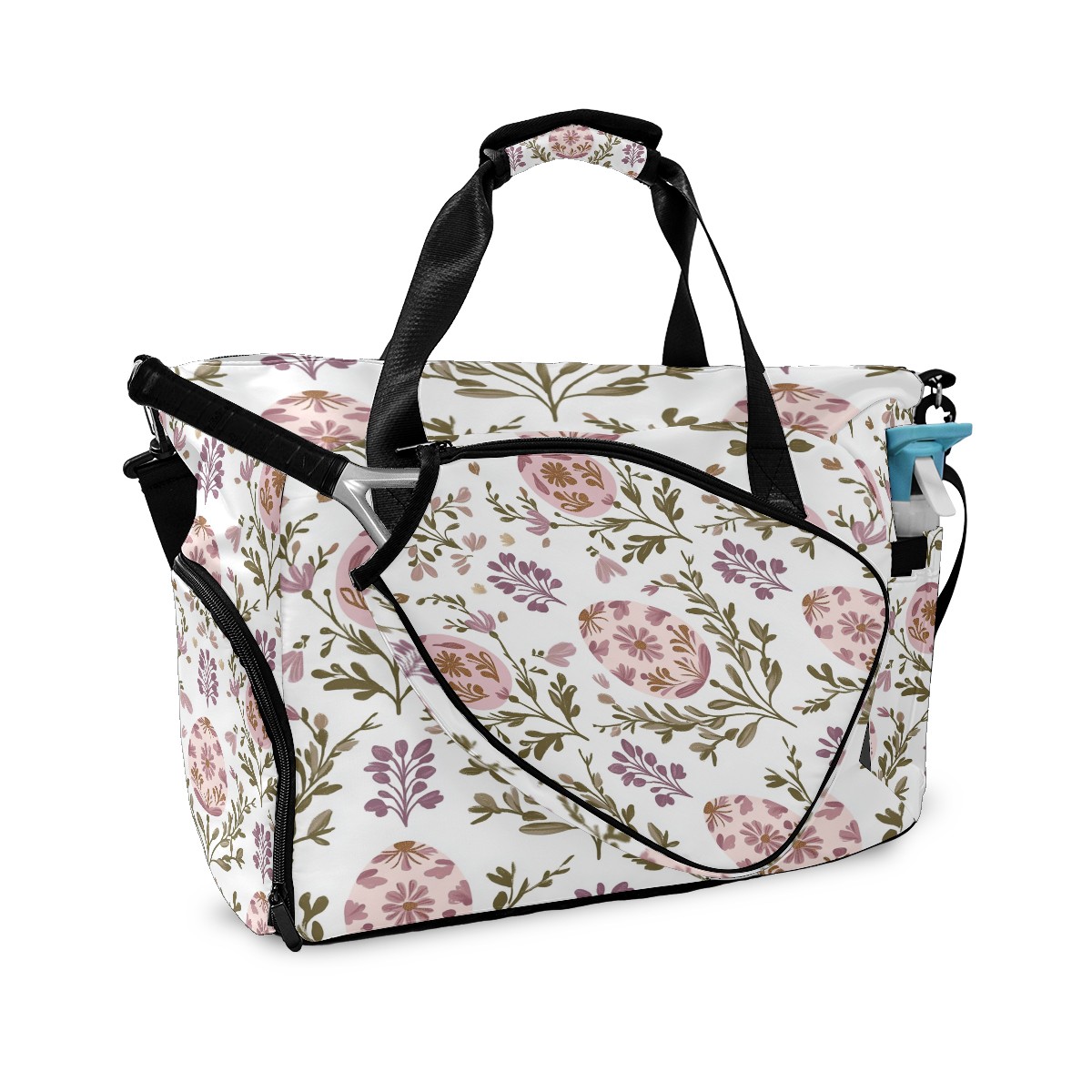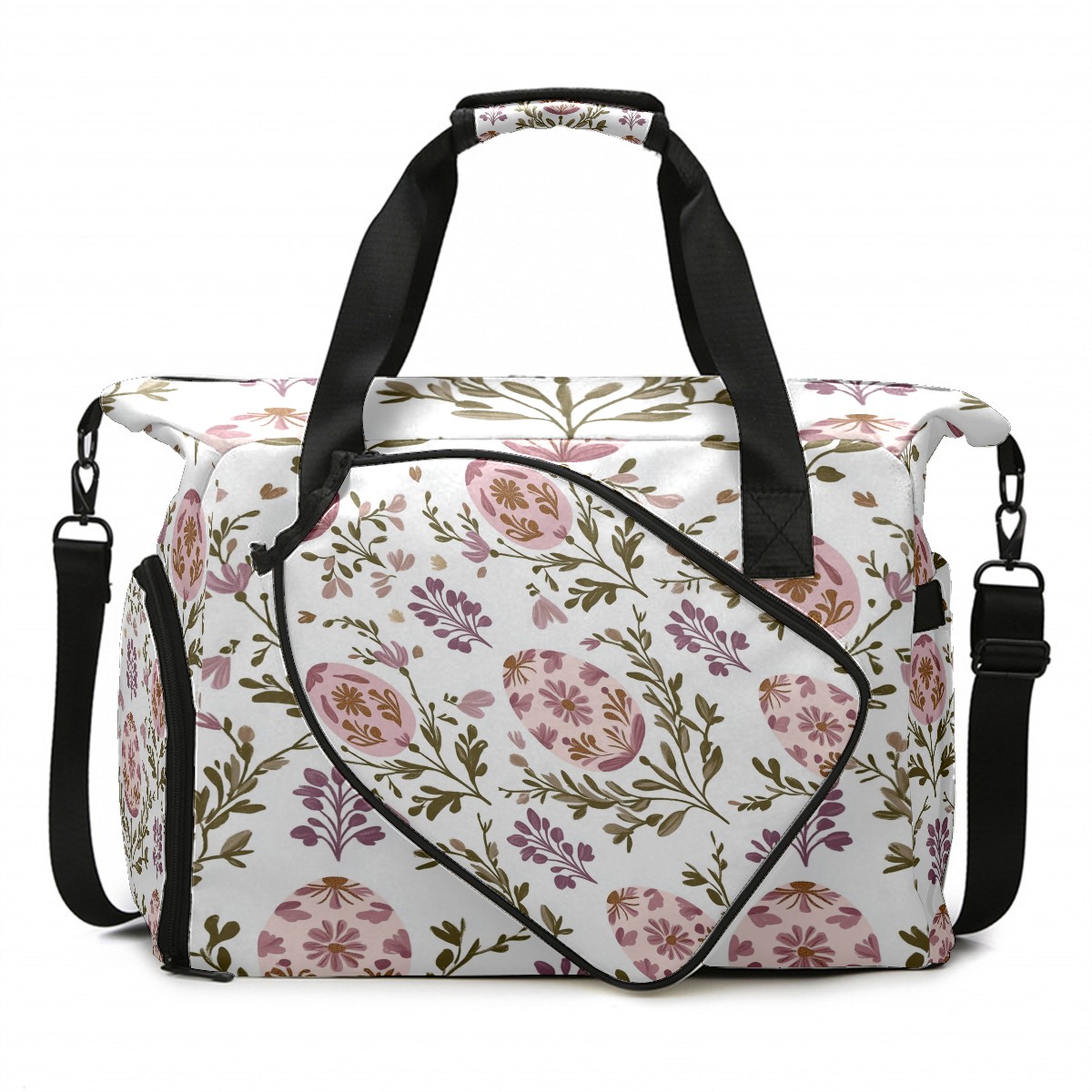 Pickleball Tote Bag Carryall for Paddles Balls and Accessories, Portable Lightweight Gear Bag for Players(Egg-shaped Floral)