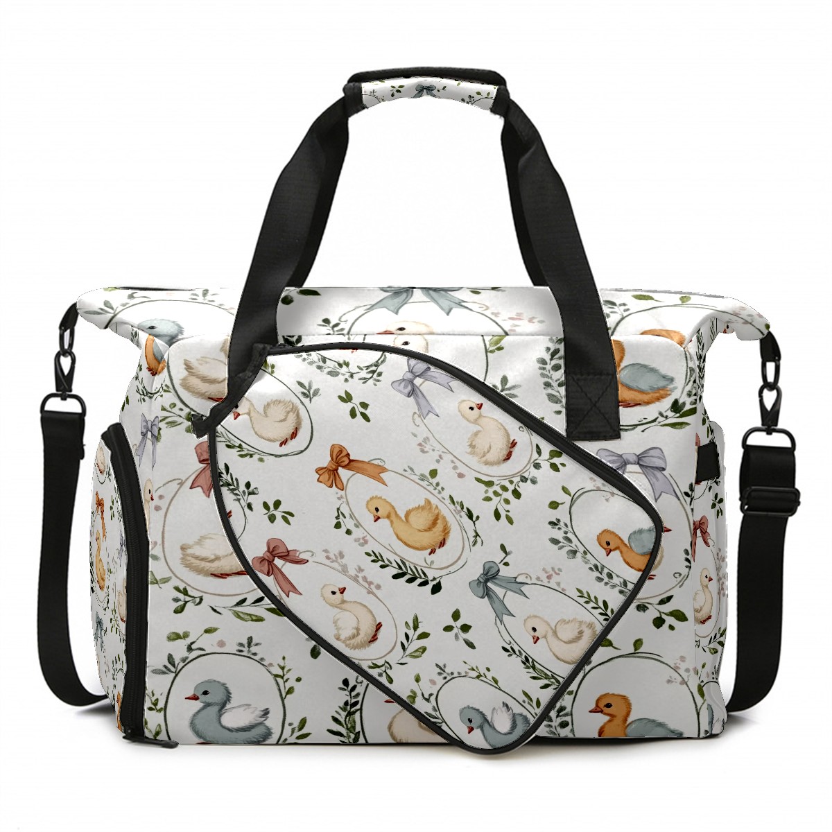 Pickleball Tote Bag Carryall for Paddles Balls and Accessories, Portable Lightweight Gear Bag for Players(Cute Geese)