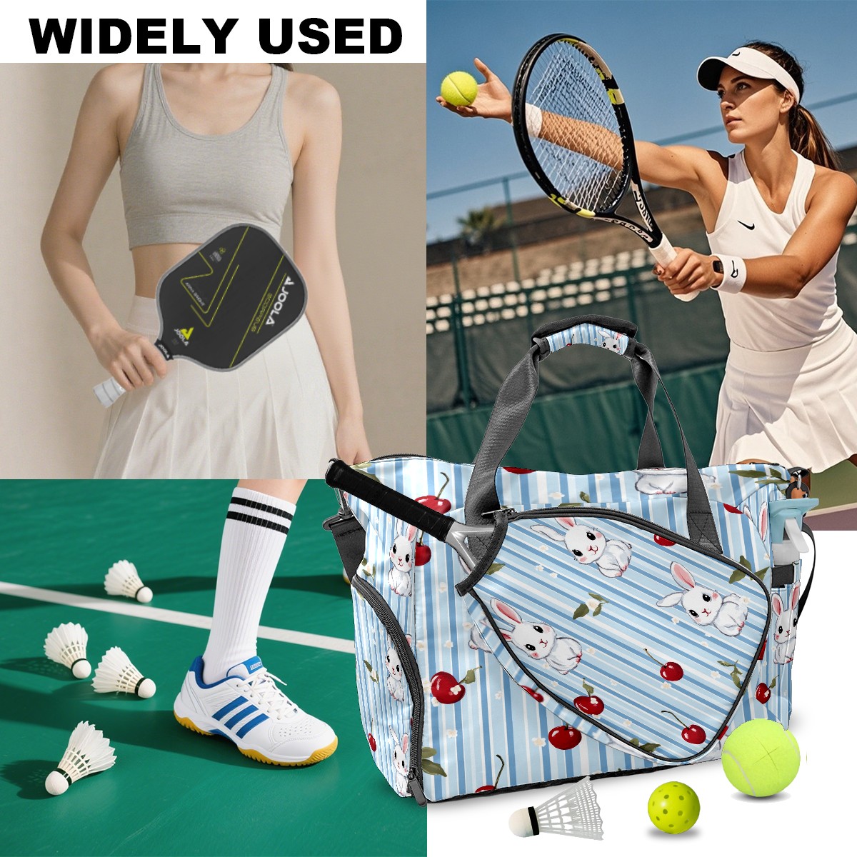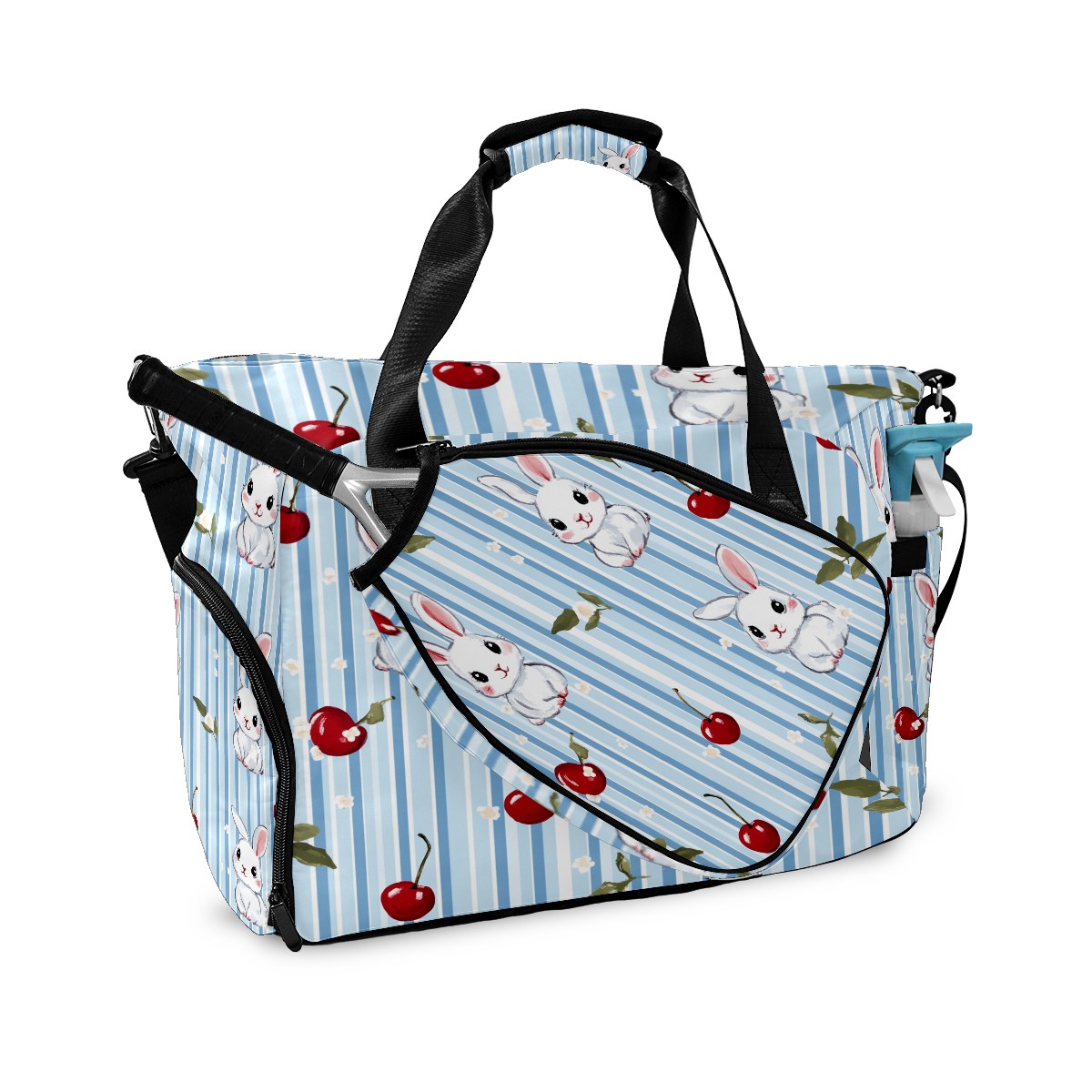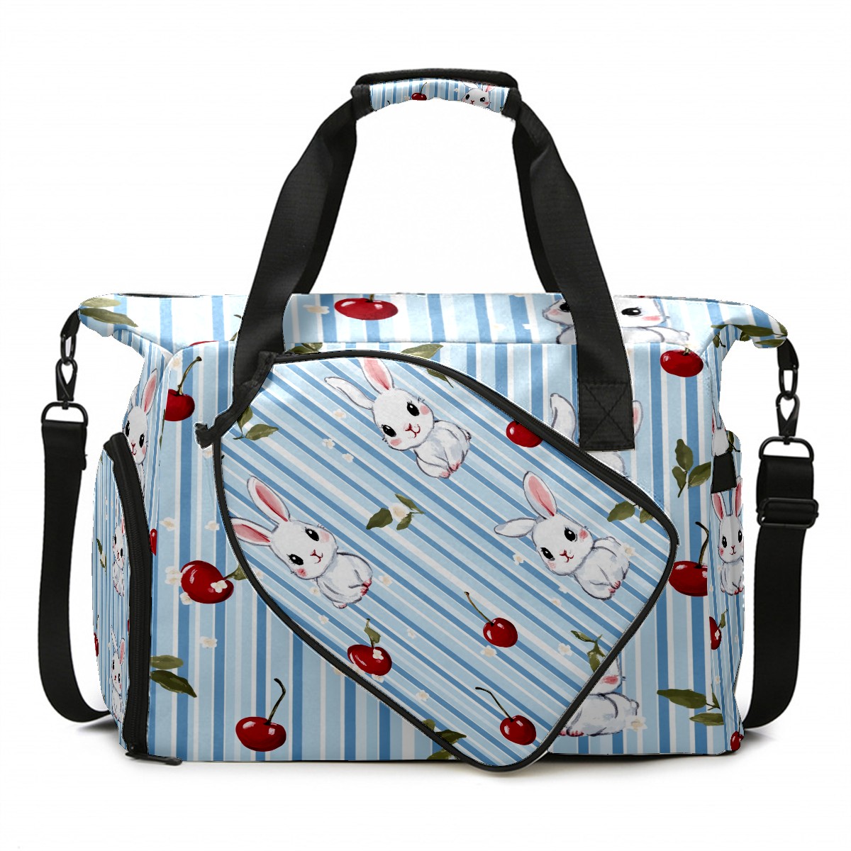 Pickleball Tote Bag Carryall for Paddles Balls and Accessories, Portable Lightweight Gear Bag for Players(Bunnies And Cherries)