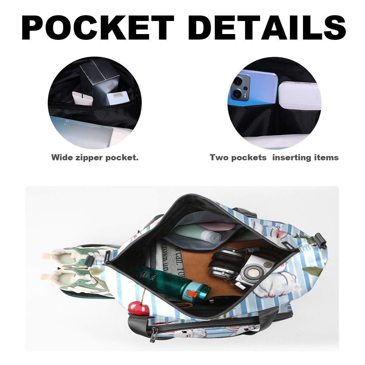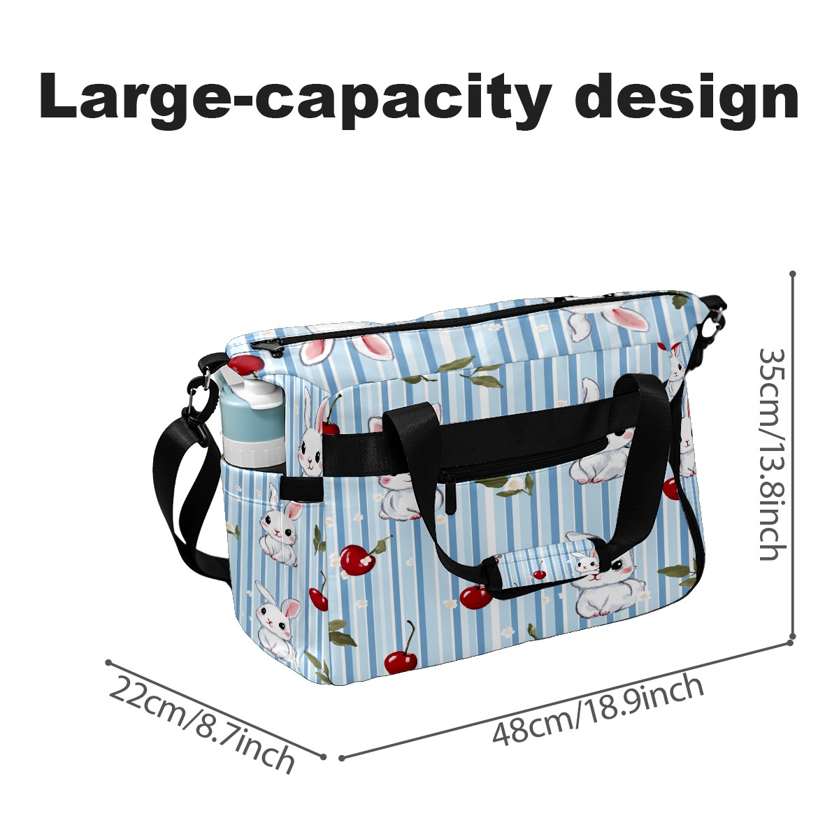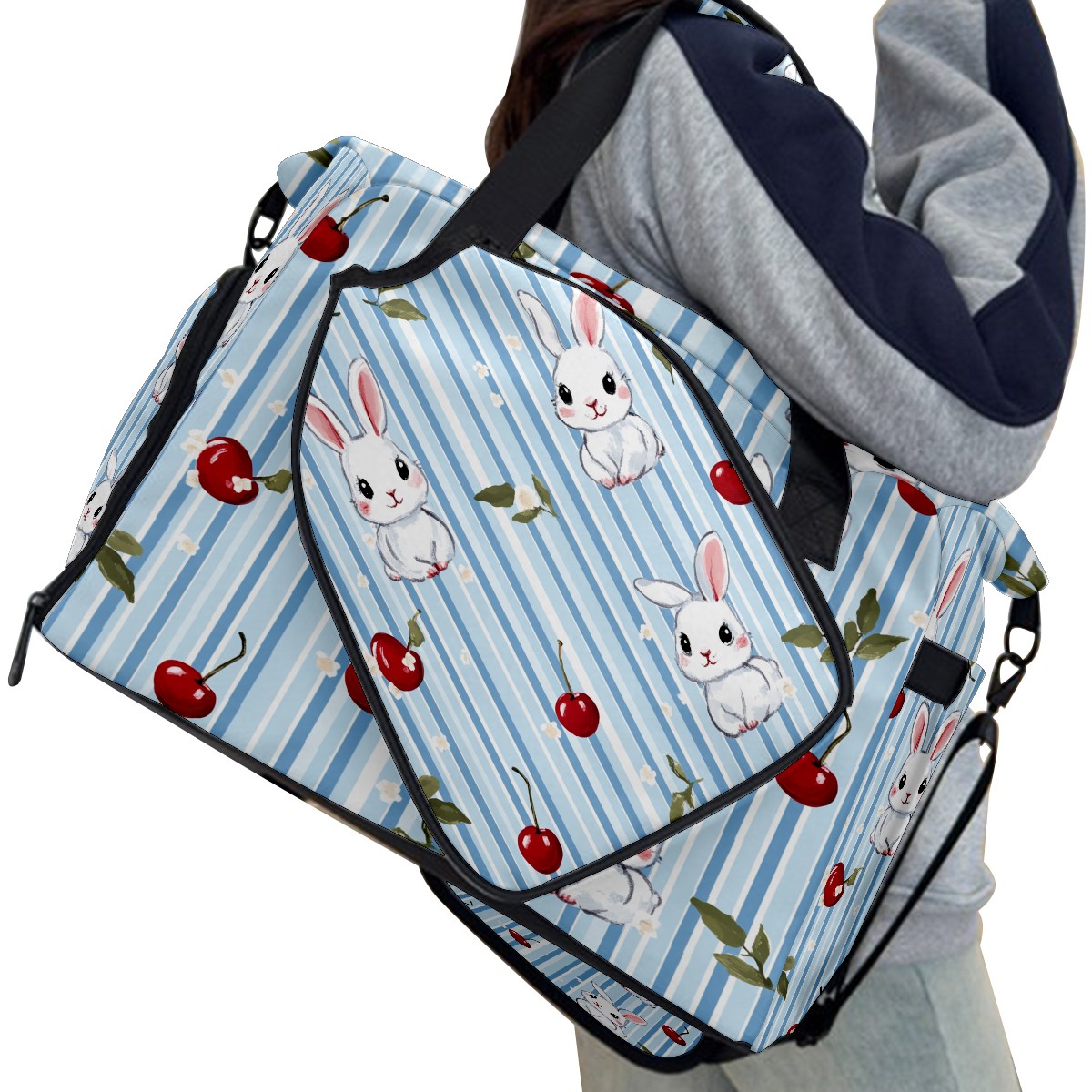 Pickleball Tote Bag Carryall for Paddles Balls and Accessories, Portable Lightweight Gear Bag for Players(Bunnies And Cherries)
