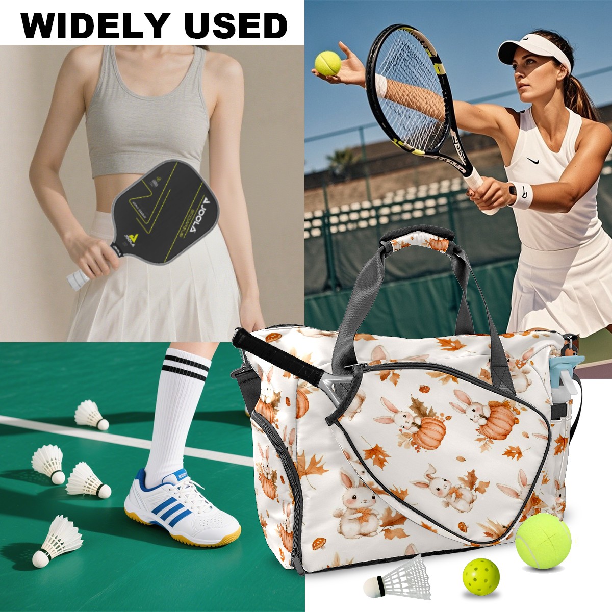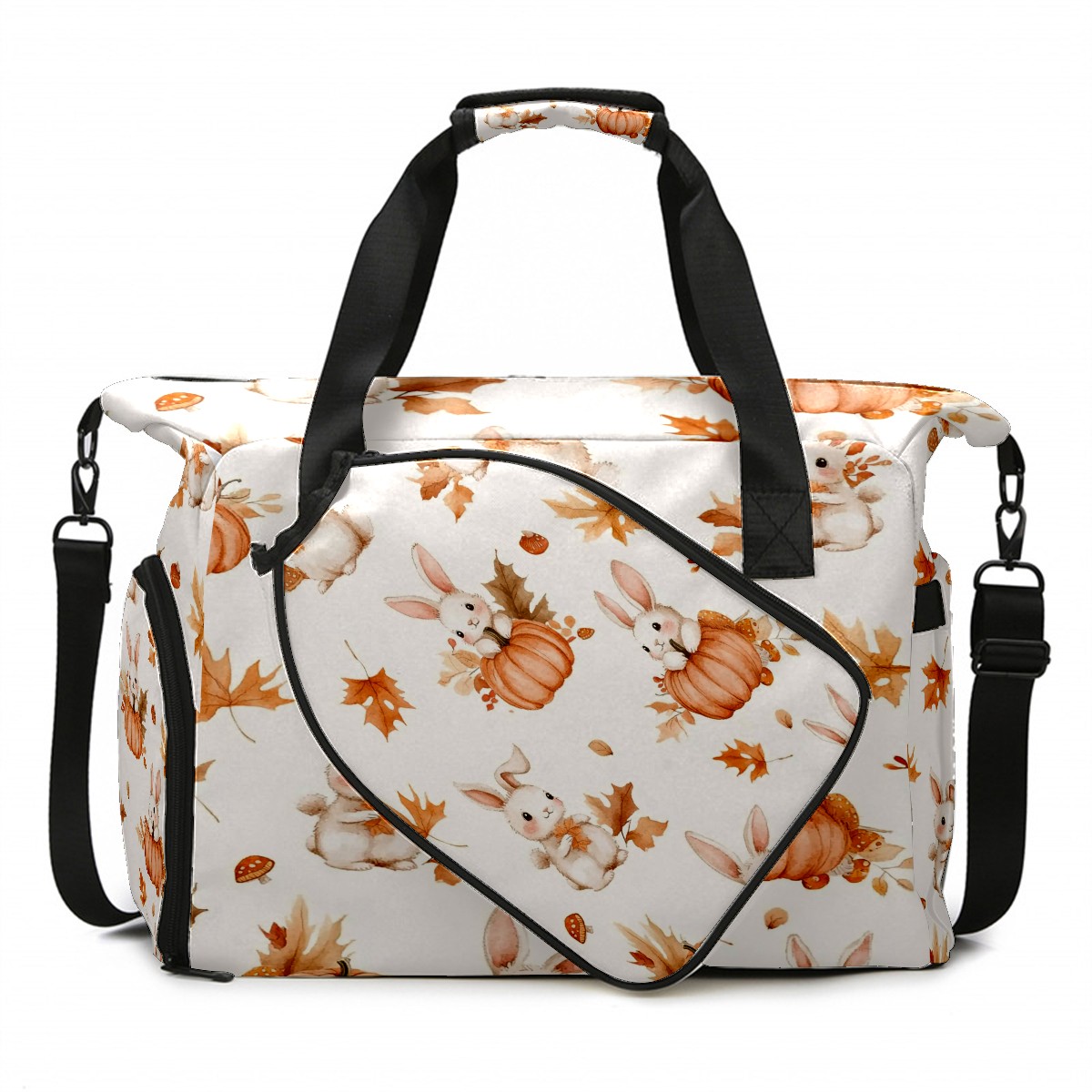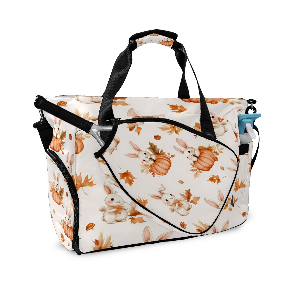 Pickleball Tote Bag Carryall for Paddles Balls and Accessories, Portable Lightweight Gear Bag for Players(Bunnies And Pumpkin)
