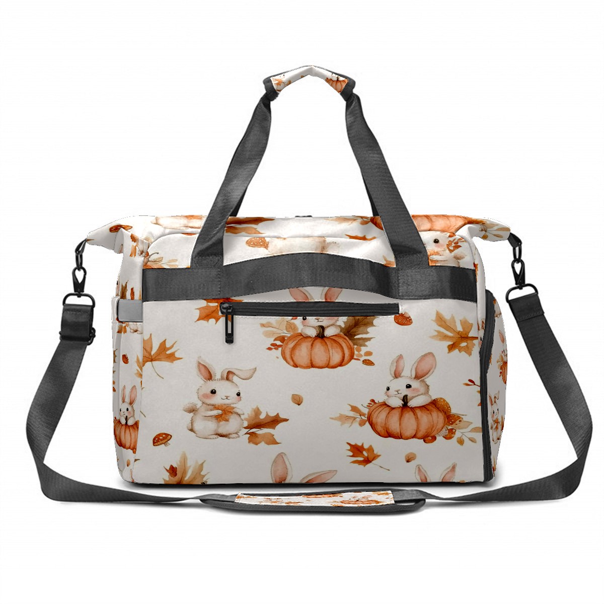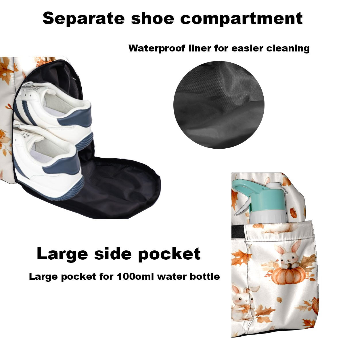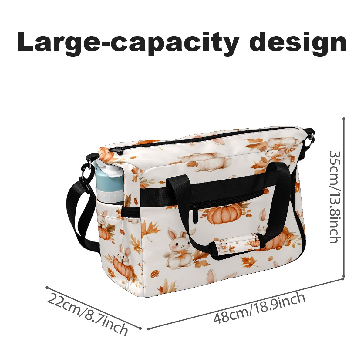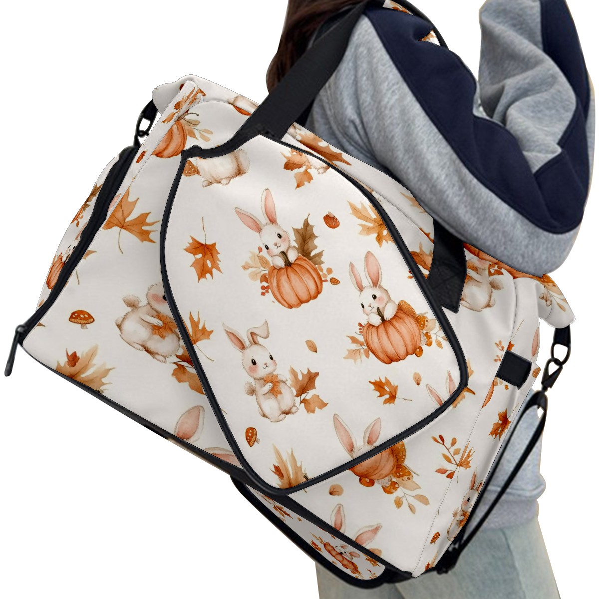 Pickleball Tote Bag Carryall for Paddles Balls and Accessories, Portable Lightweight Gear Bag for Players(Bunnies And Pumpkin)