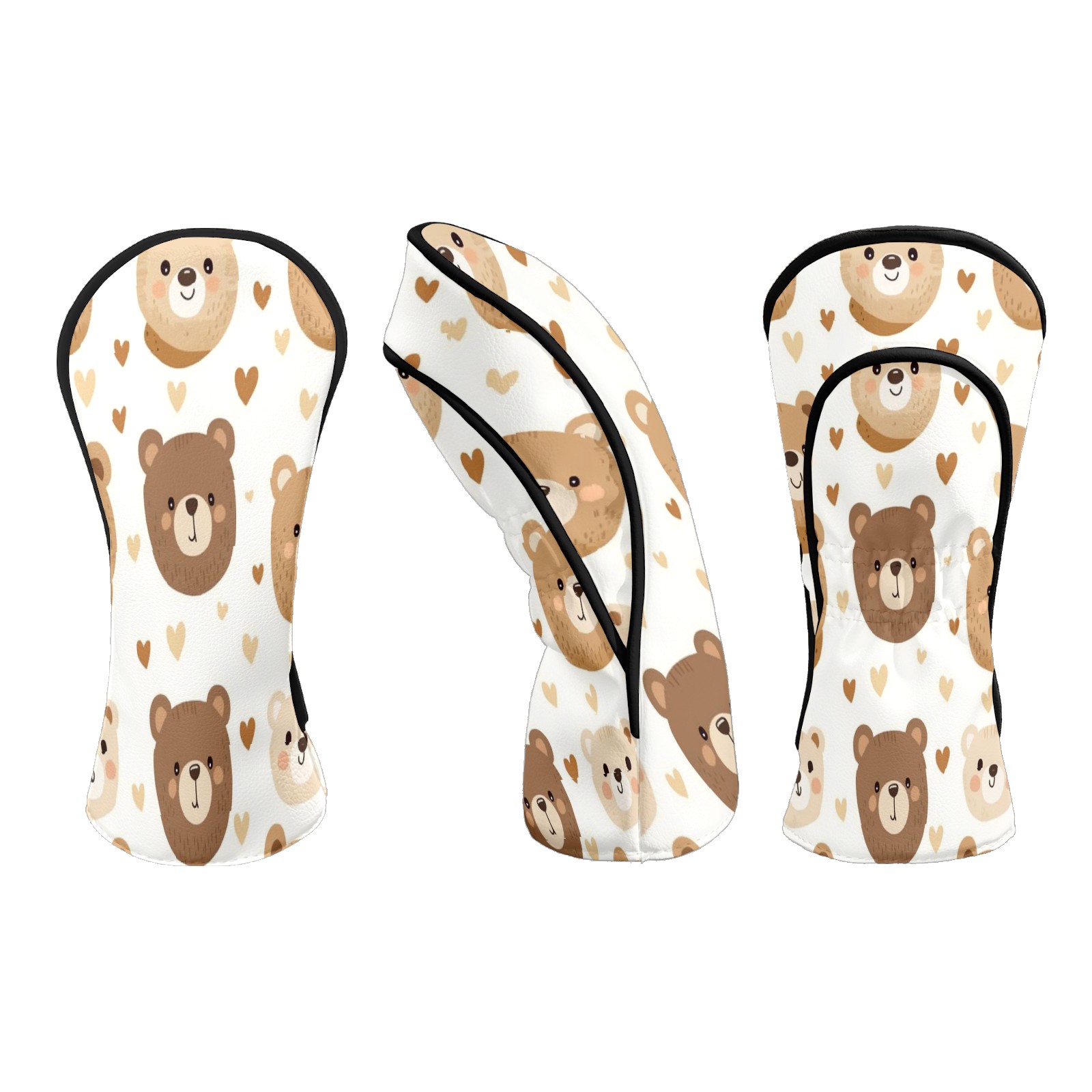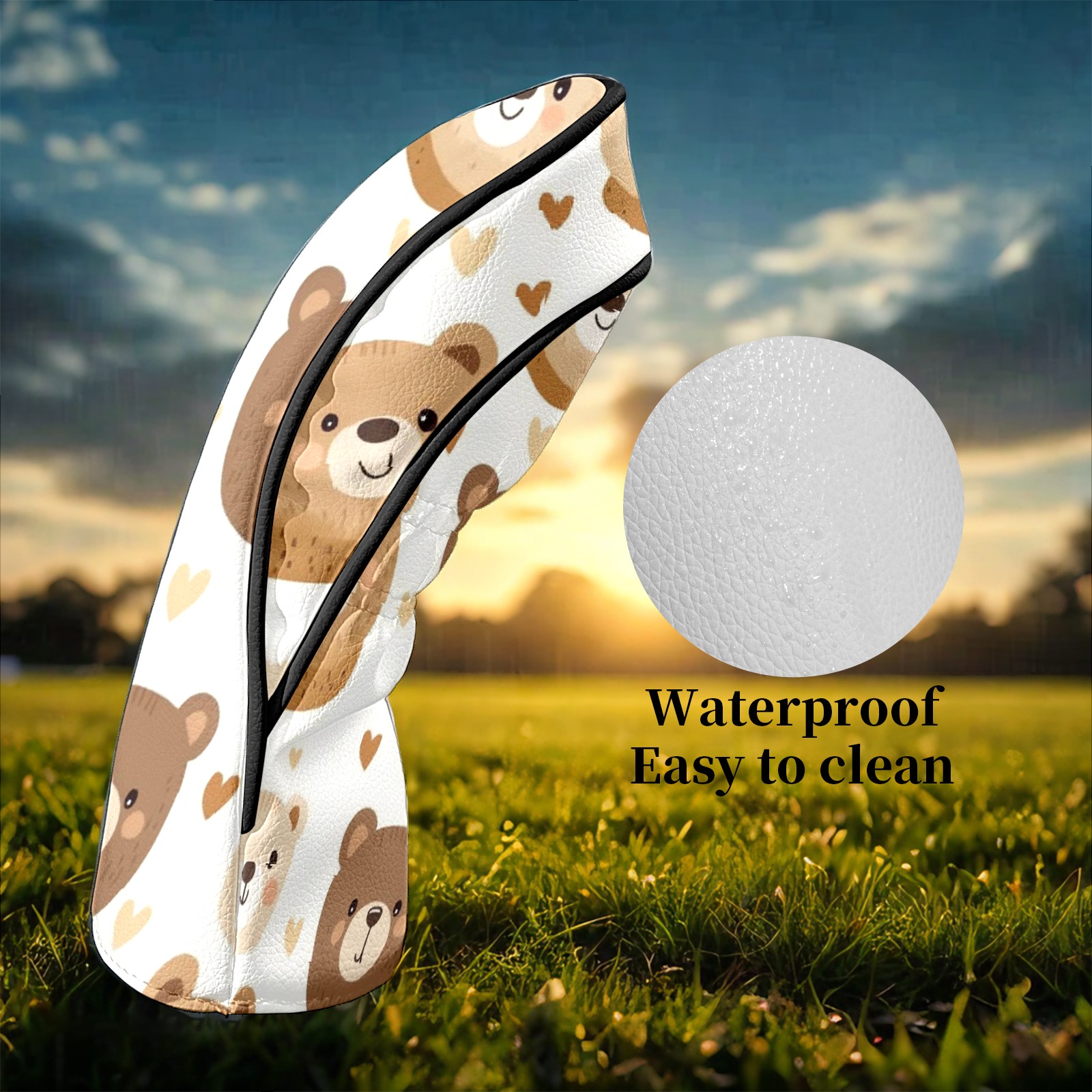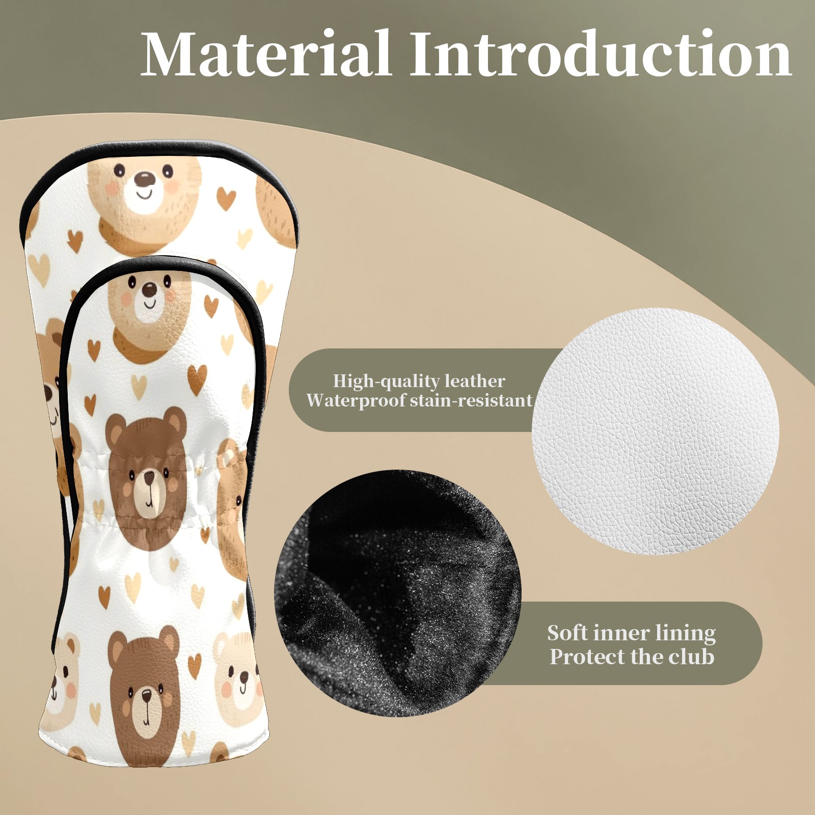 Golf Club Head Covers for Driver and Fairway Woods, Waterproof Leather Headcovers for Golf Clubs, Ideal Golf Accessories Gift for Men Women (Teddy Bear)