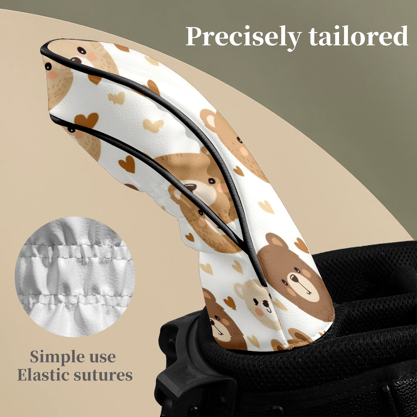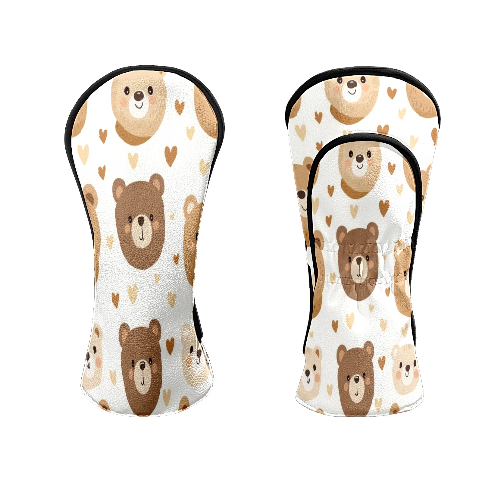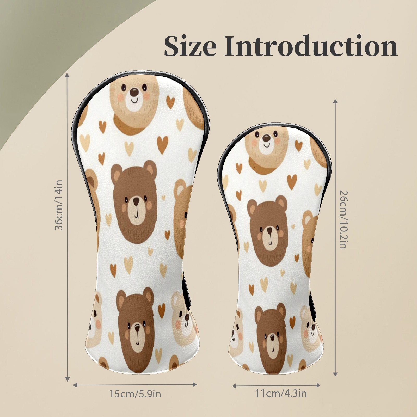 Golf Club Head Covers for Driver and Fairway Woods, Waterproof Leather Headcovers for Golf Clubs, Ideal Golf Accessories Gift for Men Women (Teddy Bear)