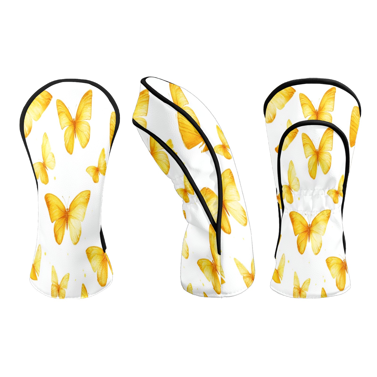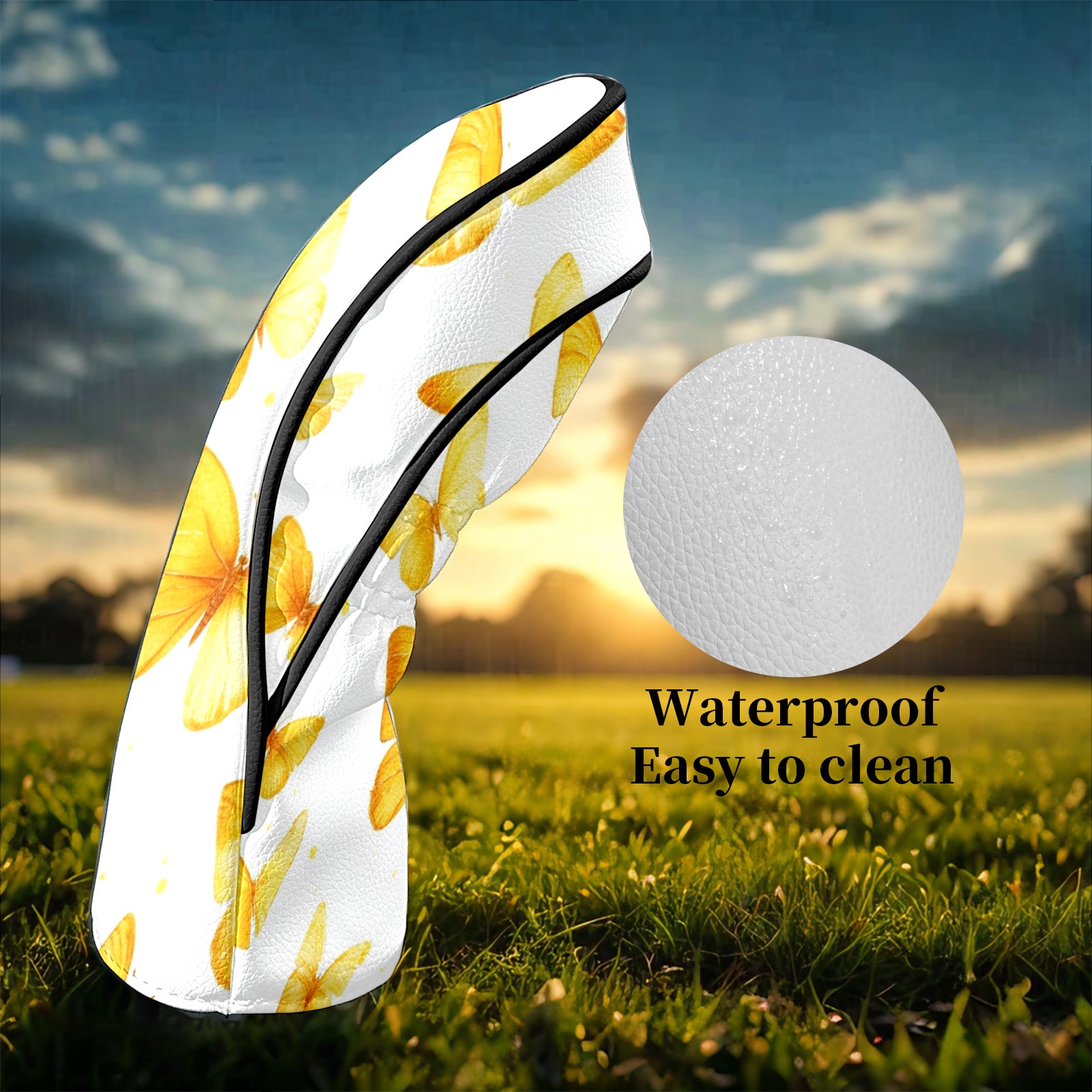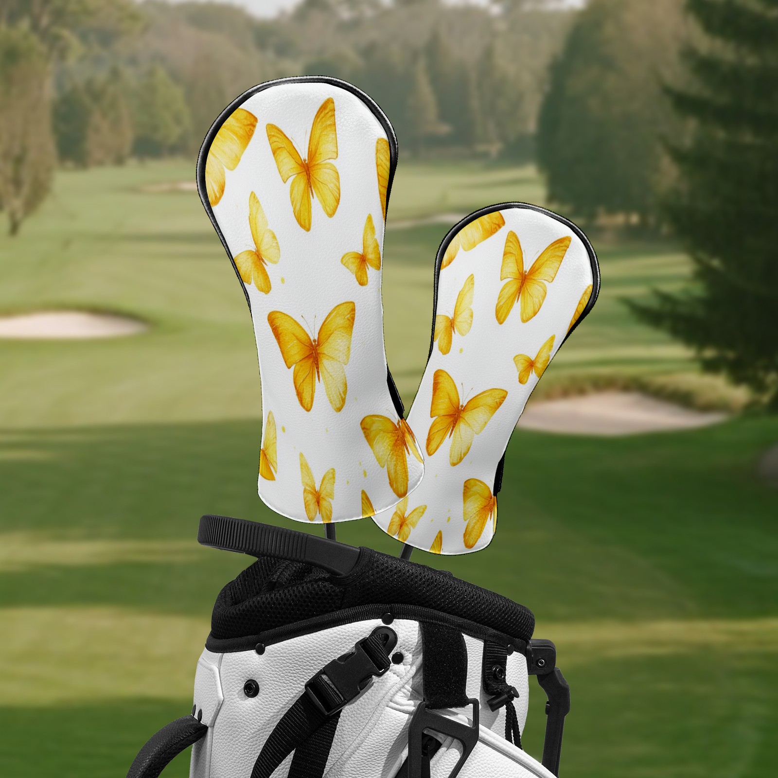 Golf Club Head Covers for Driver and Fairway Woods, Waterproof Leather Headcovers for Golf Clubs, Ideal Golf Accessories Gift for Men Women (Yellow Butterflies)