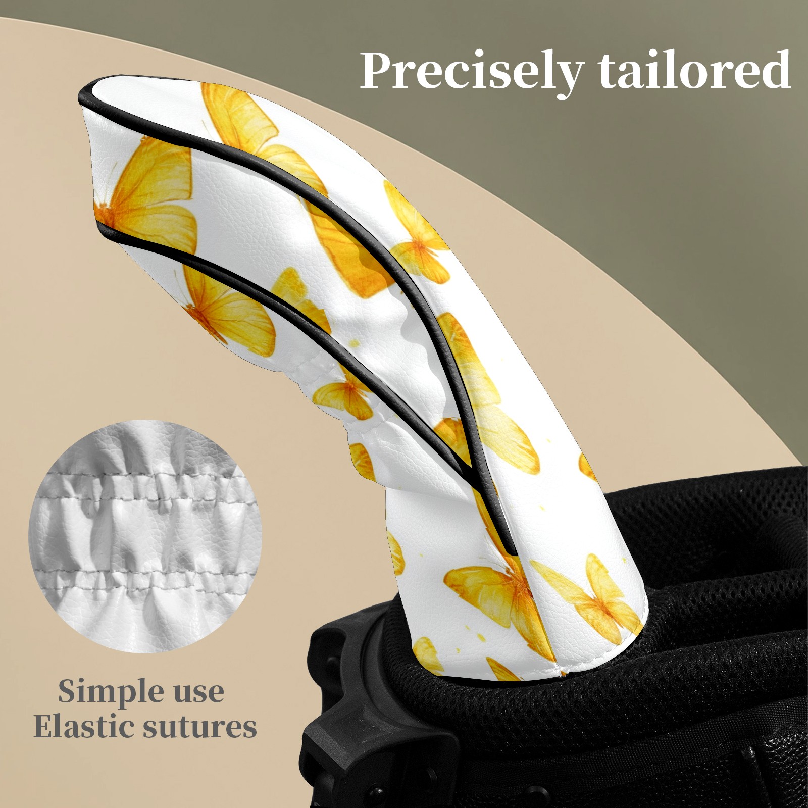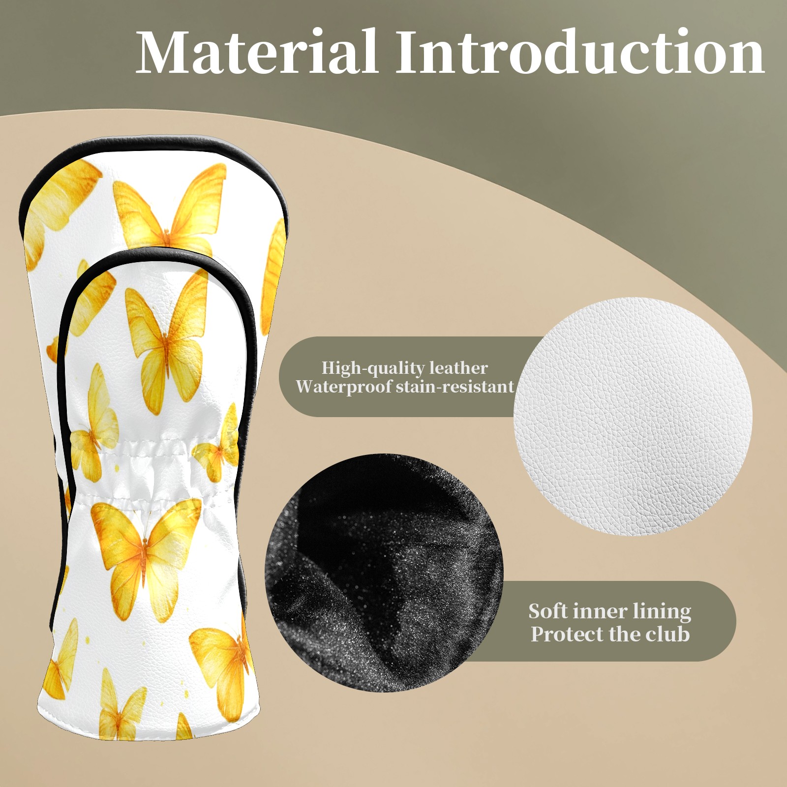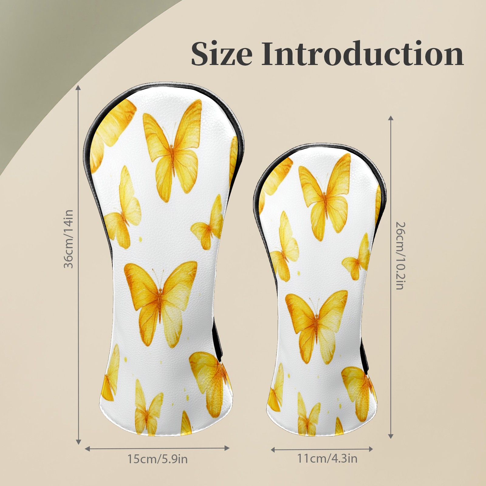 Golf Club Head Covers for Driver and Fairway Woods, Waterproof Leather Headcovers for Golf Clubs, Ideal Golf Accessories Gift for Men Women (Yellow Butterflies)