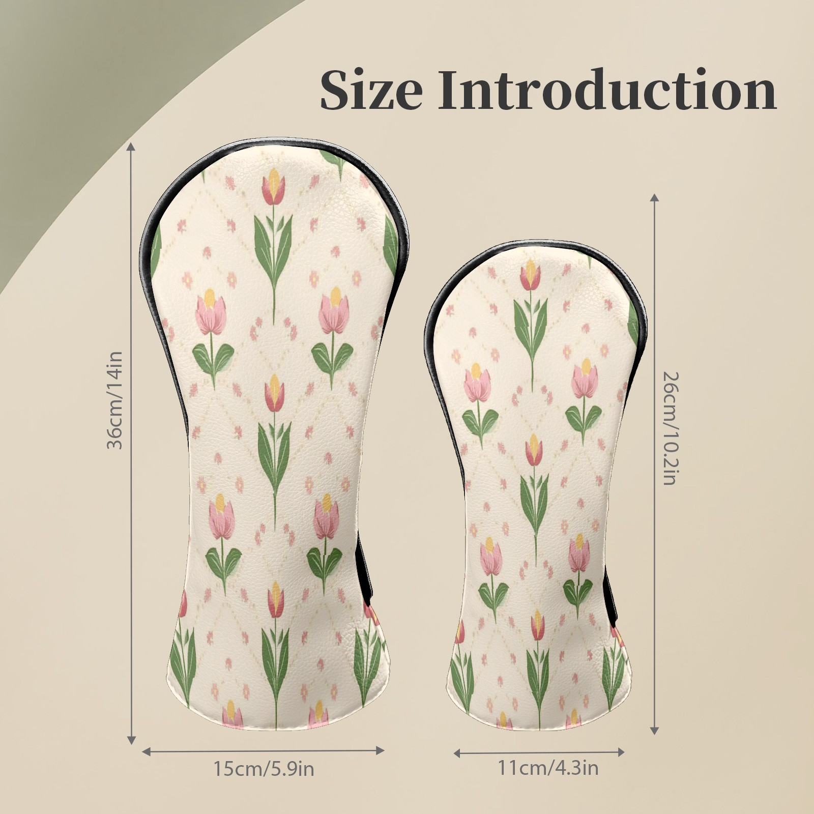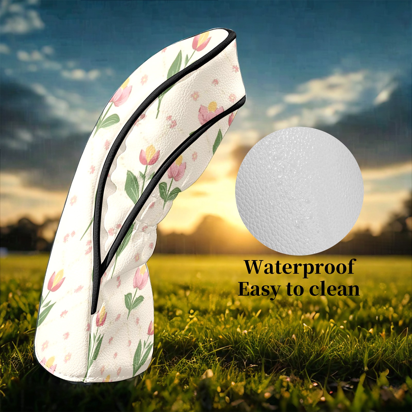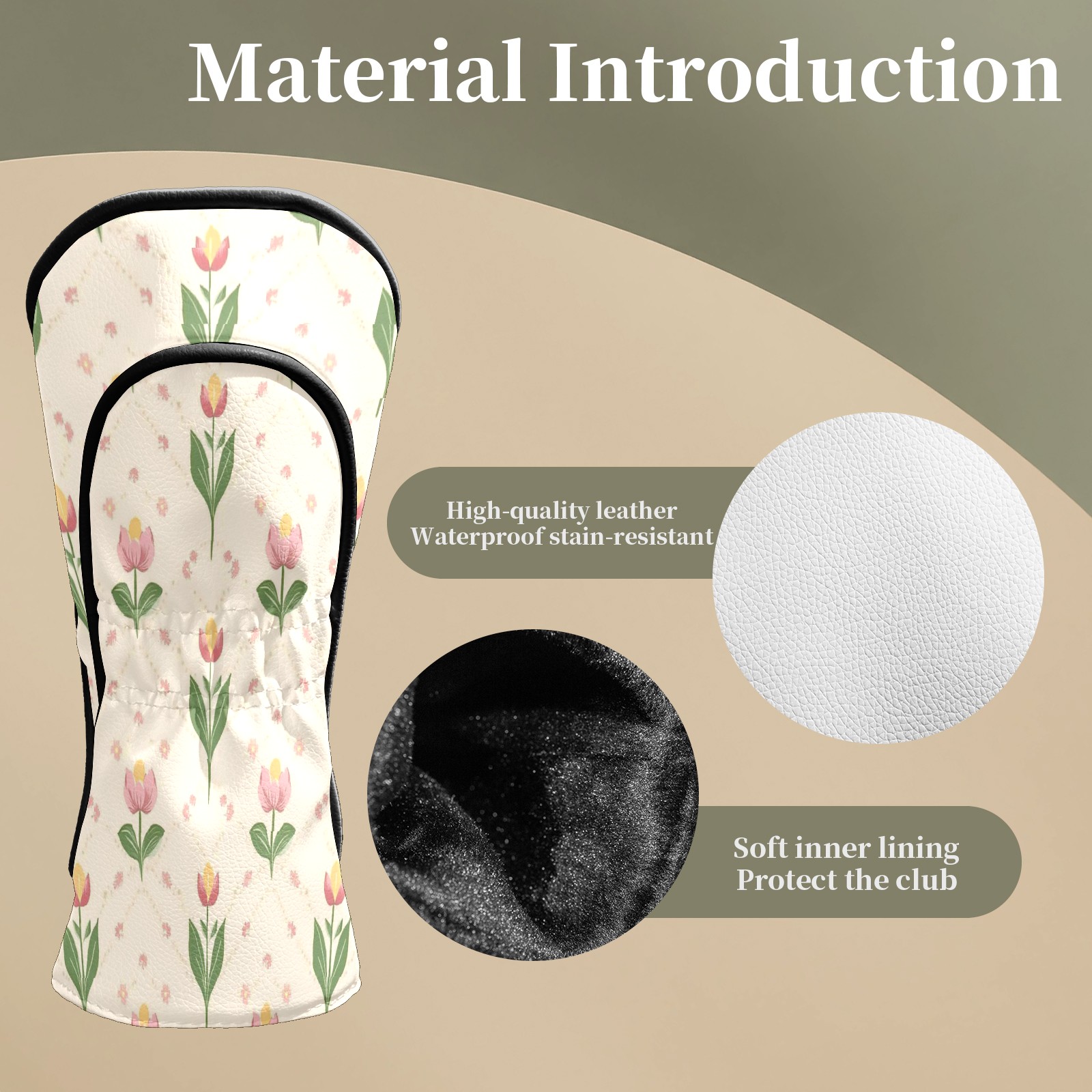 Golf Club Head Covers for Driver and Fairway Woods, Waterproof Leather Headcovers for Golf Clubs, Ideal Golf Accessories Gift for Men Women (Small Tulips)