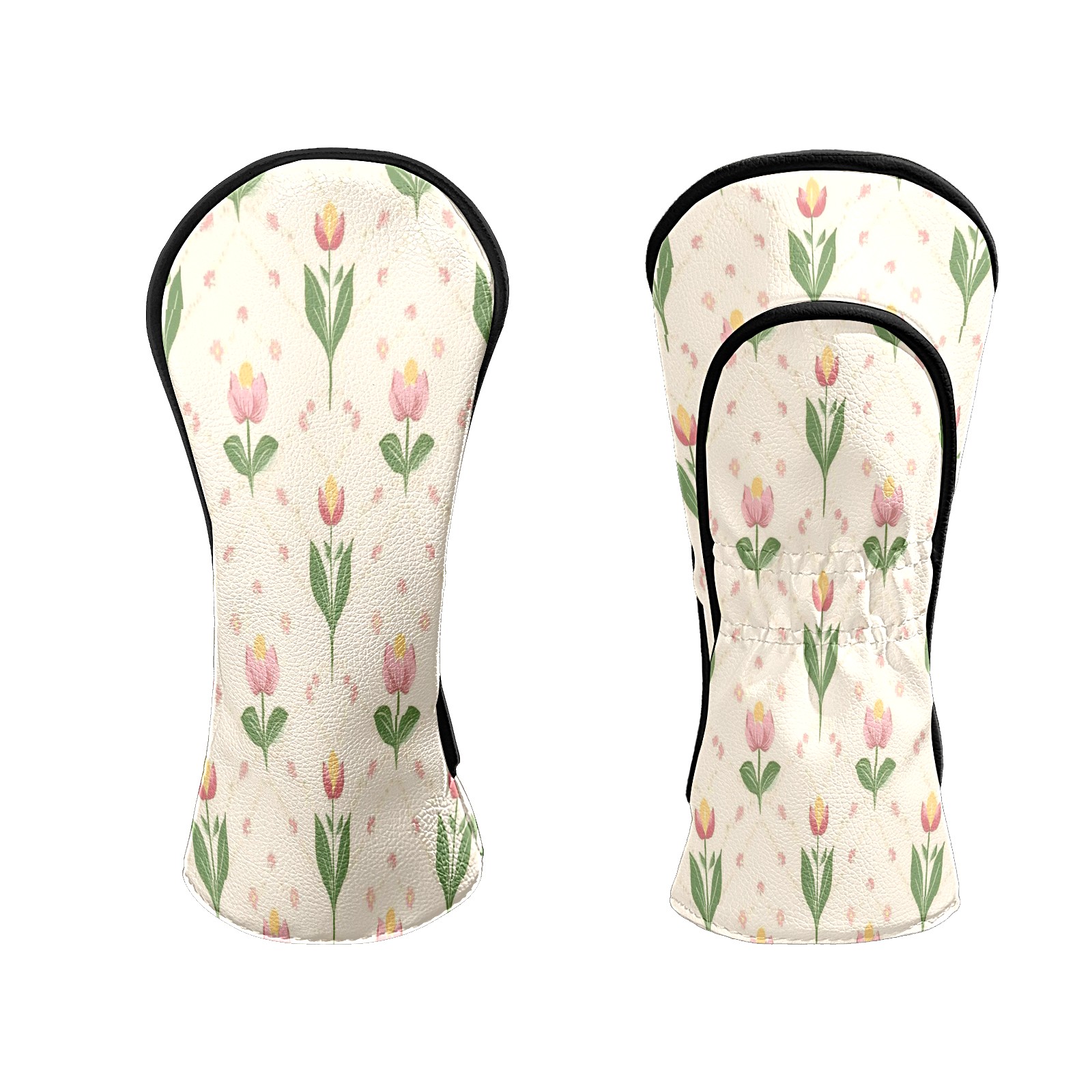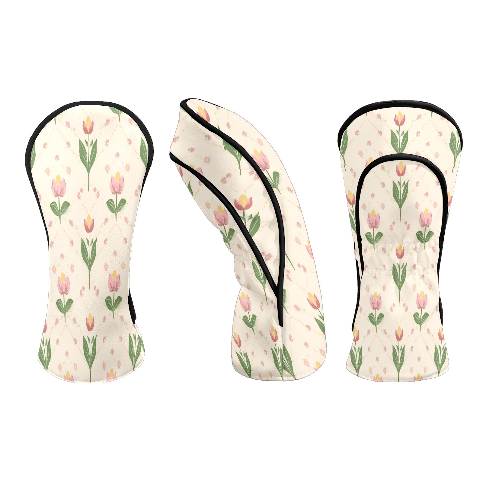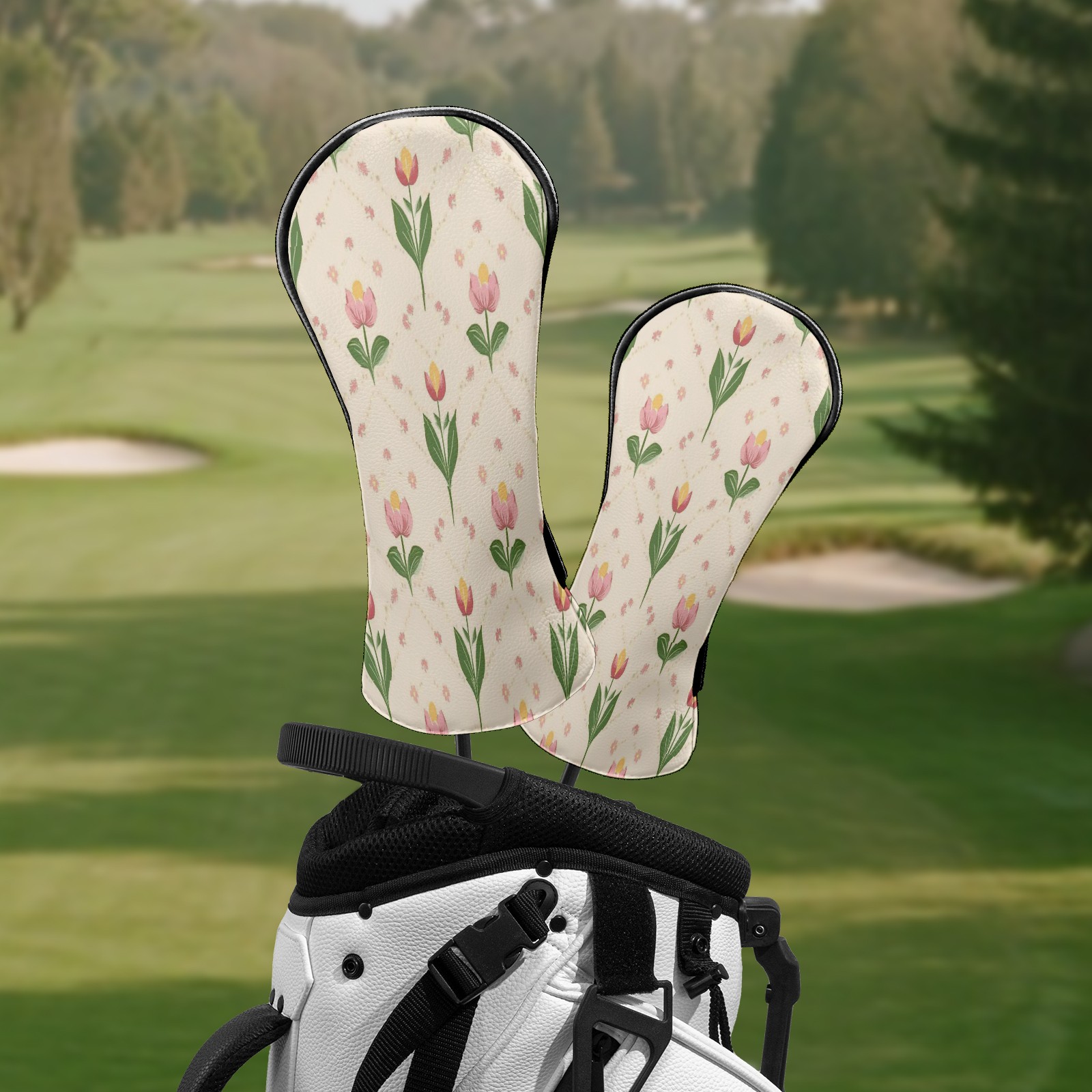 Golf Club Head Covers for Driver and Fairway Woods, Waterproof Leather Headcovers for Golf Clubs, Ideal Golf Accessories Gift for Men Women (Small Tulips)