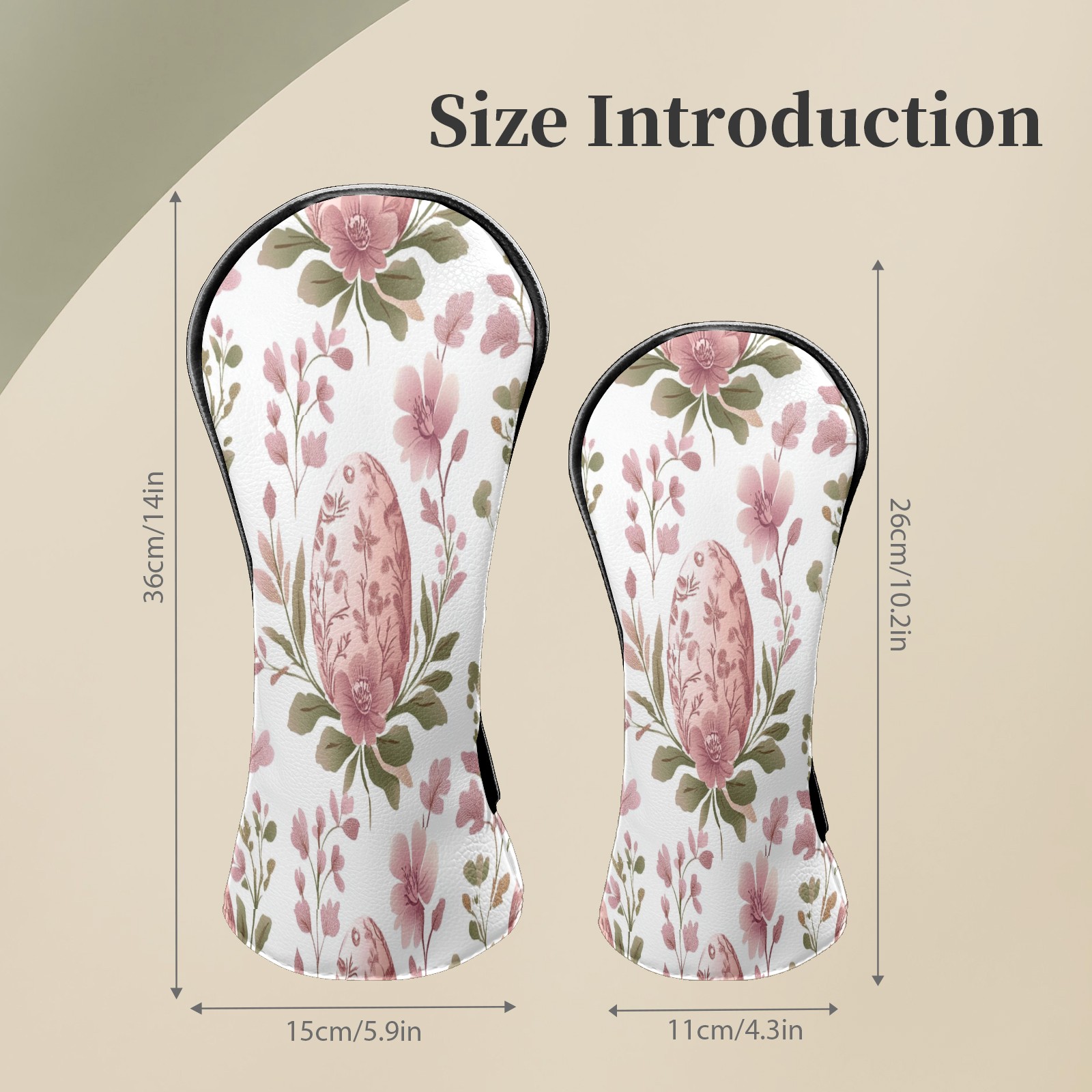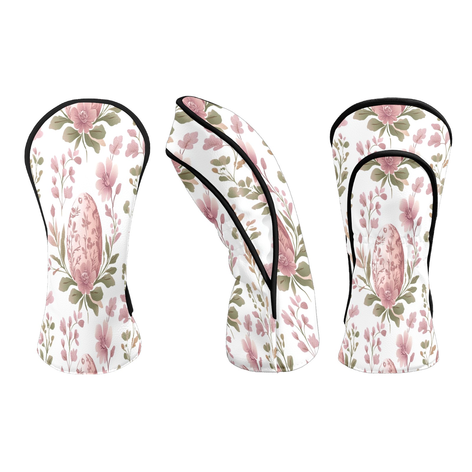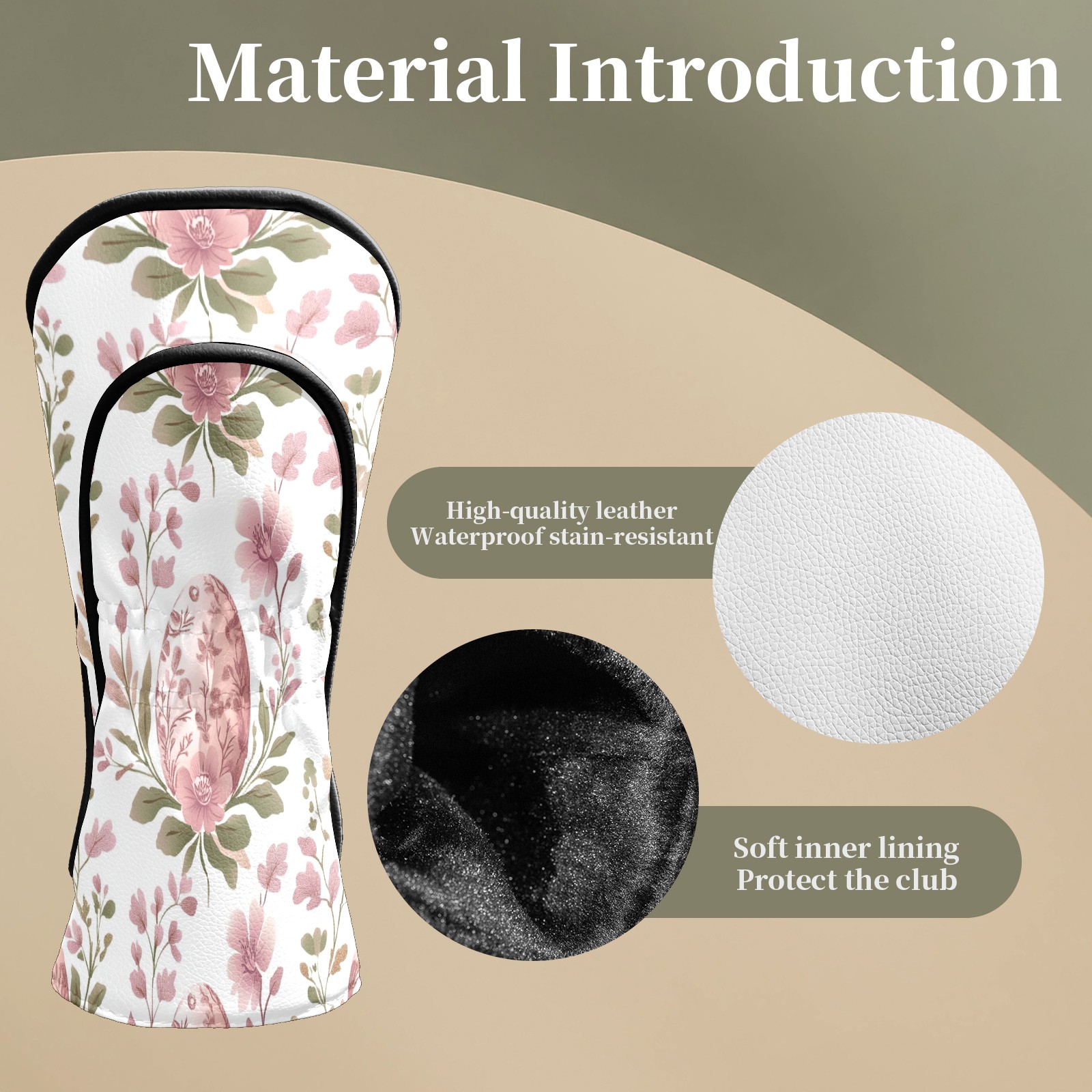 Golf Club Head Covers for Driver and Fairway Woods, Waterproof Leather Headcovers for Golf Clubs, Ideal Golf Accessories Gift for Men Women (Pink Egg-shaped Floral)