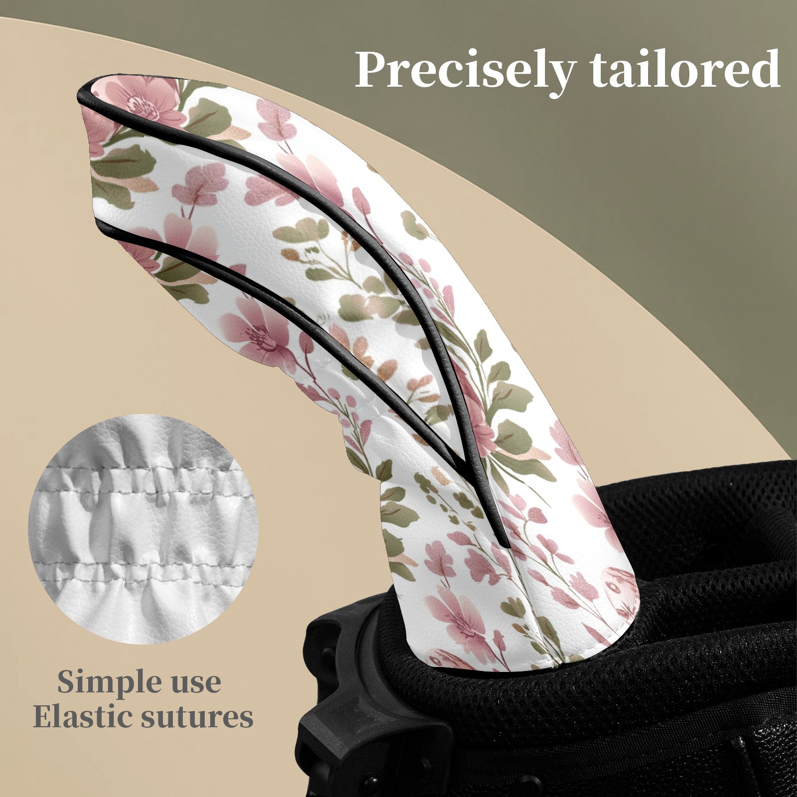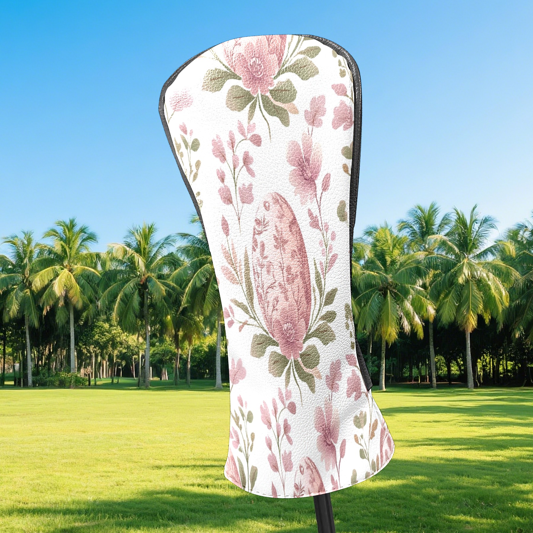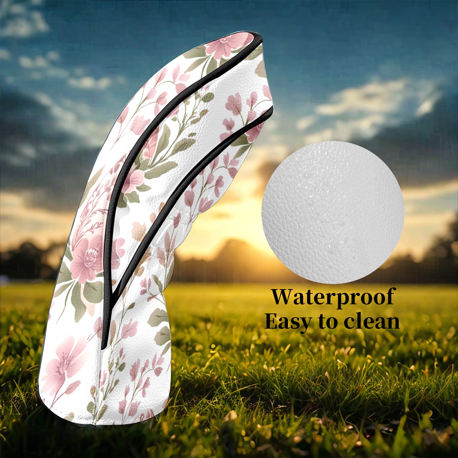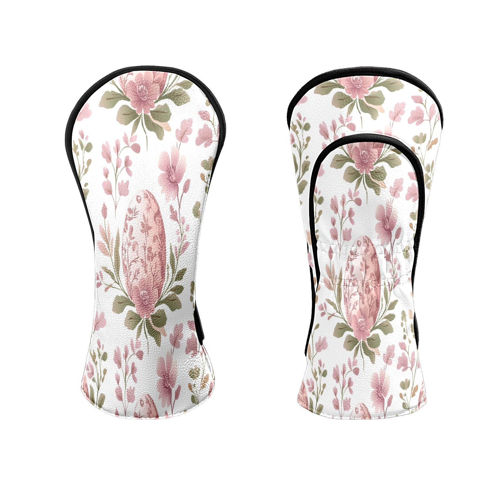 Golf Club Head Covers for Driver and Fairway Woods, Waterproof Leather Headcovers for Golf Clubs, Ideal Golf Accessories Gift for Men Women (Pink Egg-shaped Floral)