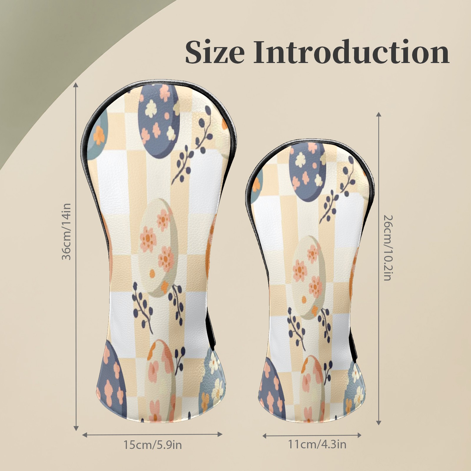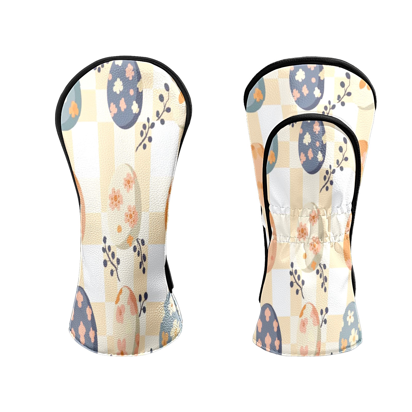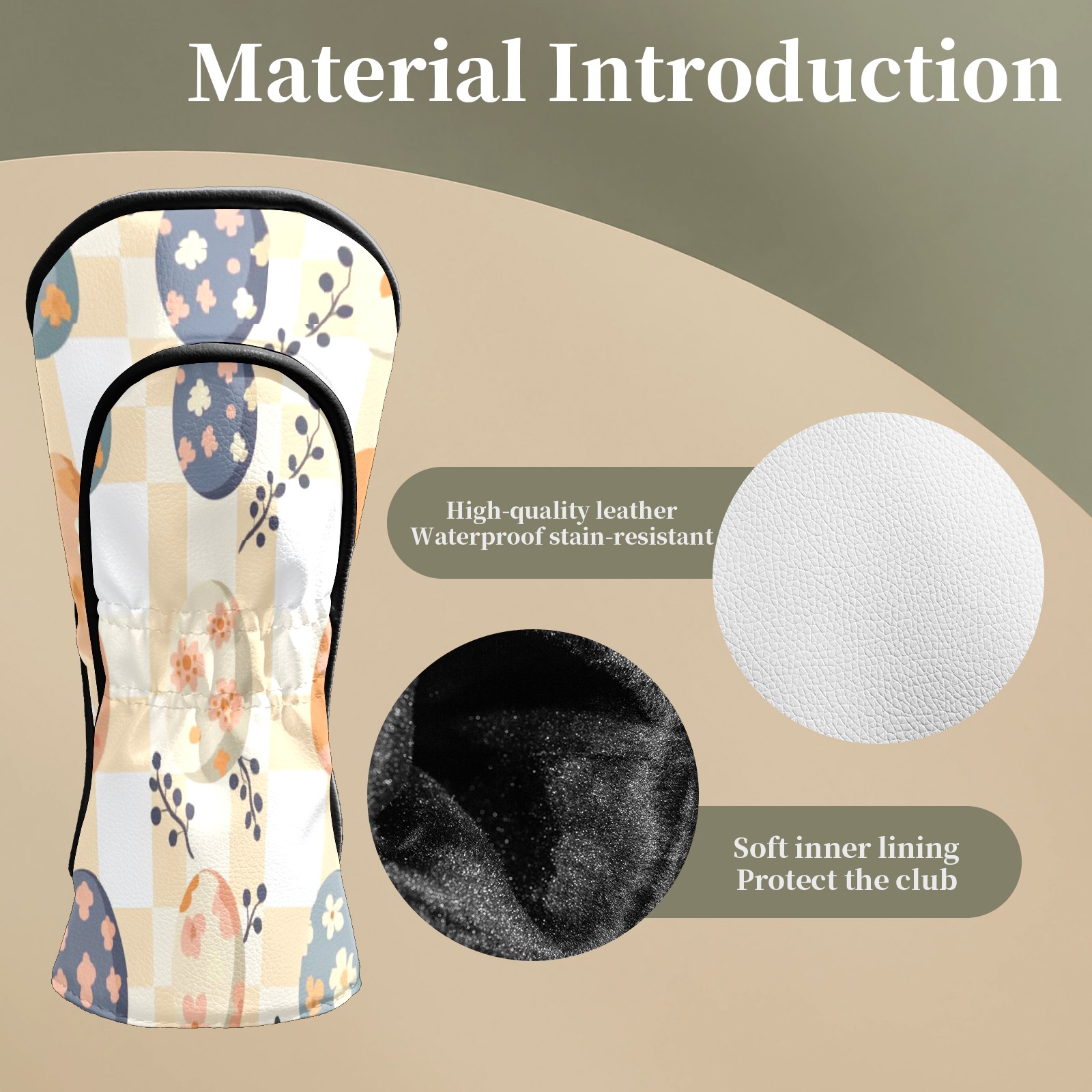 Golf Club Head Covers for Driver and Fairway Woods, Waterproof Leather Headcovers for Golf Clubs, Ideal Golf Accessories Gift for Men Women (Pastel Easter Eggs And Flowers)