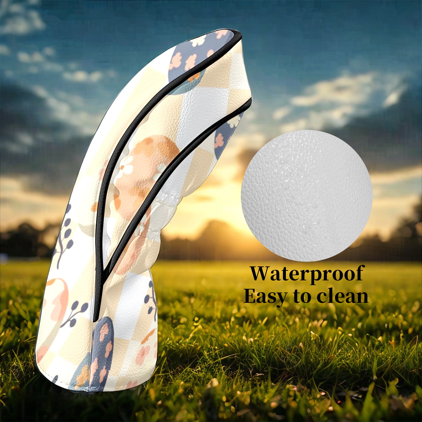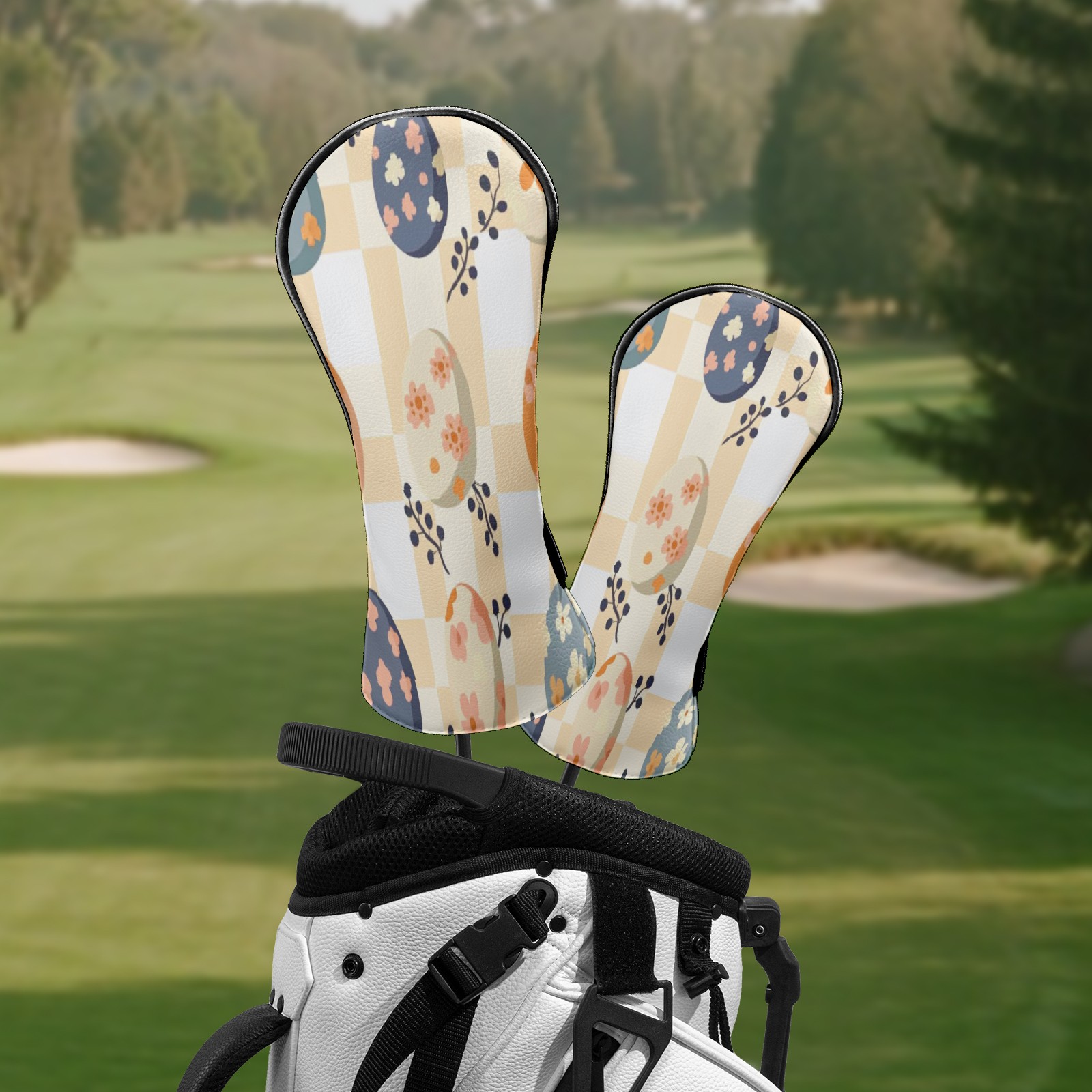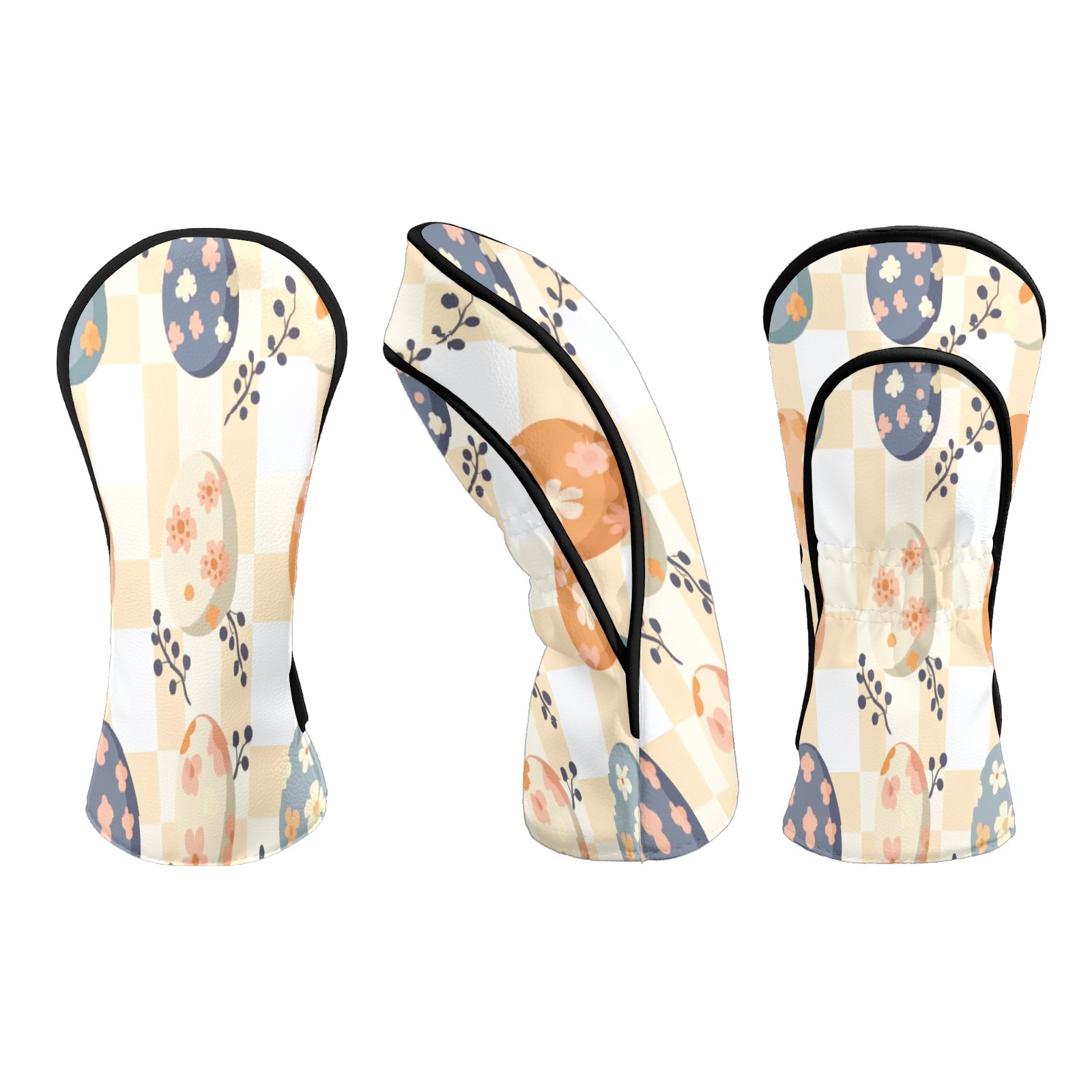 Golf Club Head Covers for Driver and Fairway Woods, Waterproof Leather Headcovers for Golf Clubs, Ideal Golf Accessories Gift for Men Women (Pastel Easter Eggs And Flowers)