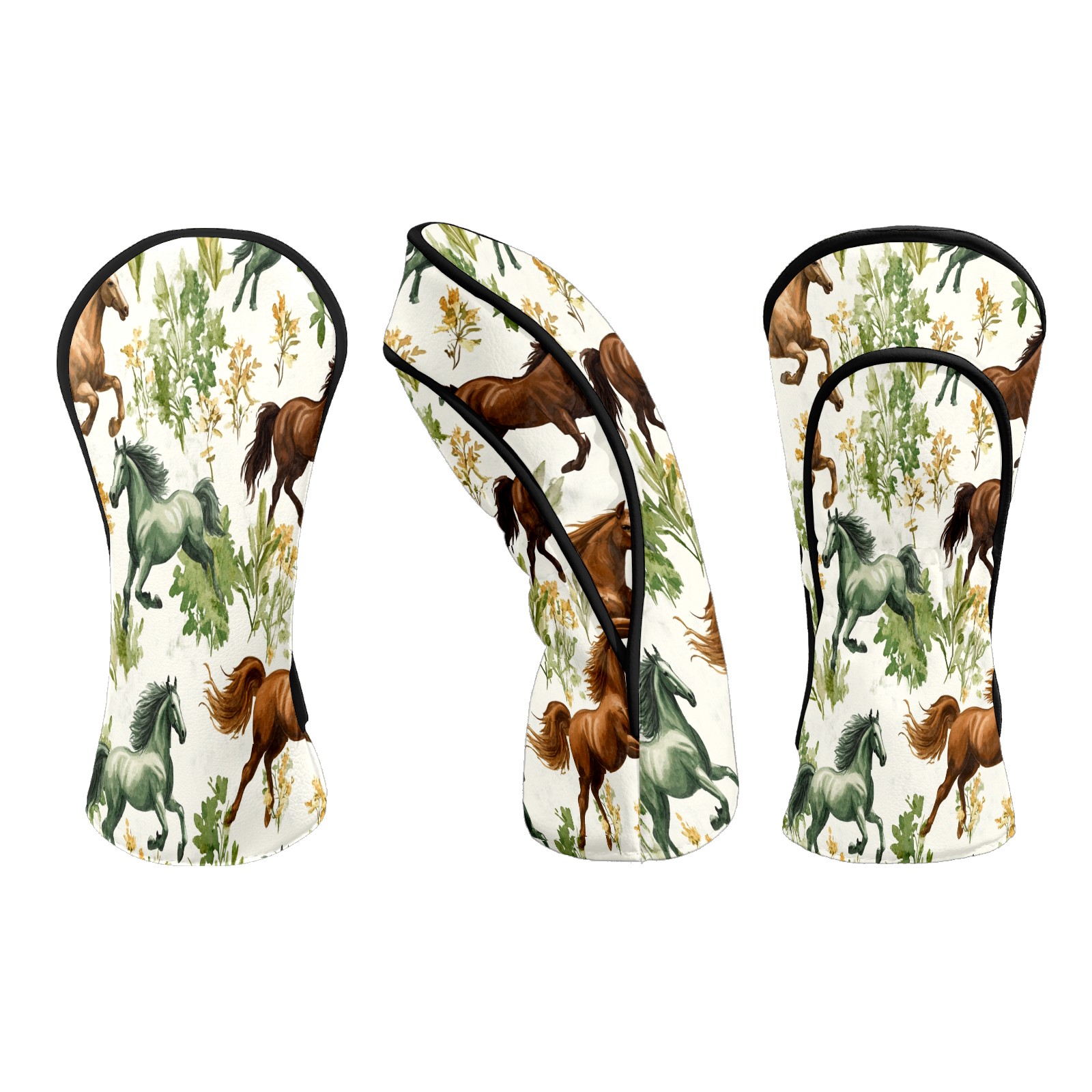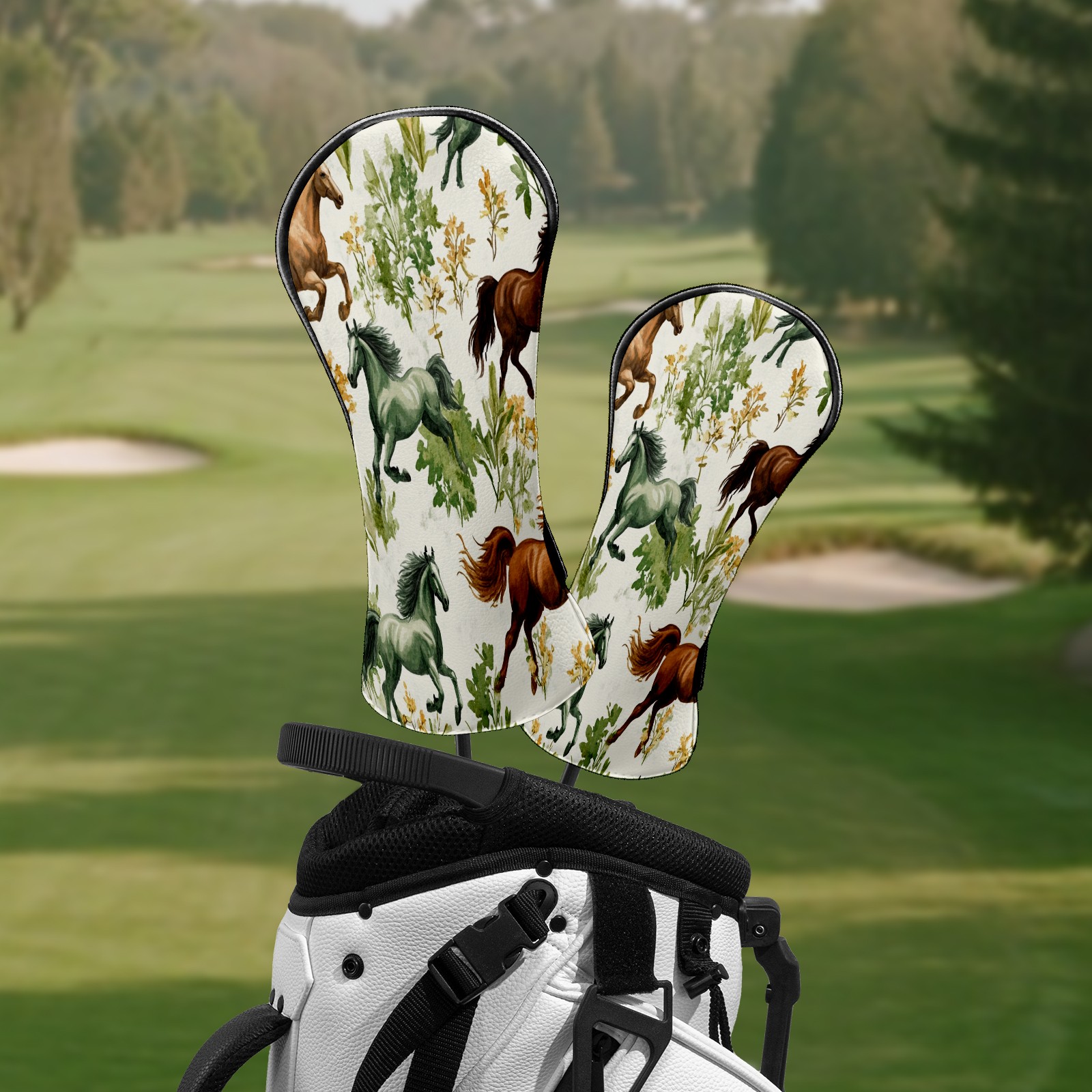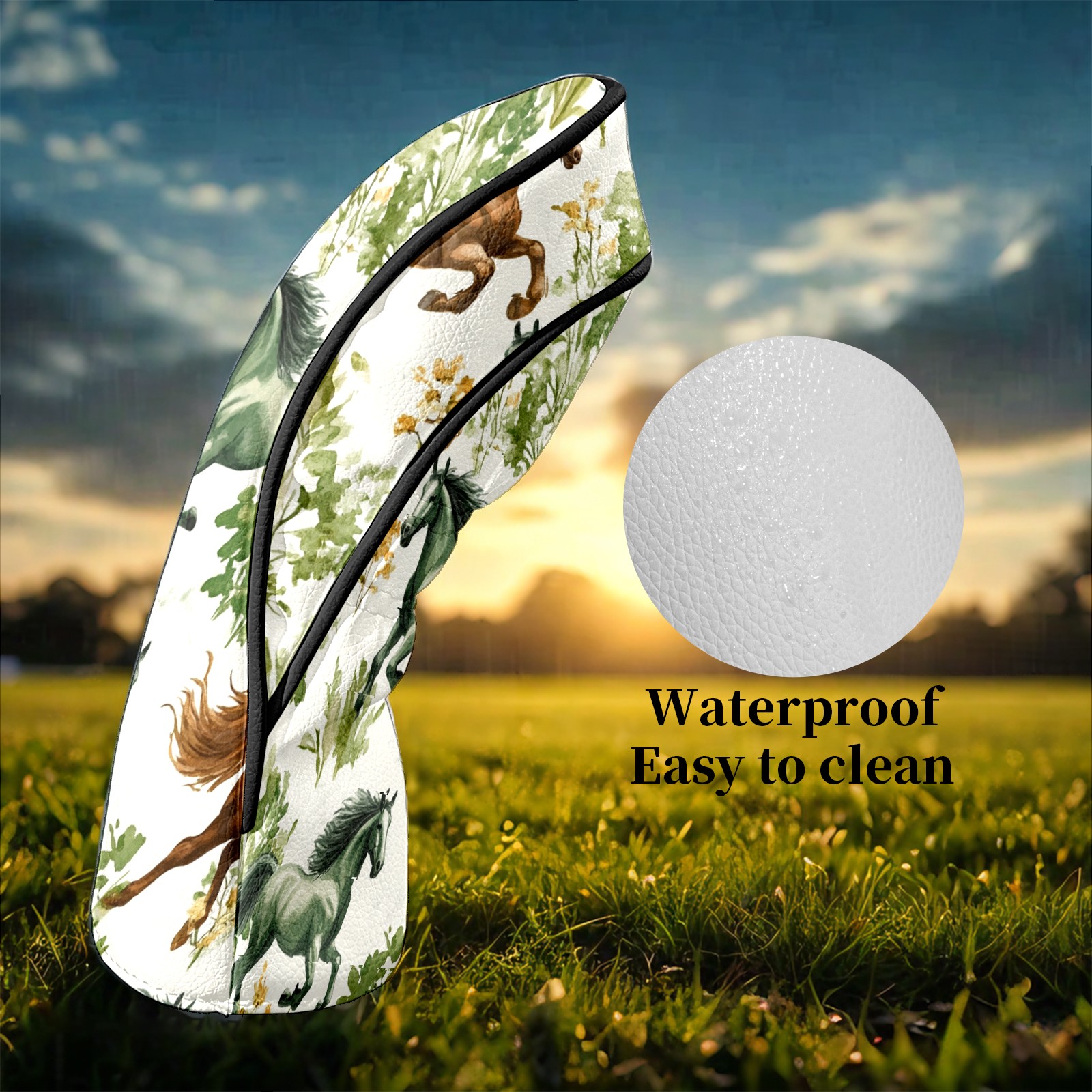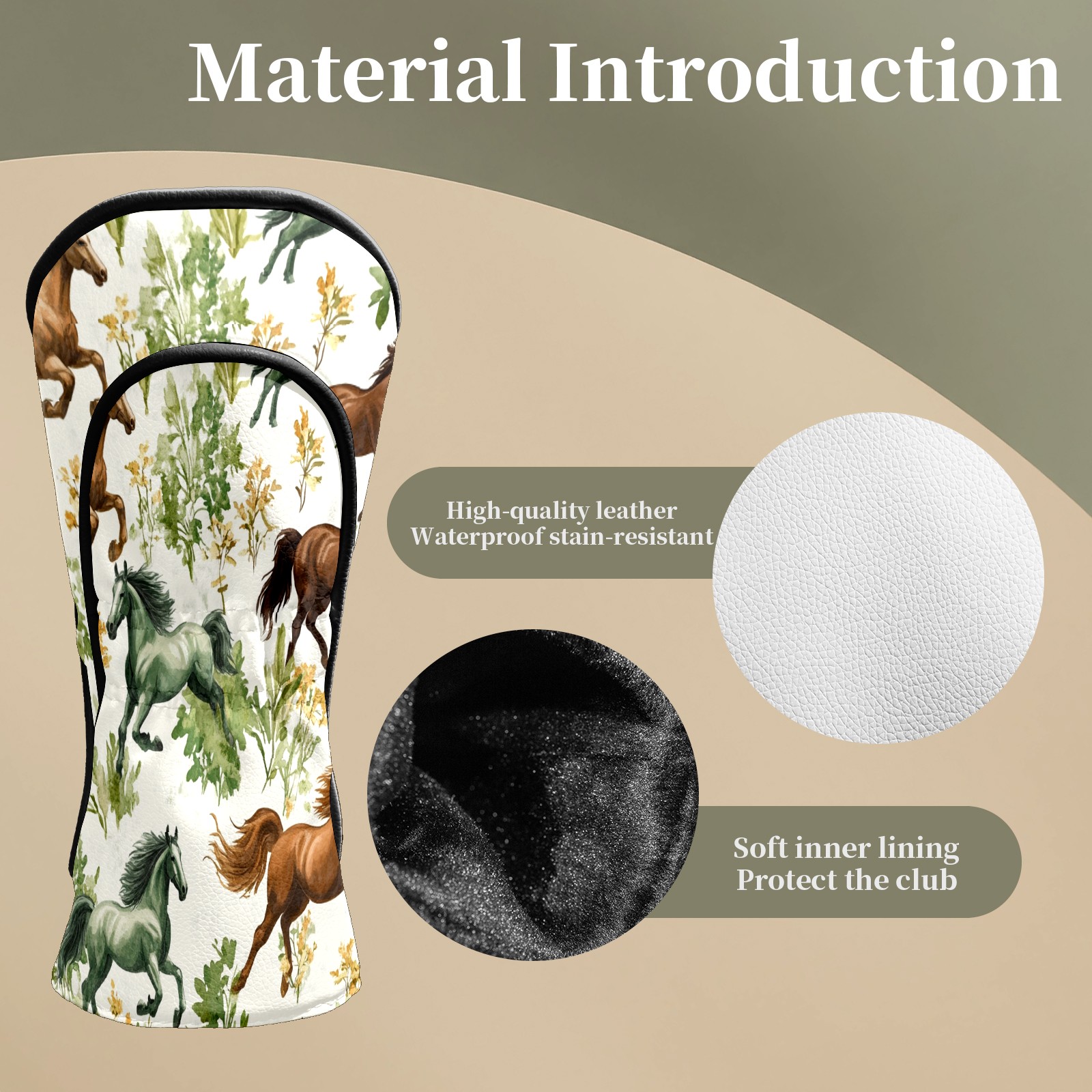 Golf Club Head Covers for Driver and Fairway Woods, Waterproof Leather Headcovers for Golf Clubs, Ideal Golf Accessories Gift for Men Women (Galloping Horses)