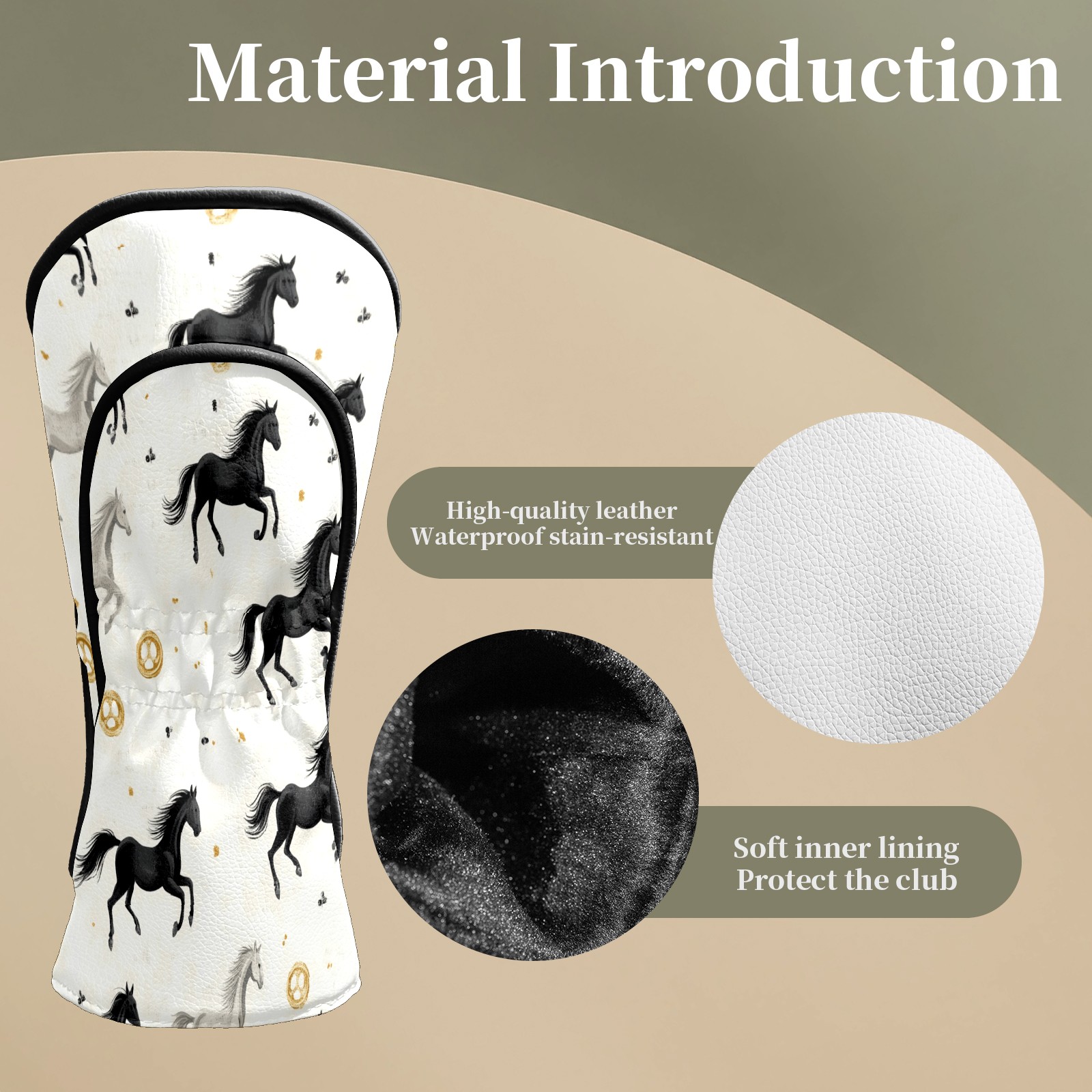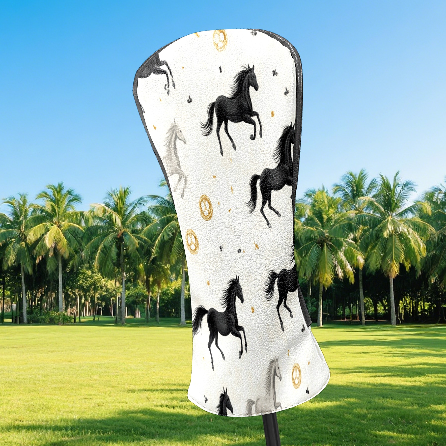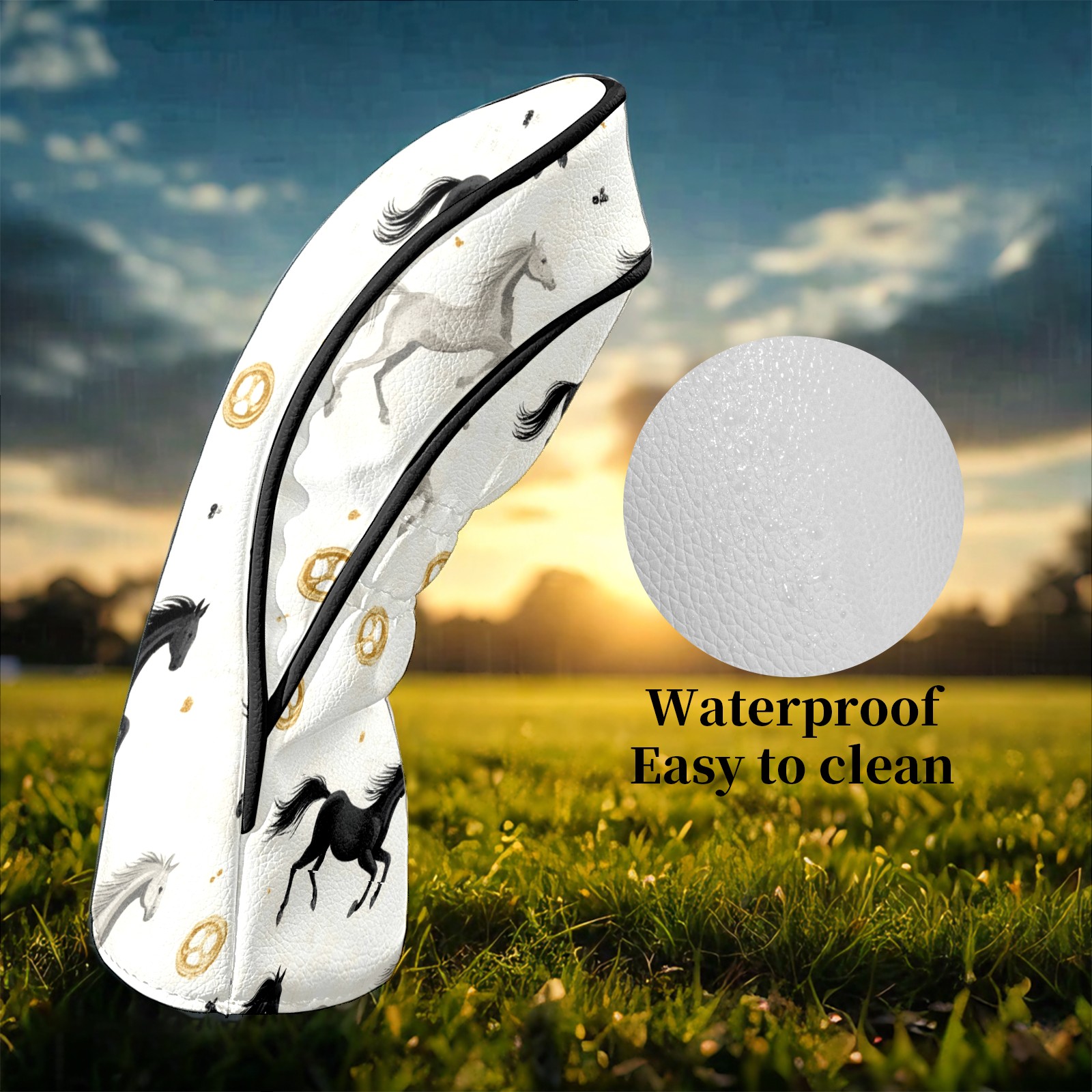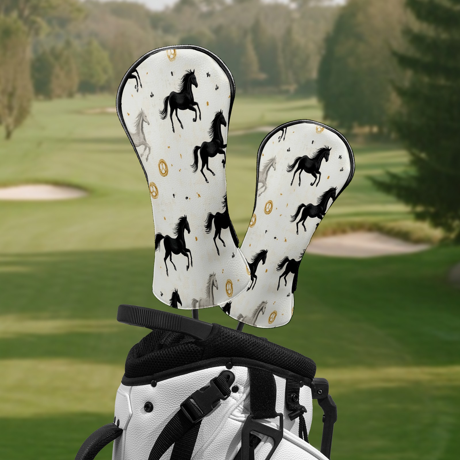 Golf Club Head Covers for Driver and Fairway Woods, Waterproof Leather Headcovers for Golf Clubs, Ideal Golf Accessories Gift for Men Women (Horses)