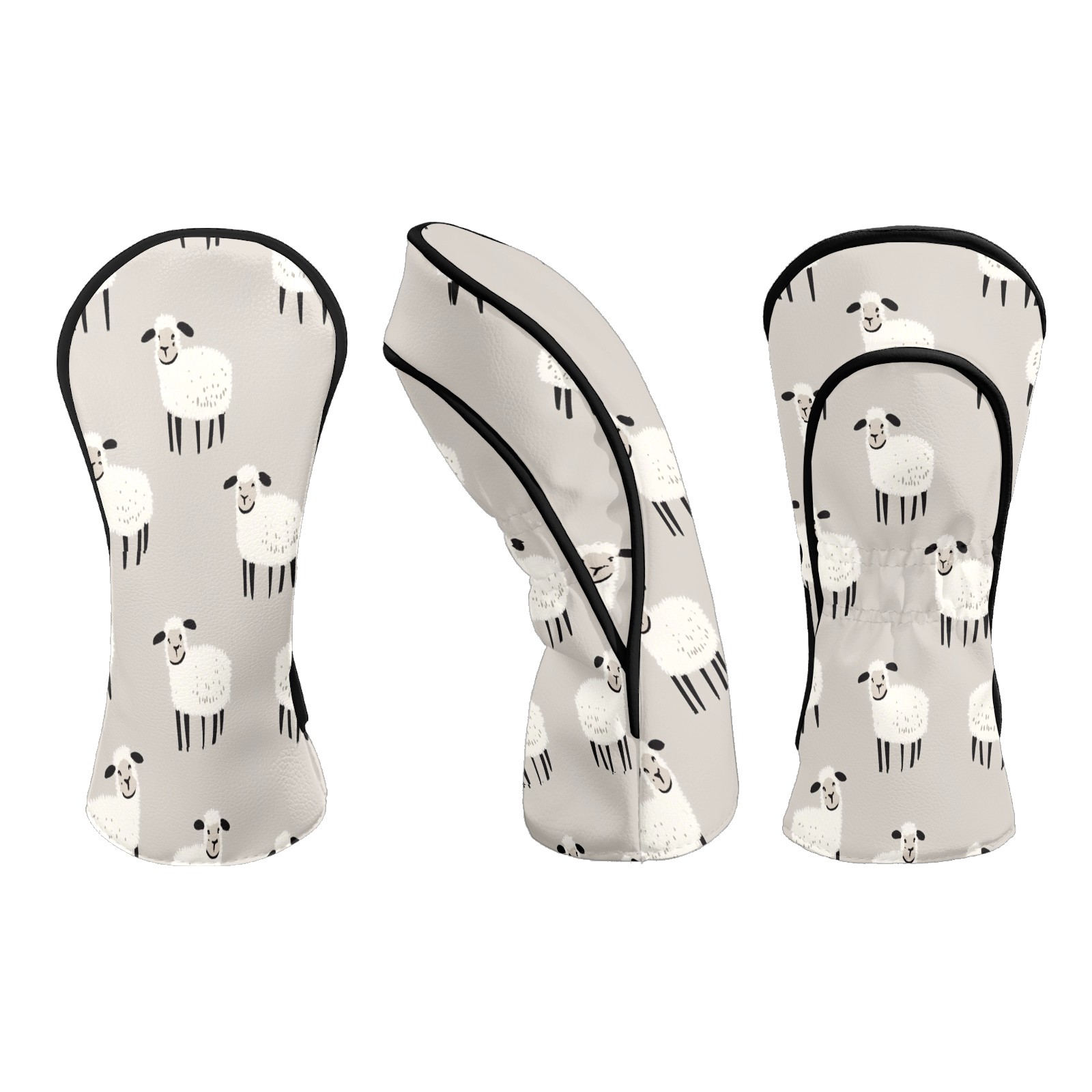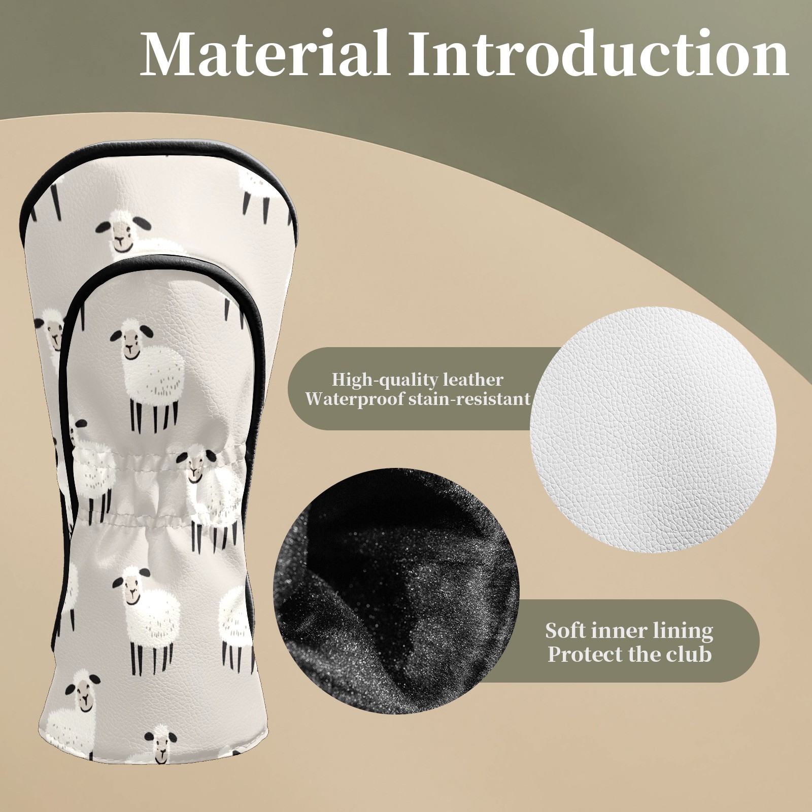 Golf Club Head Covers for Driver and Fairway Woods, Waterproof Leather Headcovers for Golf Clubs, Ideal Golf Accessories Gift for Men Women (Sheep)