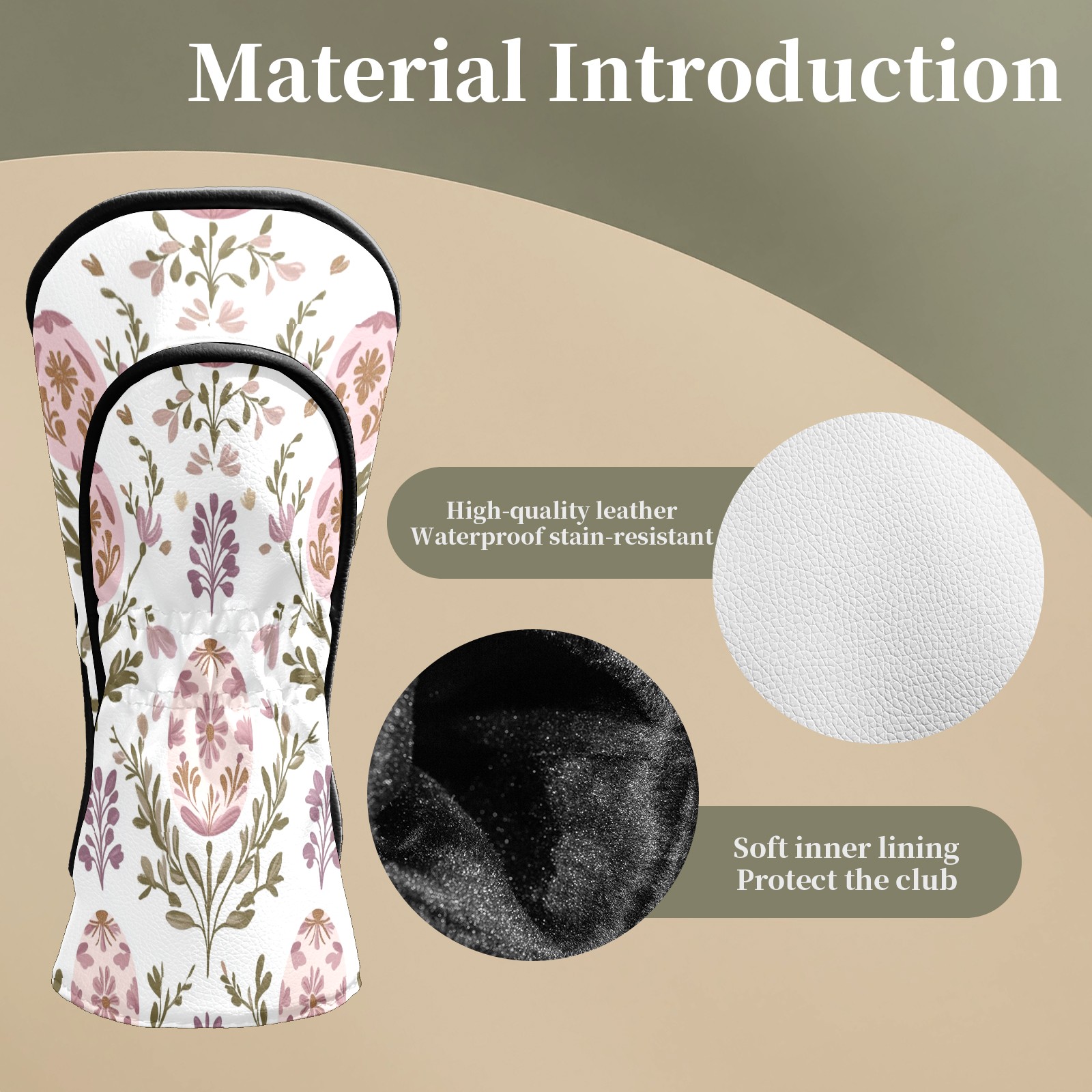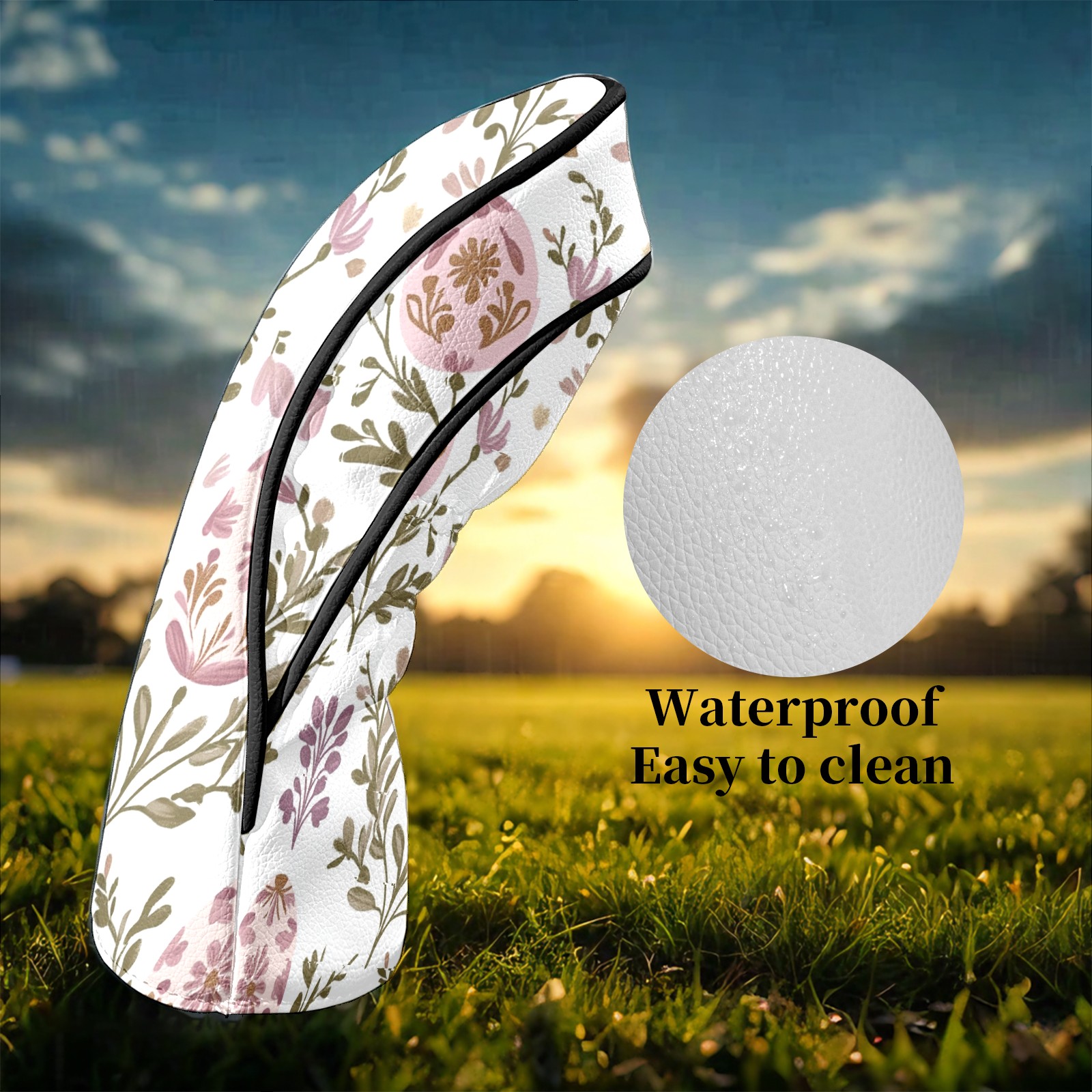 Golf Club Head Covers for Driver and Fairway Woods, Waterproof Leather Headcovers for Golf Clubs, Ideal Golf Accessories Gift for Men Women (Egg-shaped Floral)