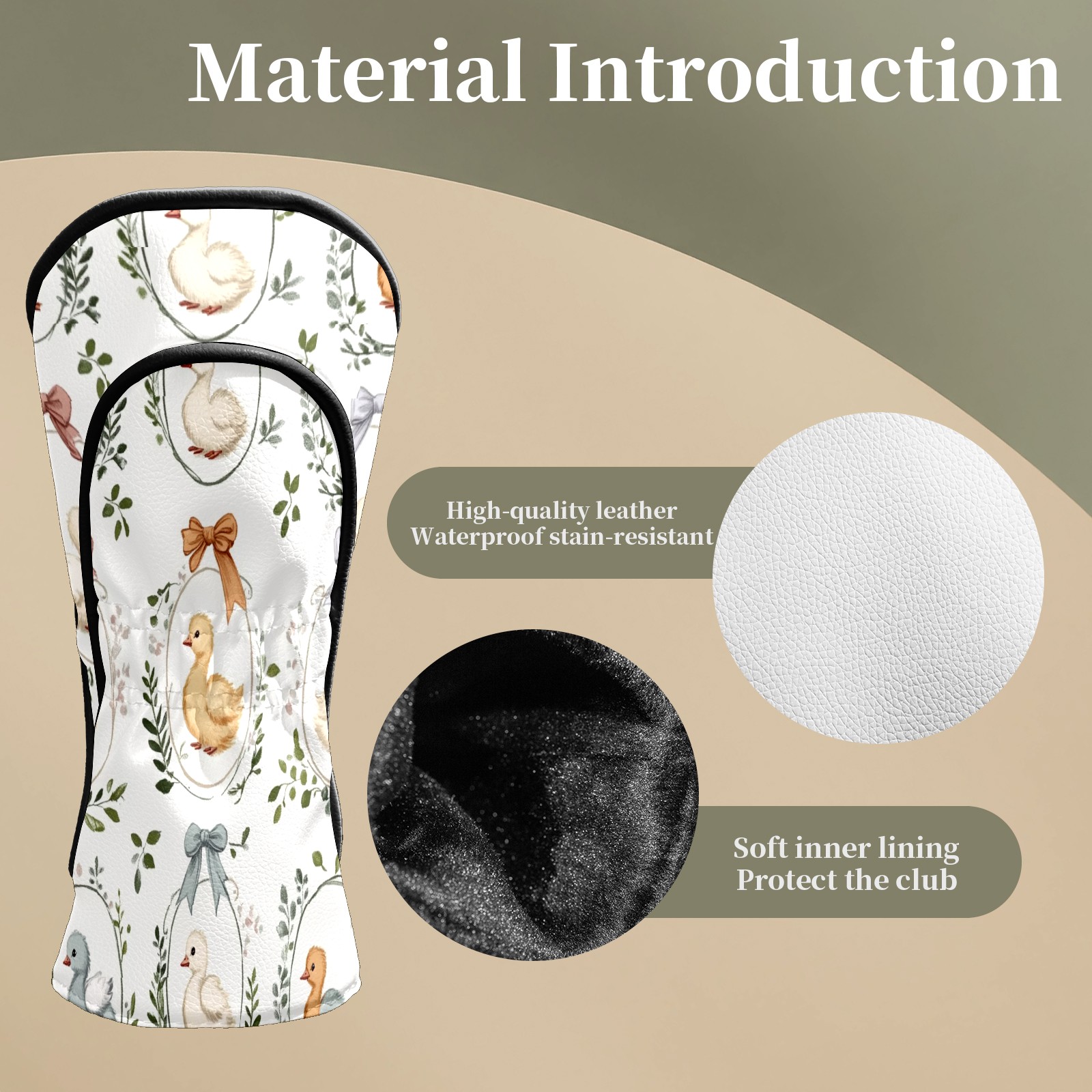 Golf Club Head Covers for Driver and Fairway Woods, Waterproof Leather Headcovers for Golf Clubs, Ideal Golf Accessories Gift for Men Women (Cute Geese)
