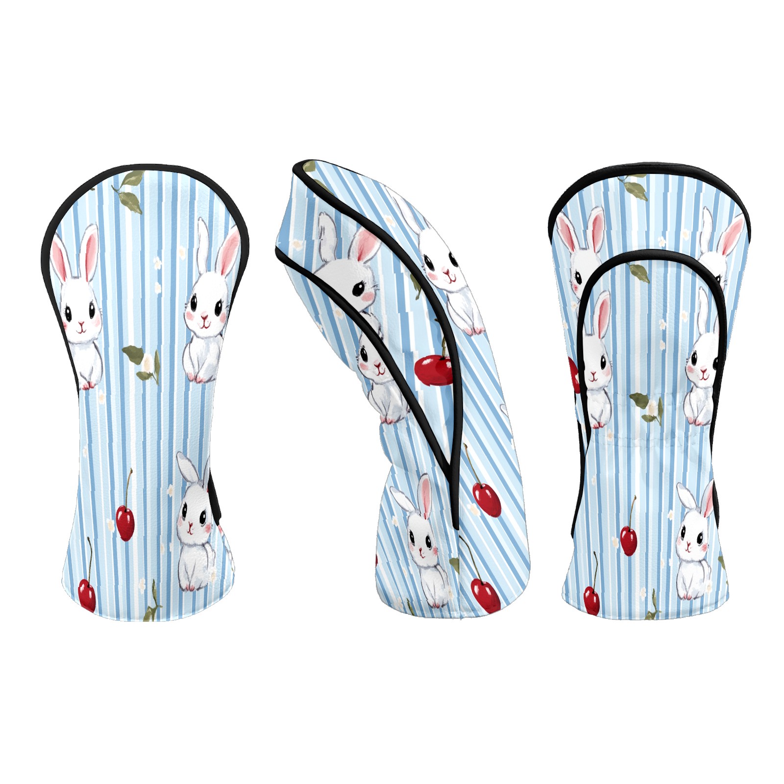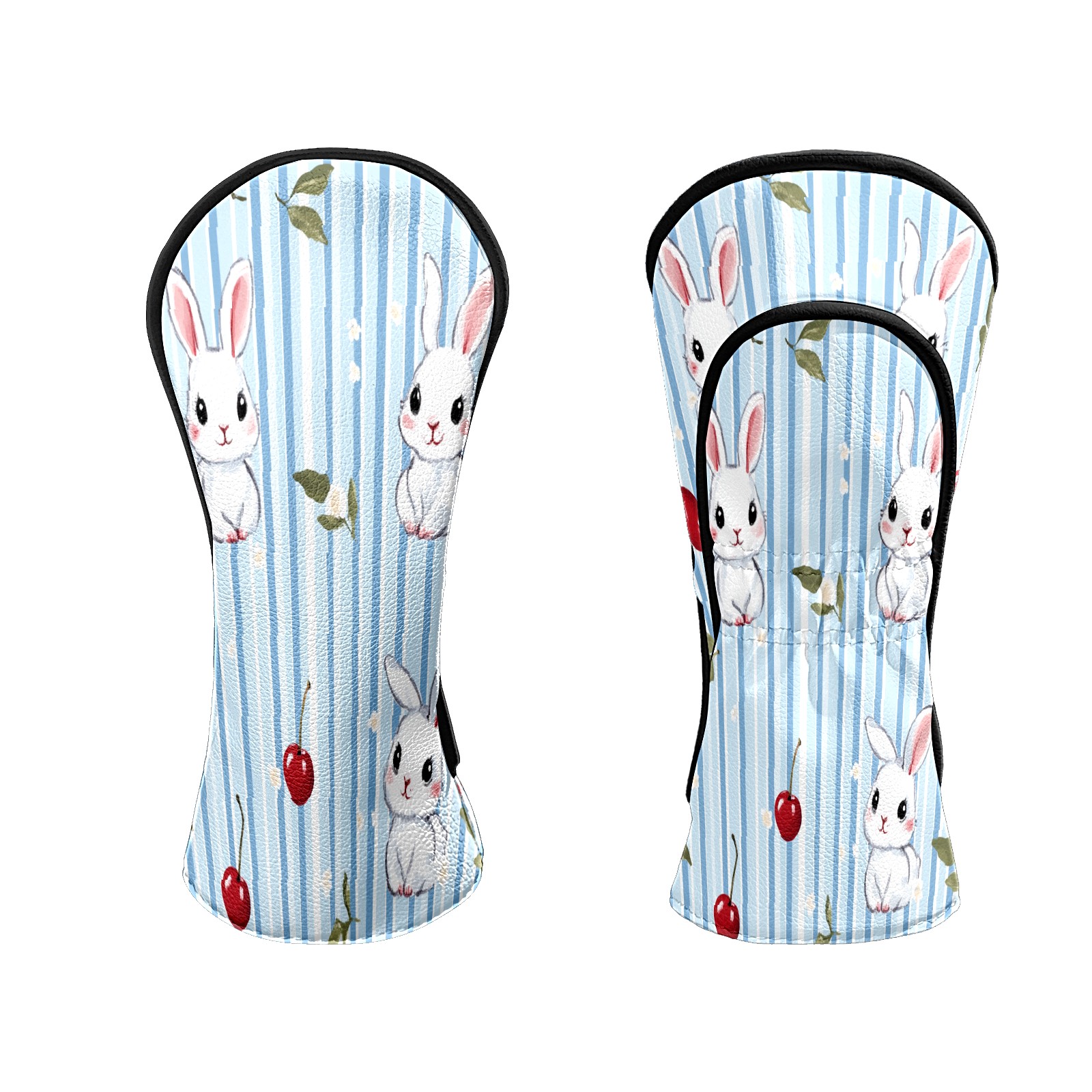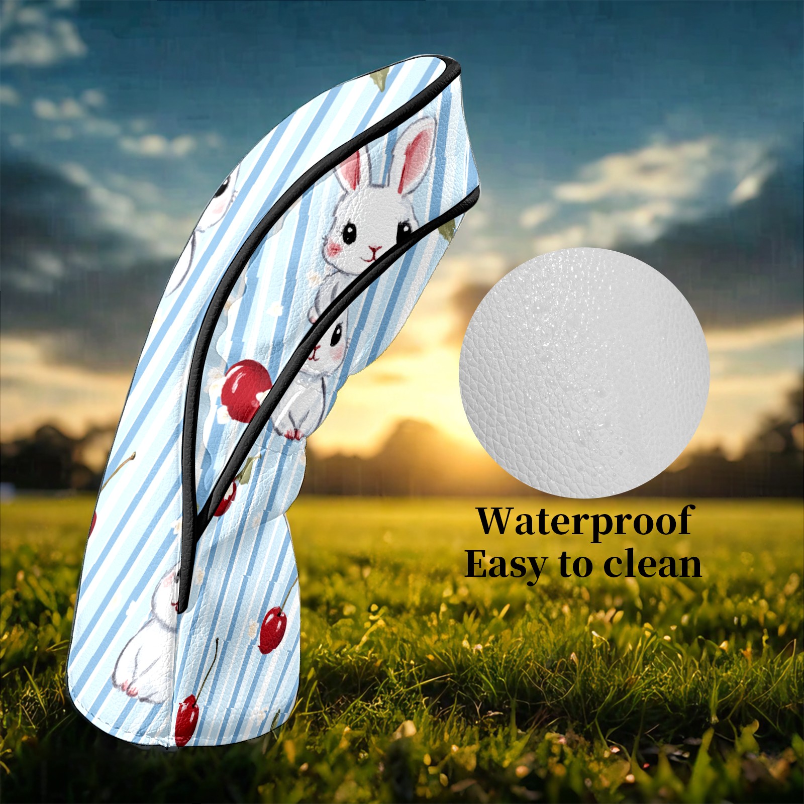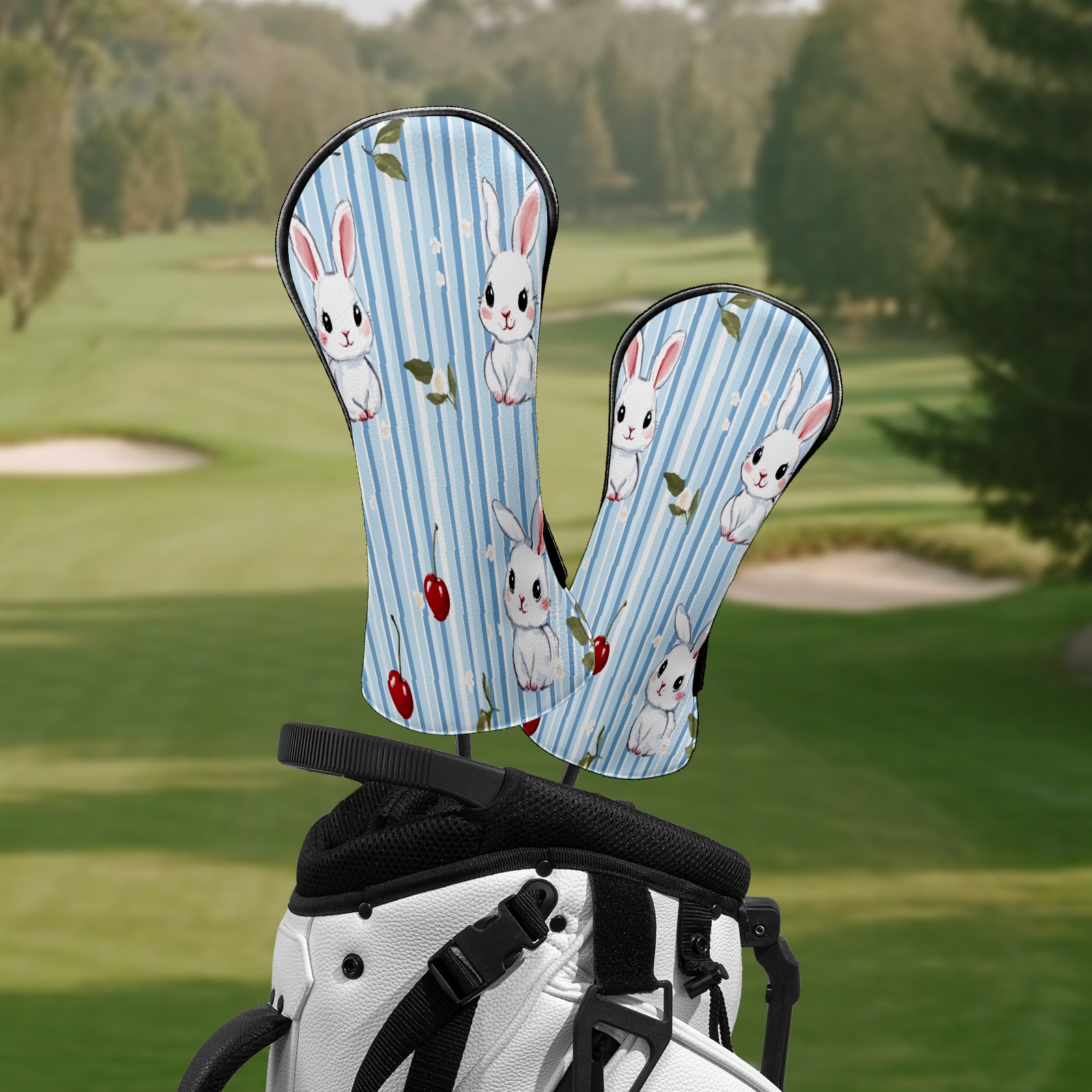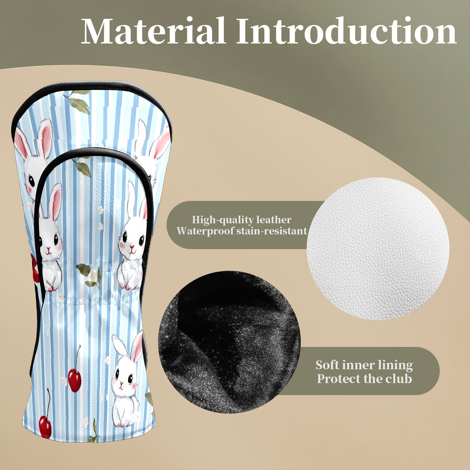 Golf Club Head Covers for Driver and Fairway Woods, Waterproof Leather Headcovers for Golf Clubs, Ideal Golf Accessories Gift for Men Women (Bunnies And Cherries)