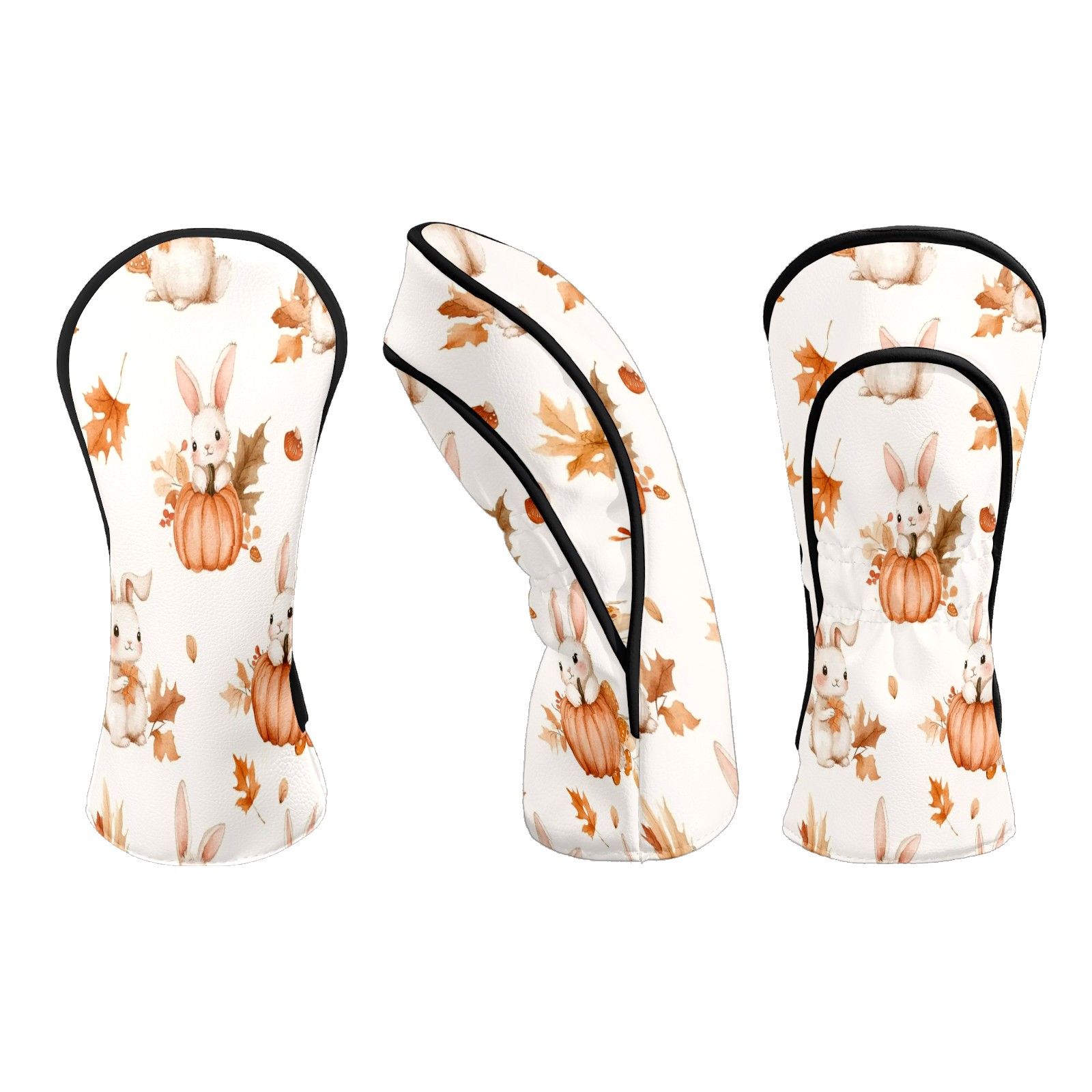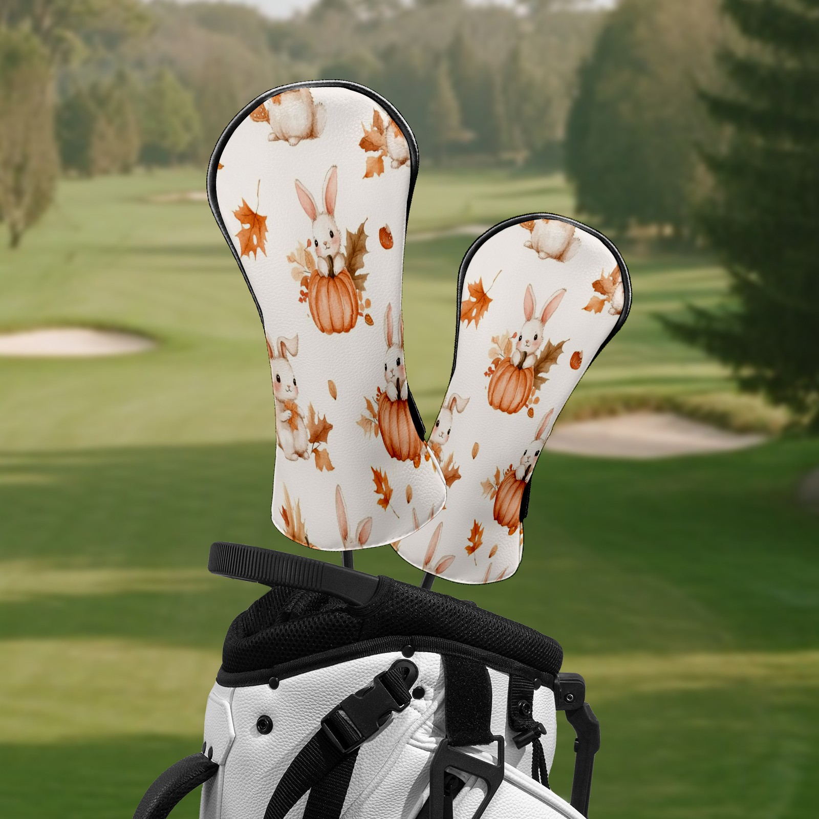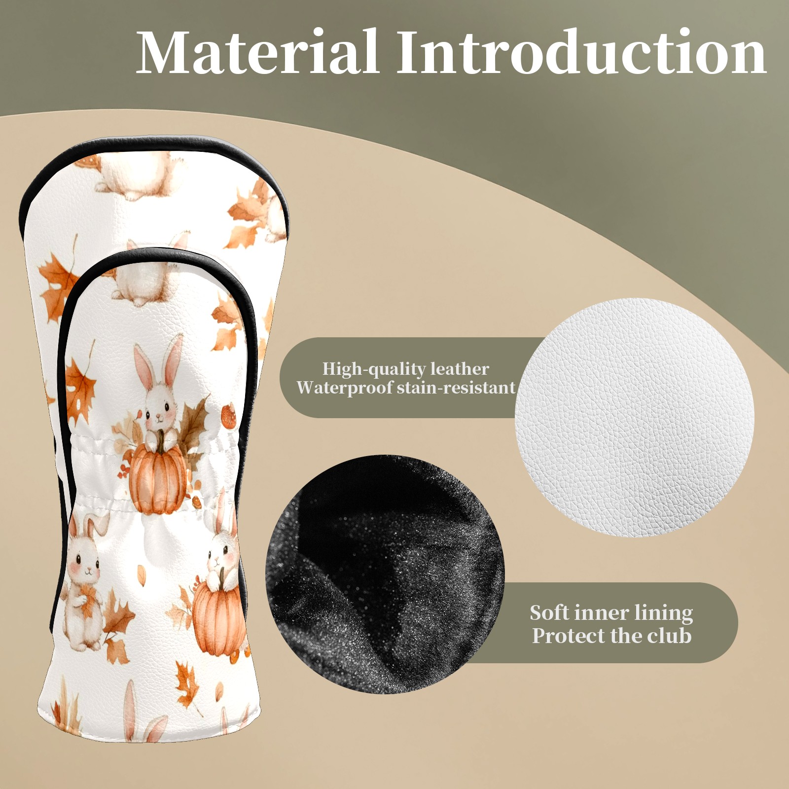 Golf Club Head Covers for Driver and Fairway Woods, Waterproof Leather Headcovers for Golf Clubs, Ideal Golf Accessories Gift for Men Women (Bunnies And Pumpkin)
