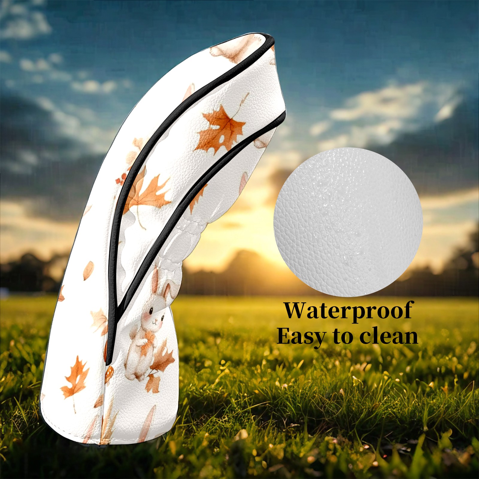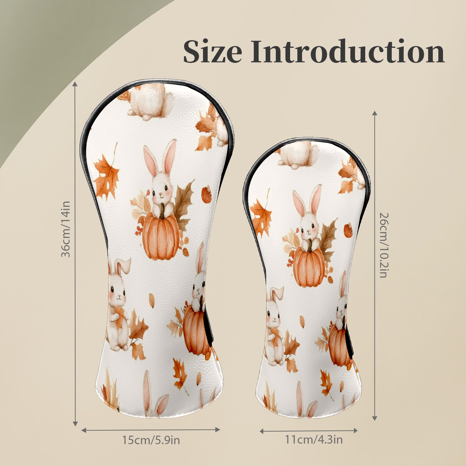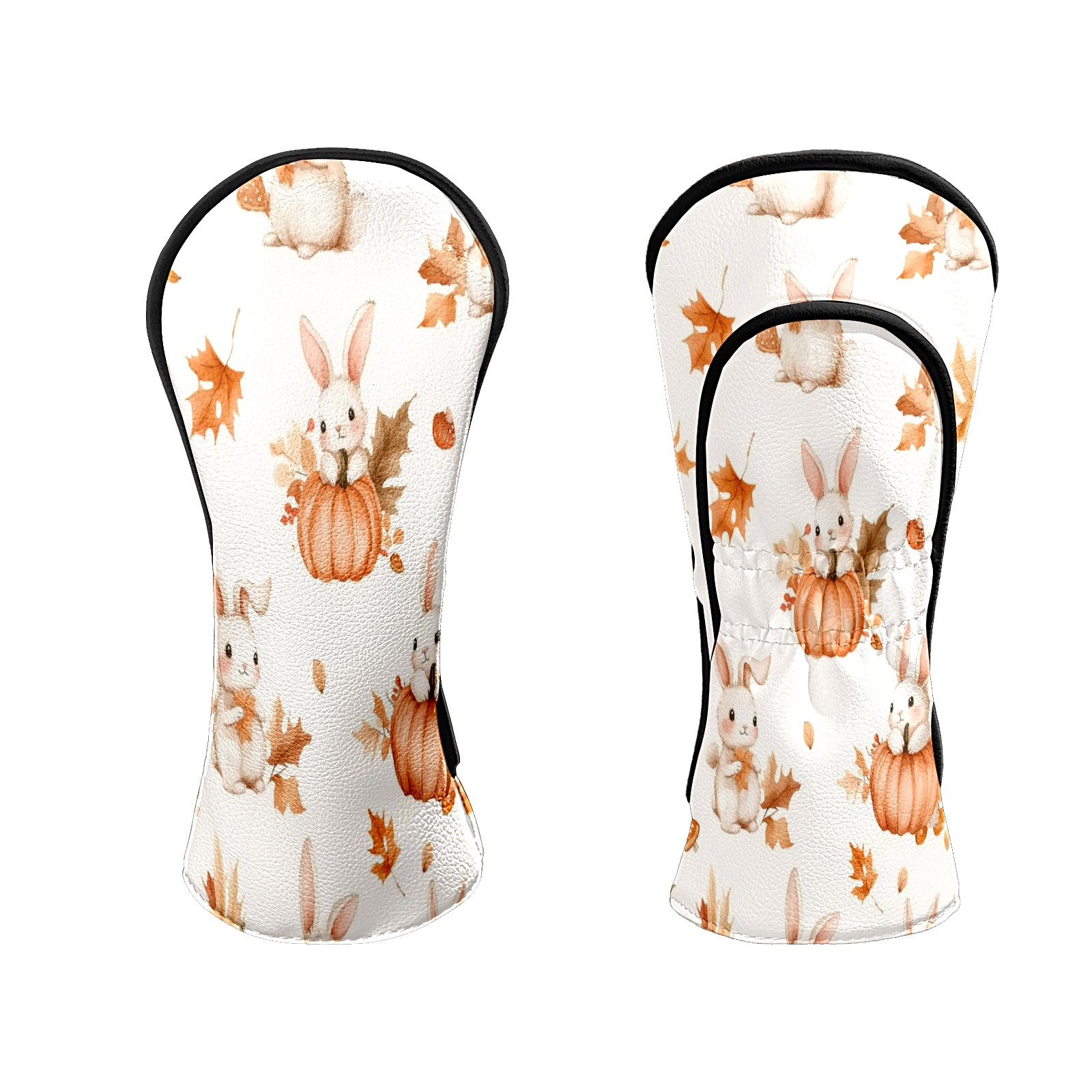 Golf Club Head Covers for Driver and Fairway Woods, Waterproof Leather Headcovers for Golf Clubs, Ideal Golf Accessories Gift for Men Women (Bunnies And Pumpkin)