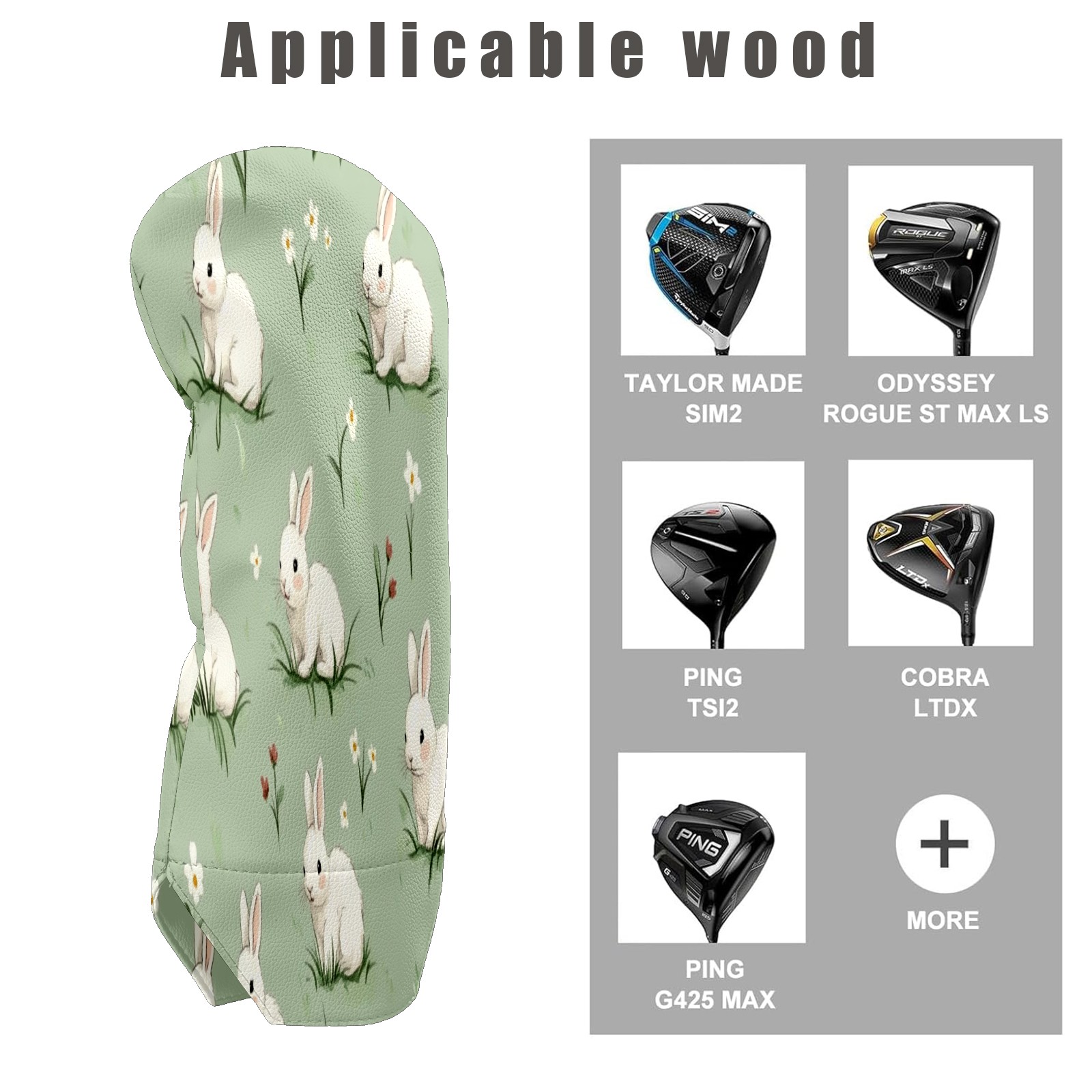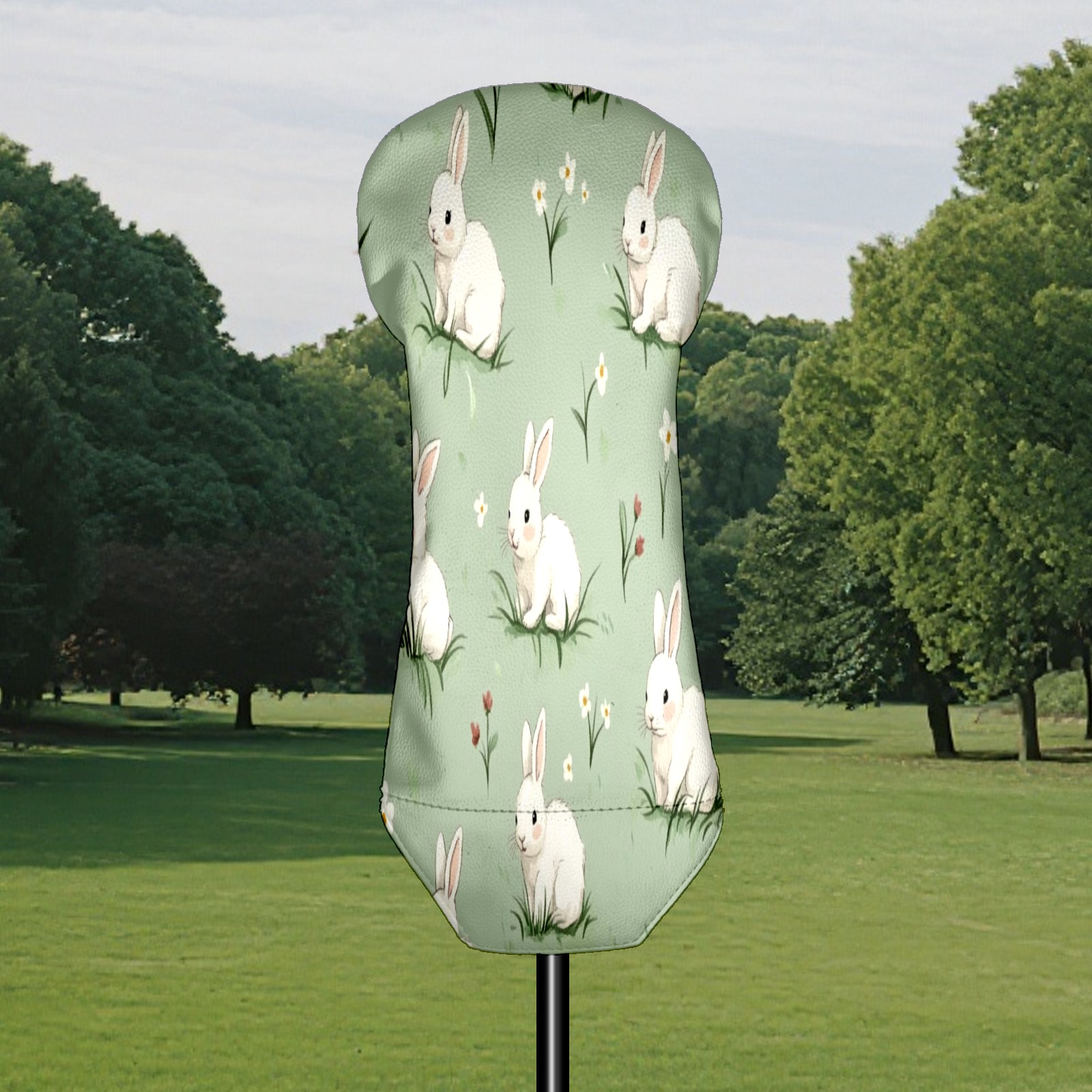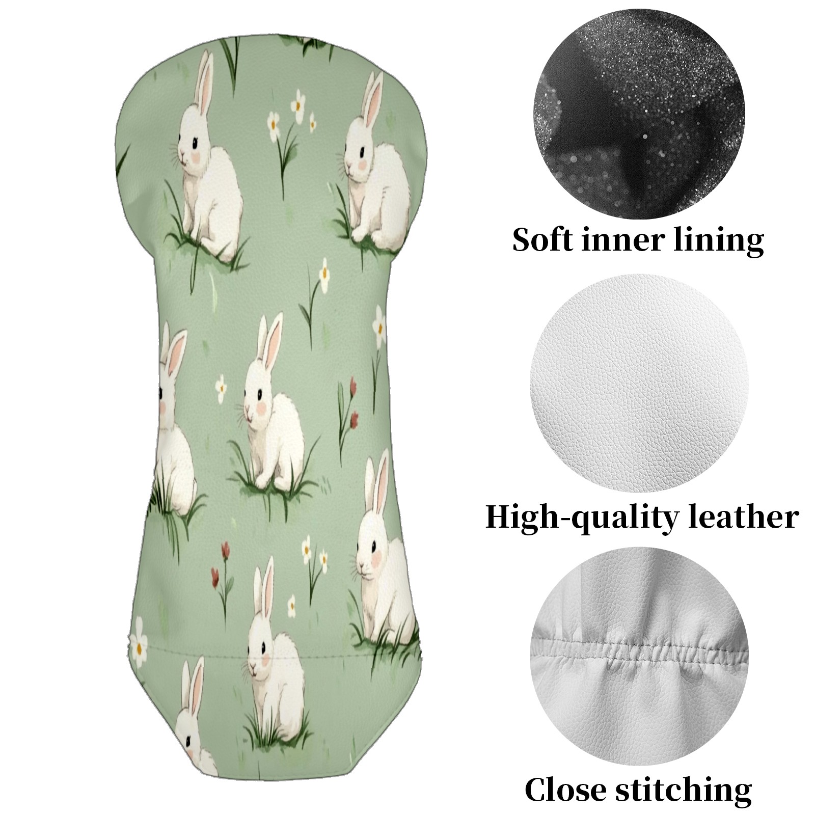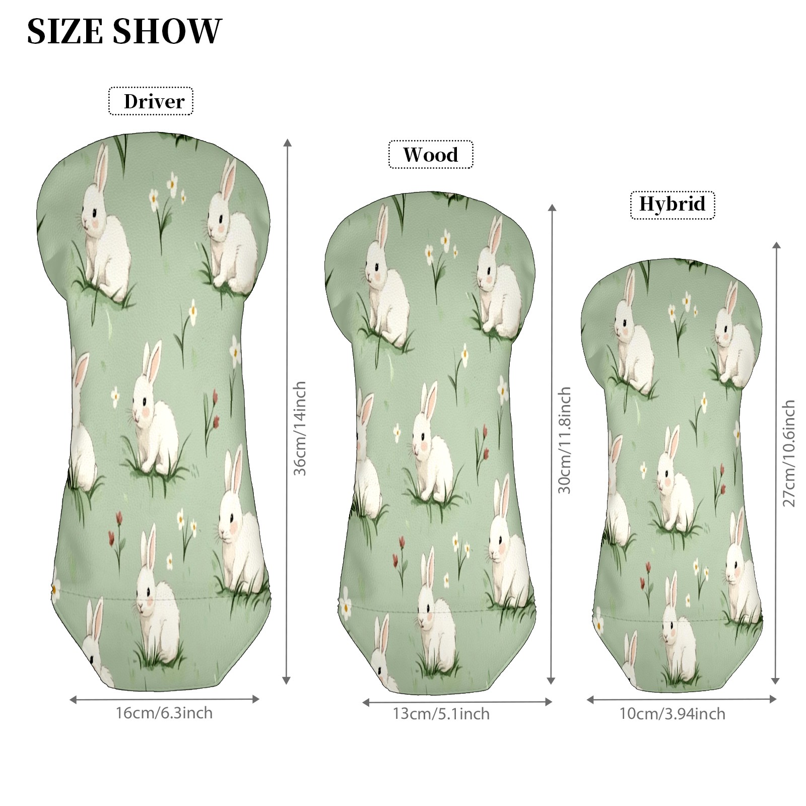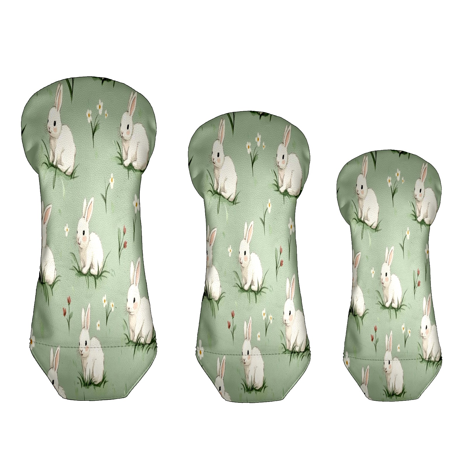 Golf Club Head Covers for Driver Hybrid and Fairway Woods, Waterproof Leather Headcovers for Golf Clubs, Ideal Golf Accessories Gift for Men Women (White Rabbits)