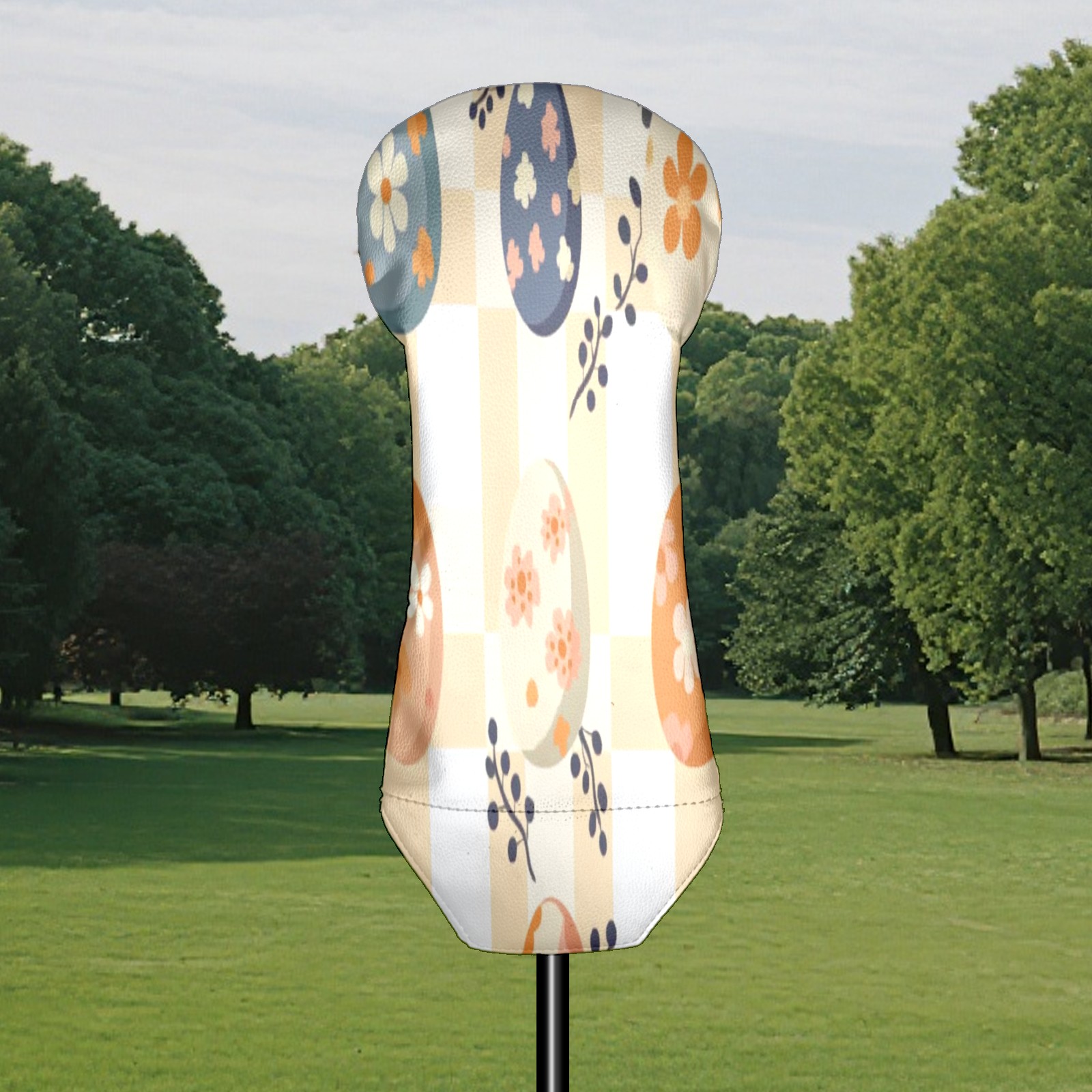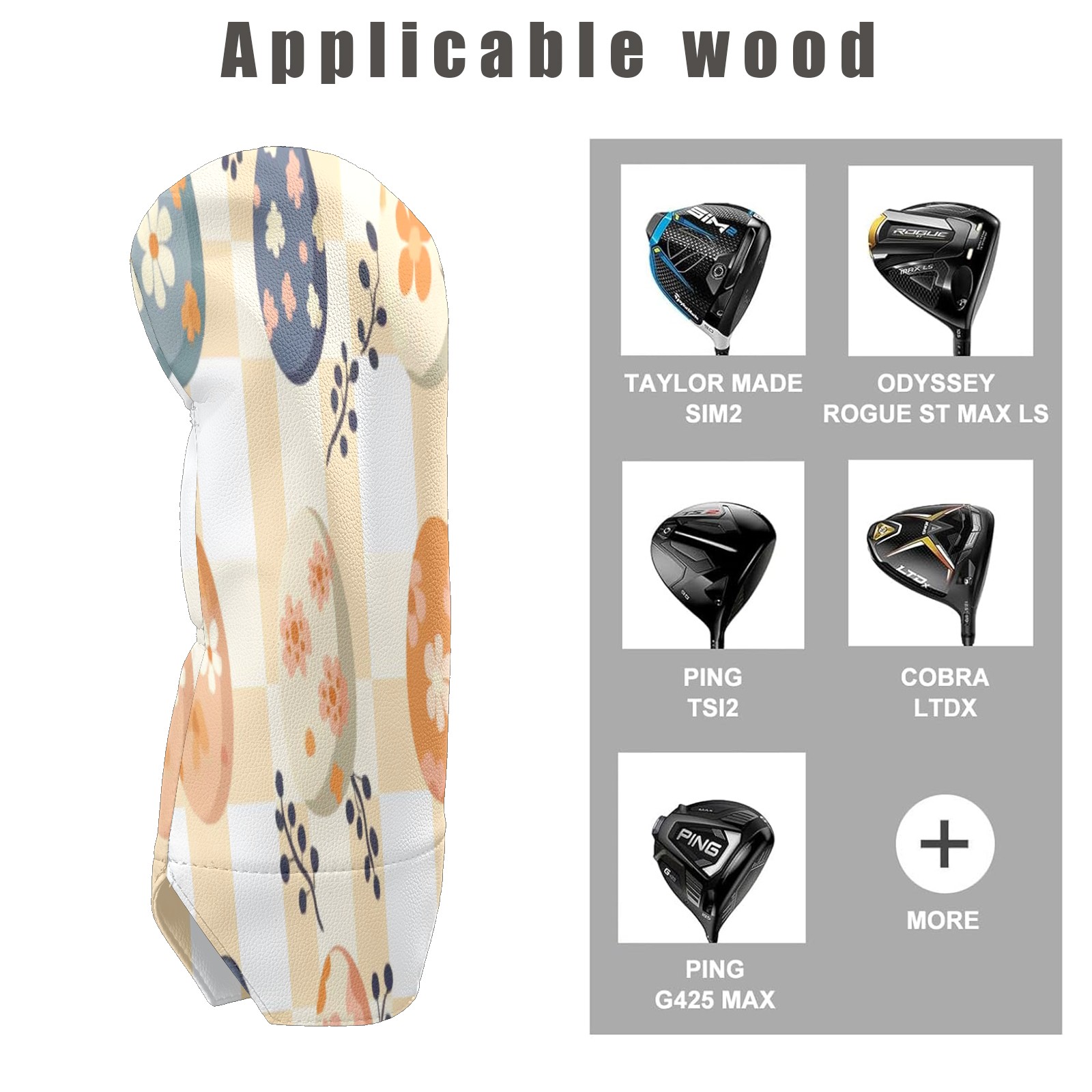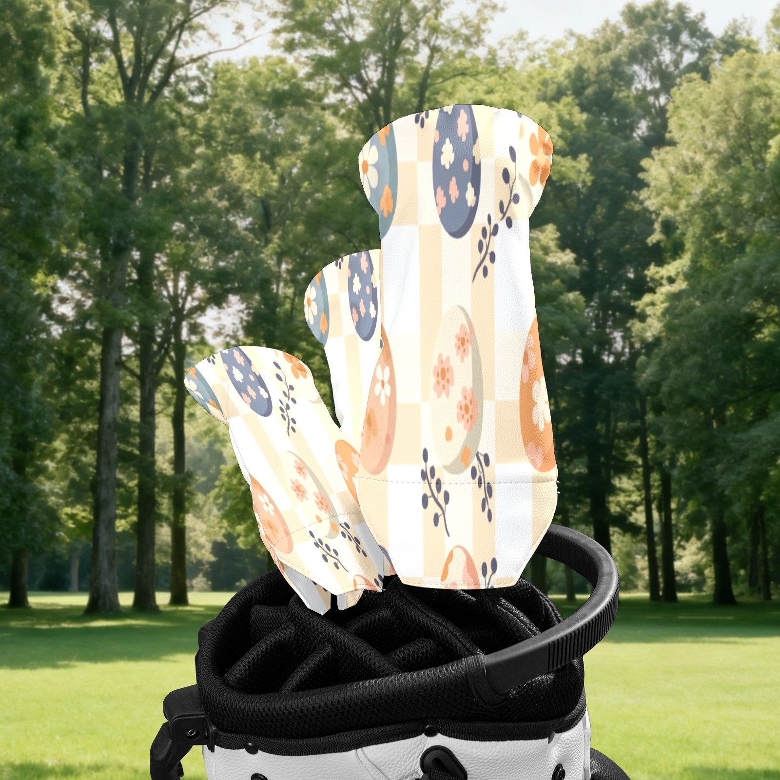 Golf Club Head Covers for Driver Hybrid and Fairway Woods, Waterproof Leather Headcovers for Golf Clubs, Ideal Golf Accessories Gift for Men Women (Pastel Easter Eggs And Flowers)