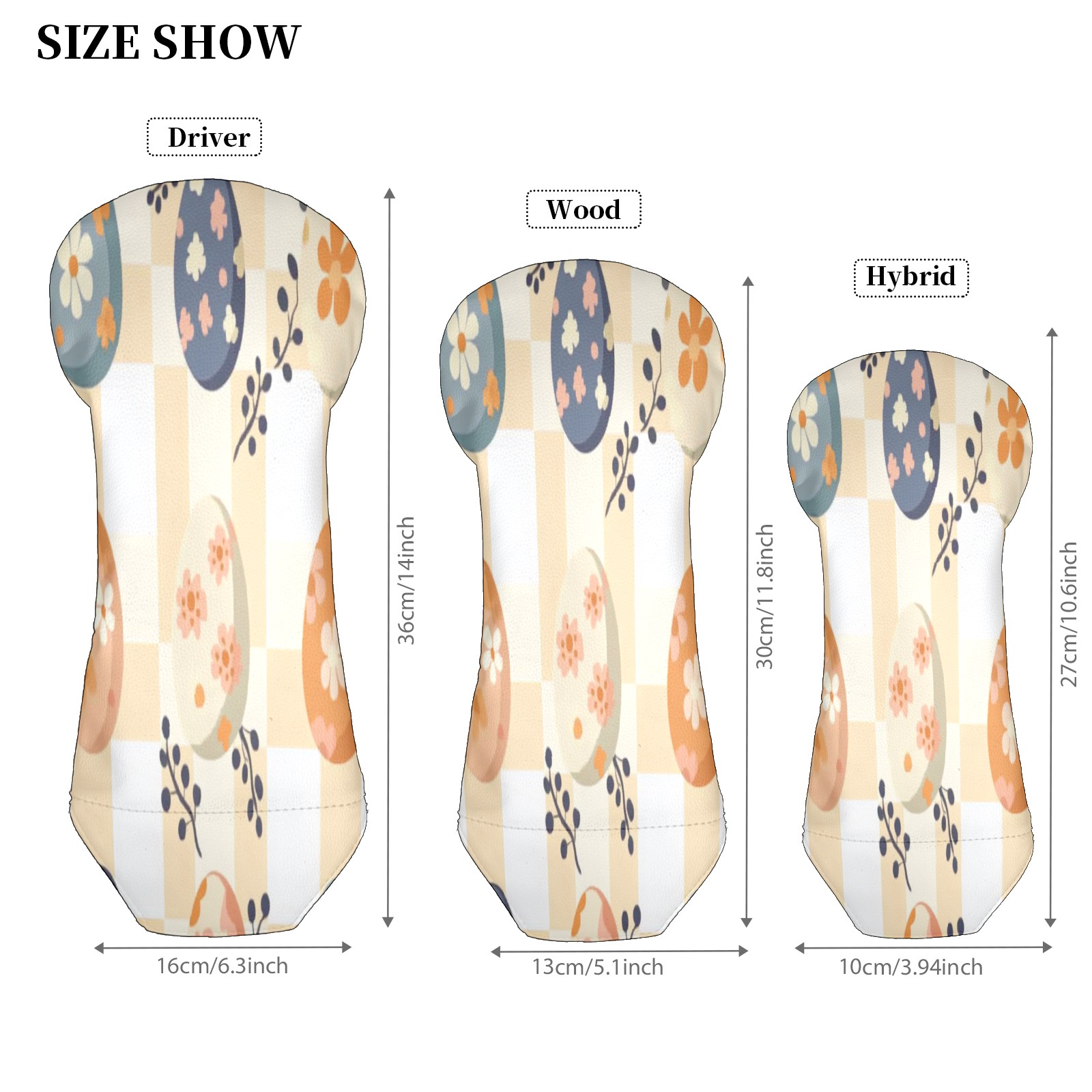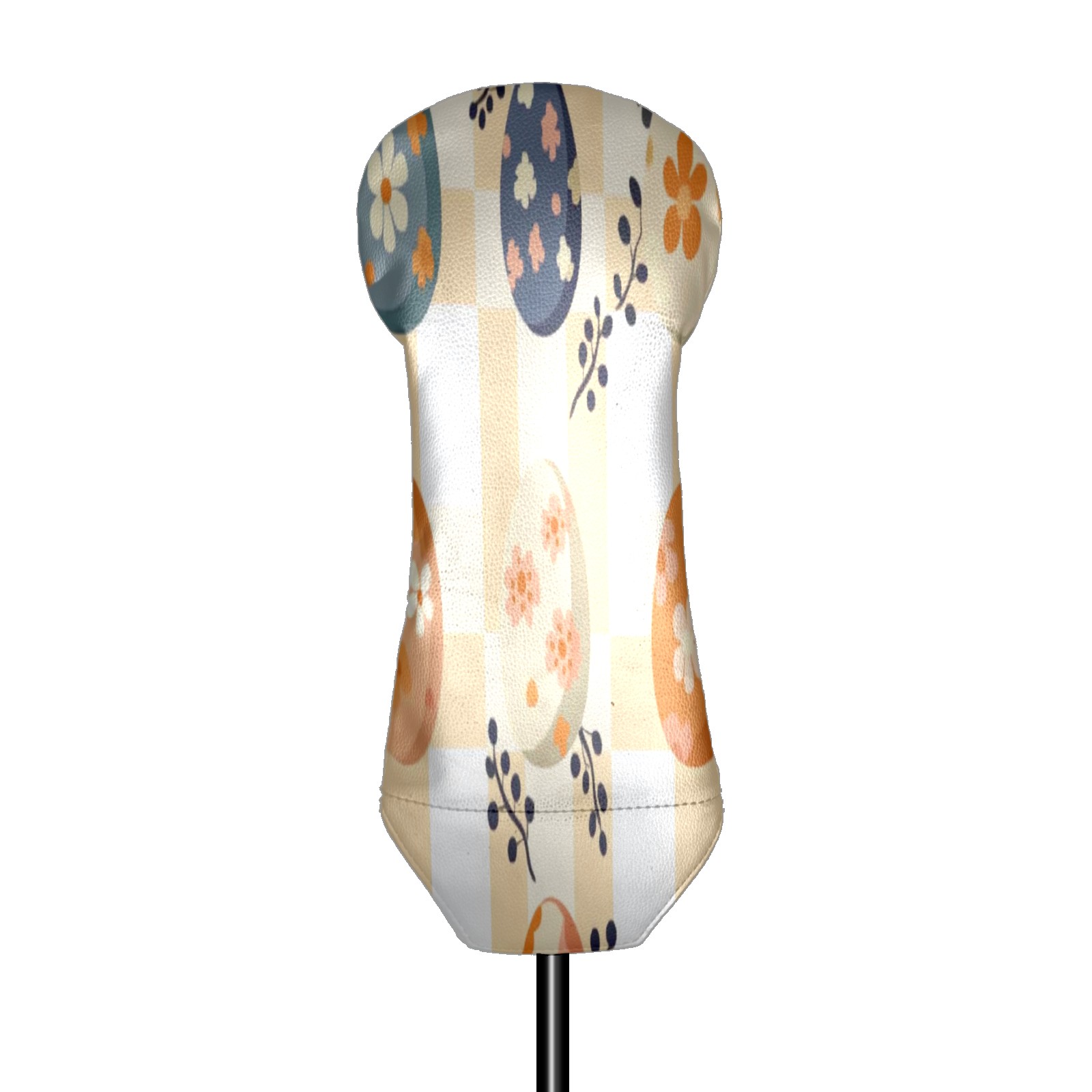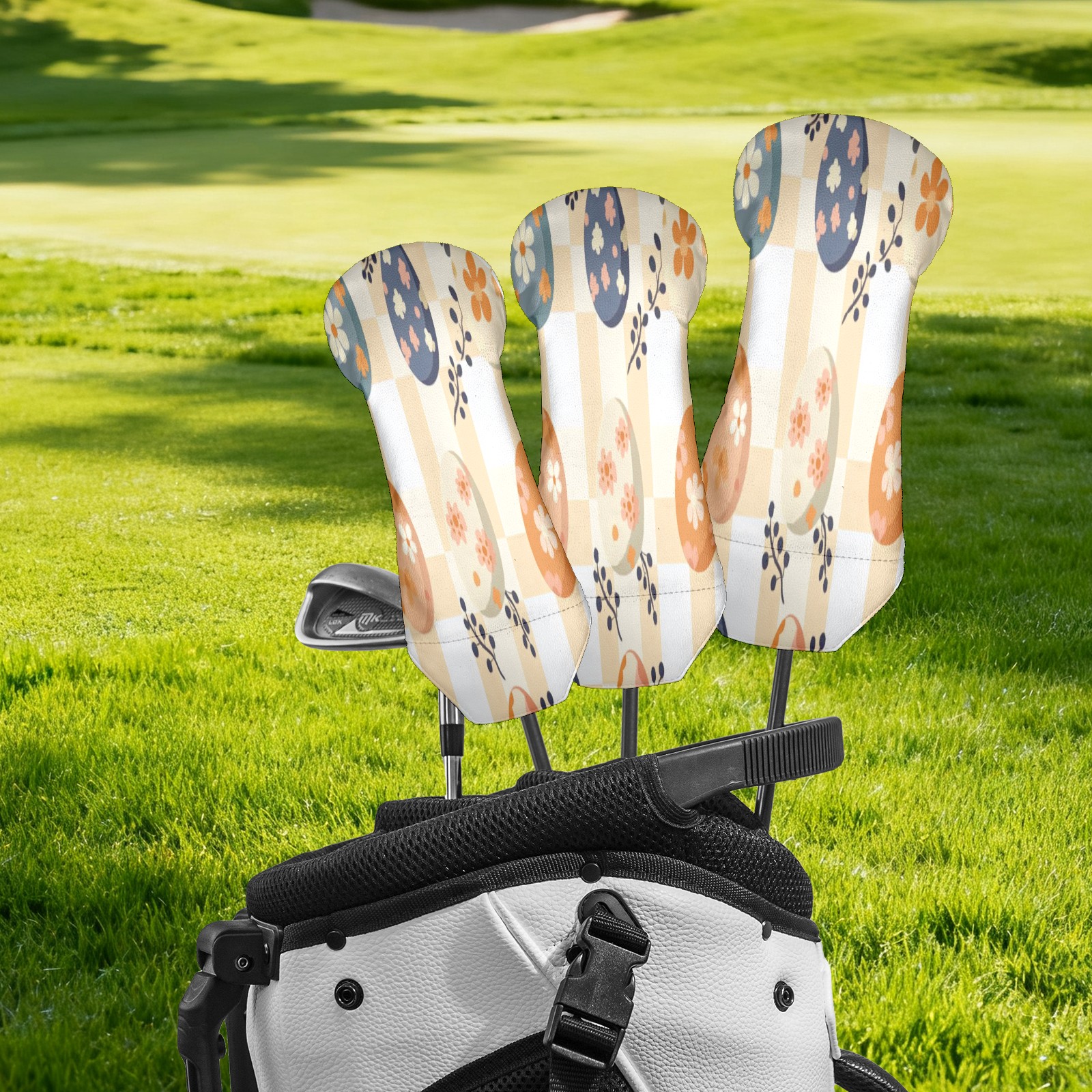 Golf Club Head Covers for Driver Hybrid and Fairway Woods, Waterproof Leather Headcovers for Golf Clubs, Ideal Golf Accessories Gift for Men Women (Pastel Easter Eggs And Flowers)