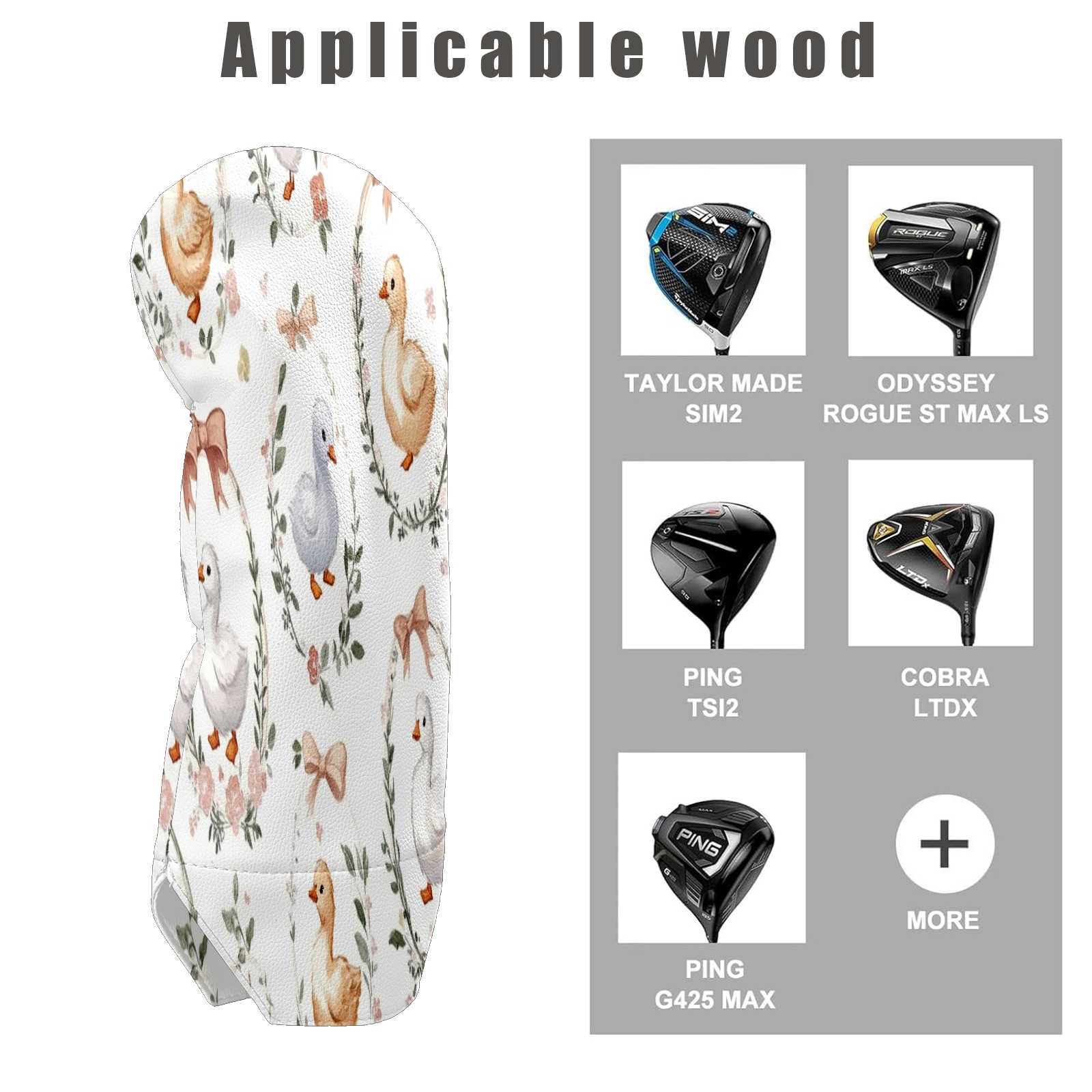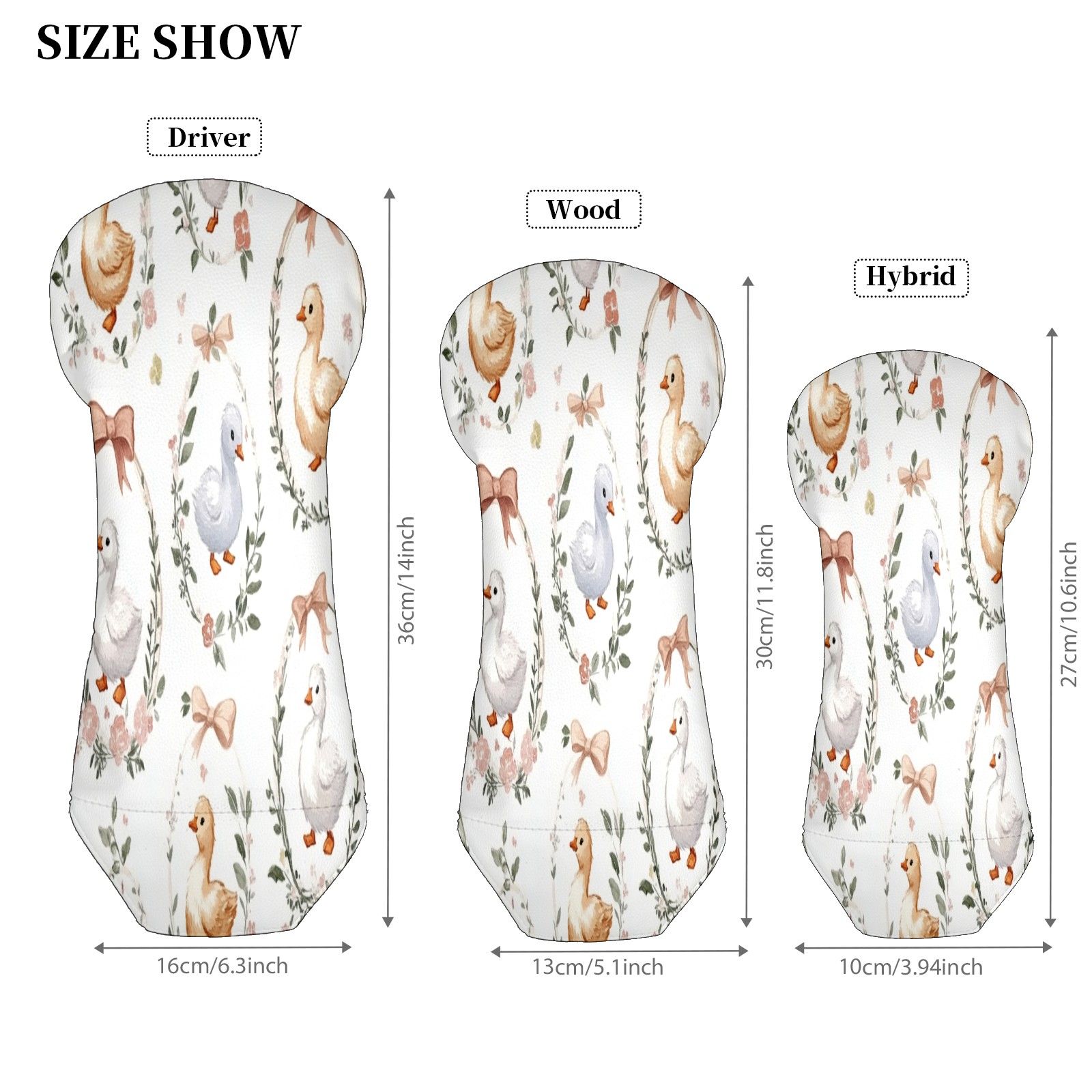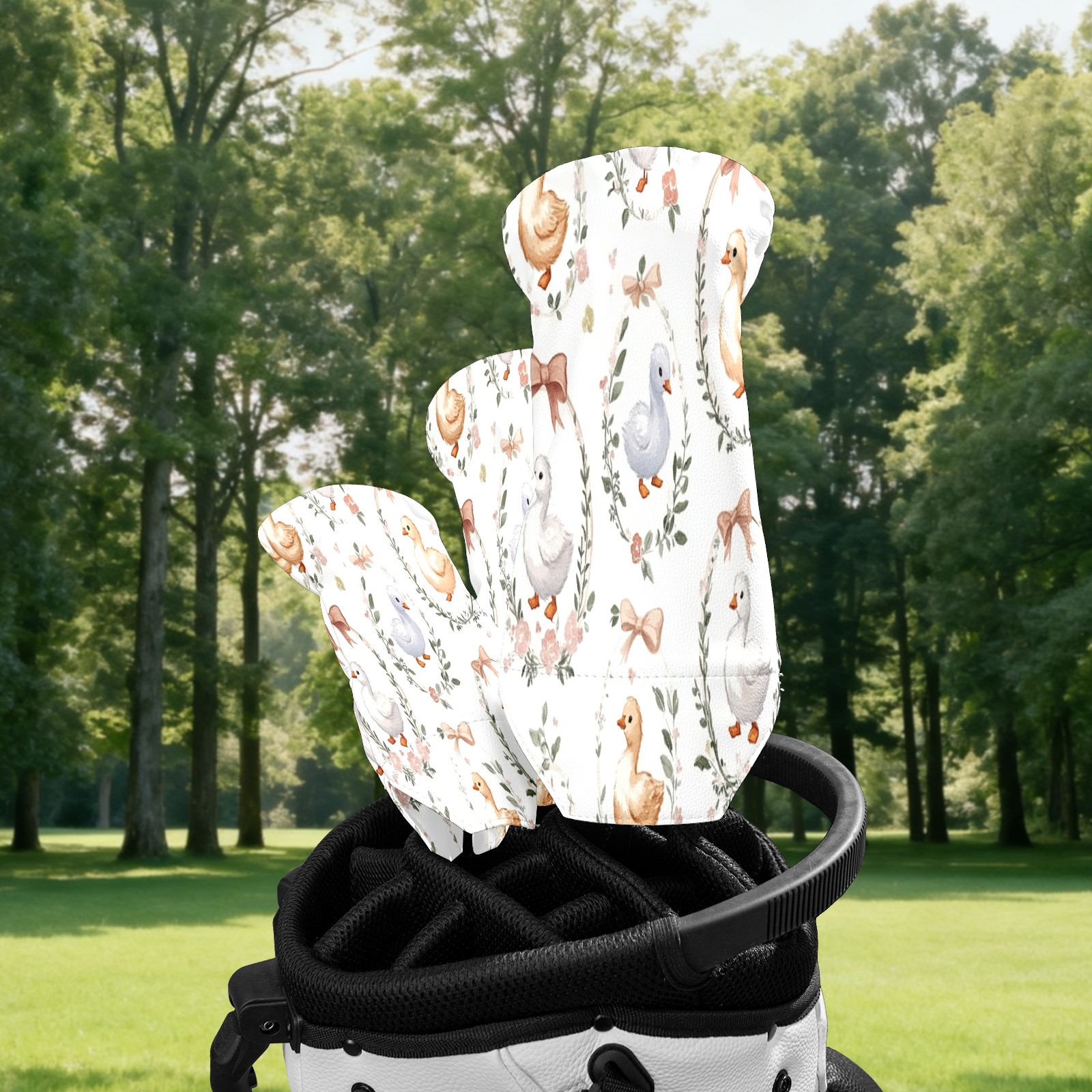 Golf Club Head Covers for Driver Hybrid and Fairway Woods, Waterproof Leather Headcovers for Golf Clubs, Ideal Golf Accessories Gift for Men Women (Geese)