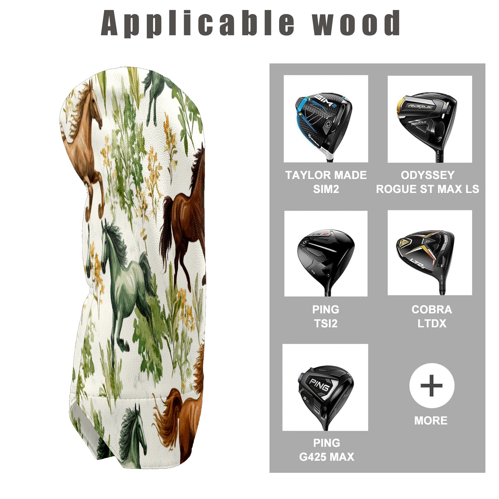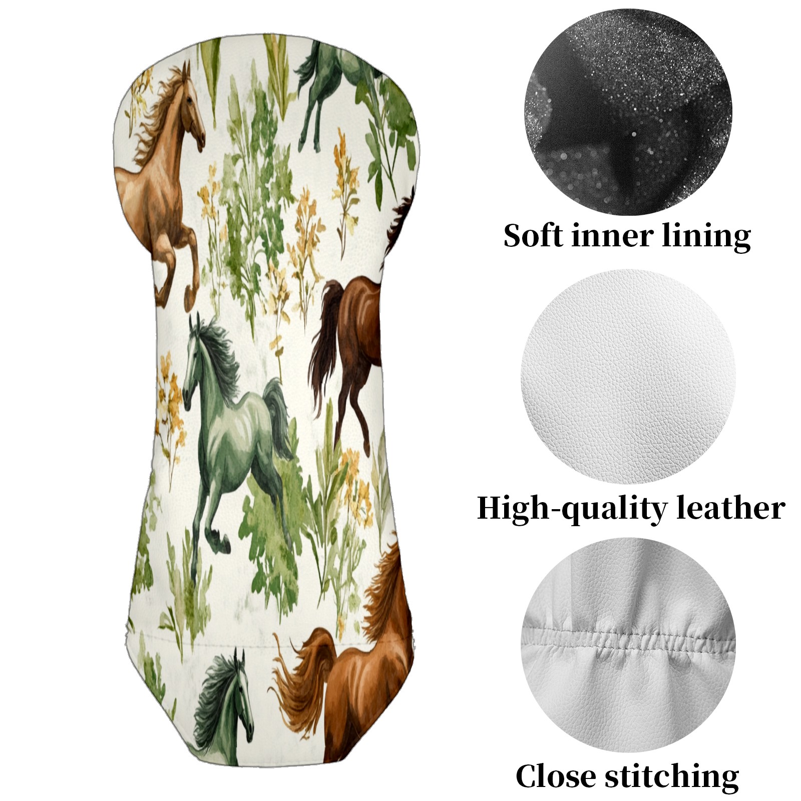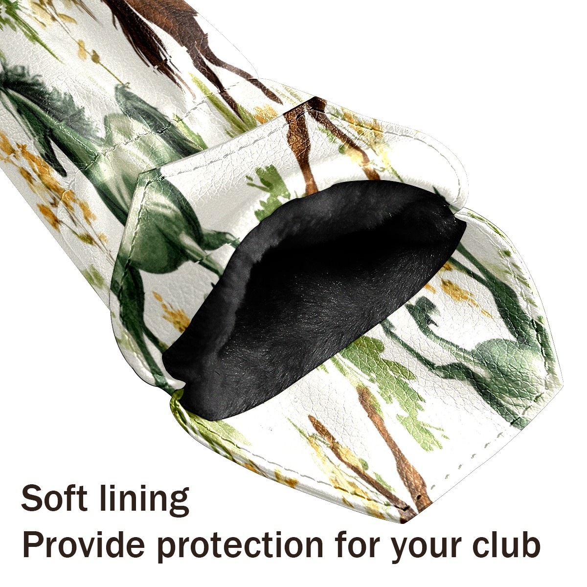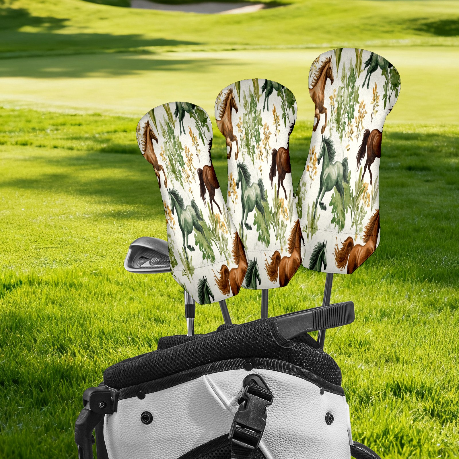 Golf Club Head Covers for Driver Hybrid and Fairway Woods, Waterproof Leather Headcovers for Golf Clubs, Ideal Golf Accessories Gift for Men Women (Galloping Horses)