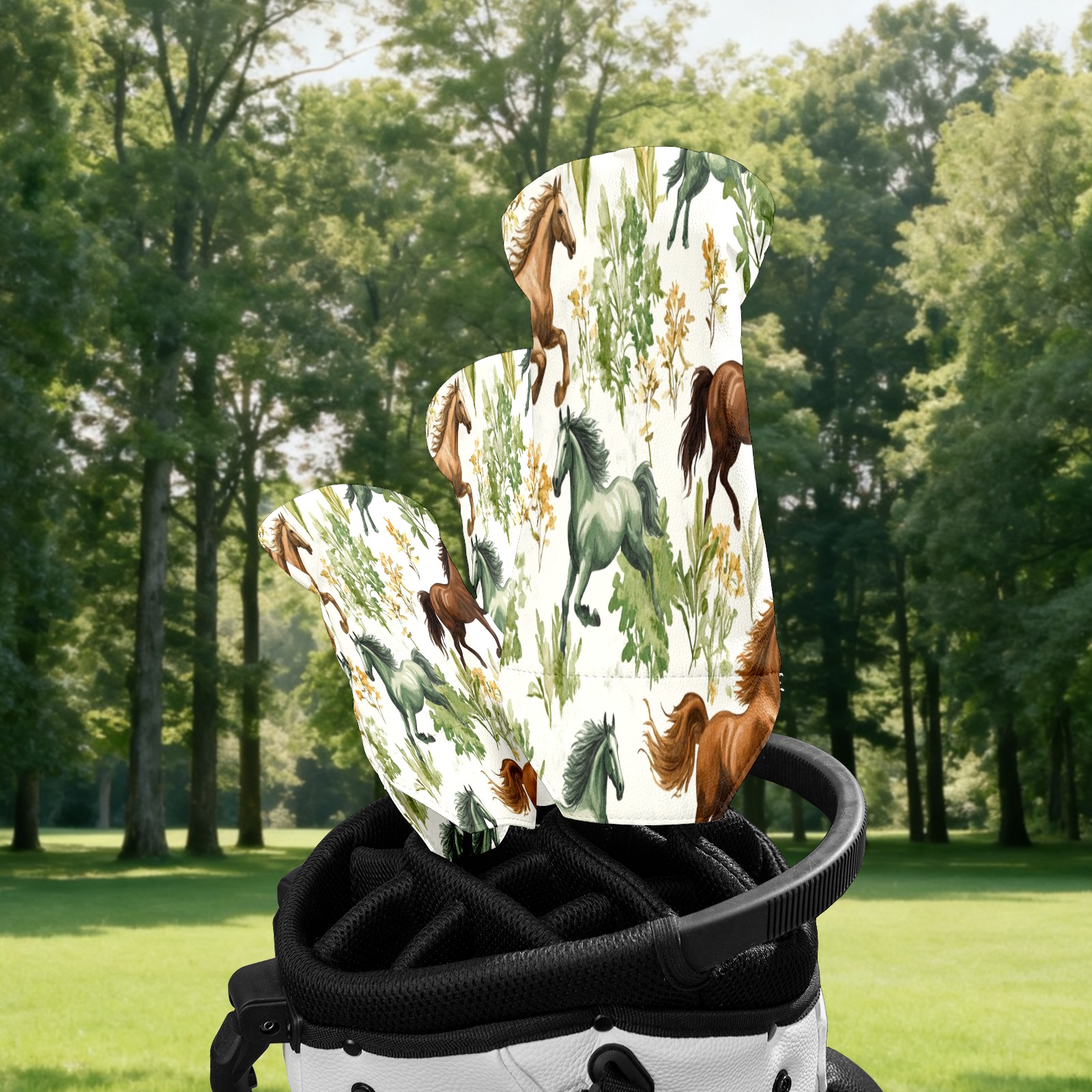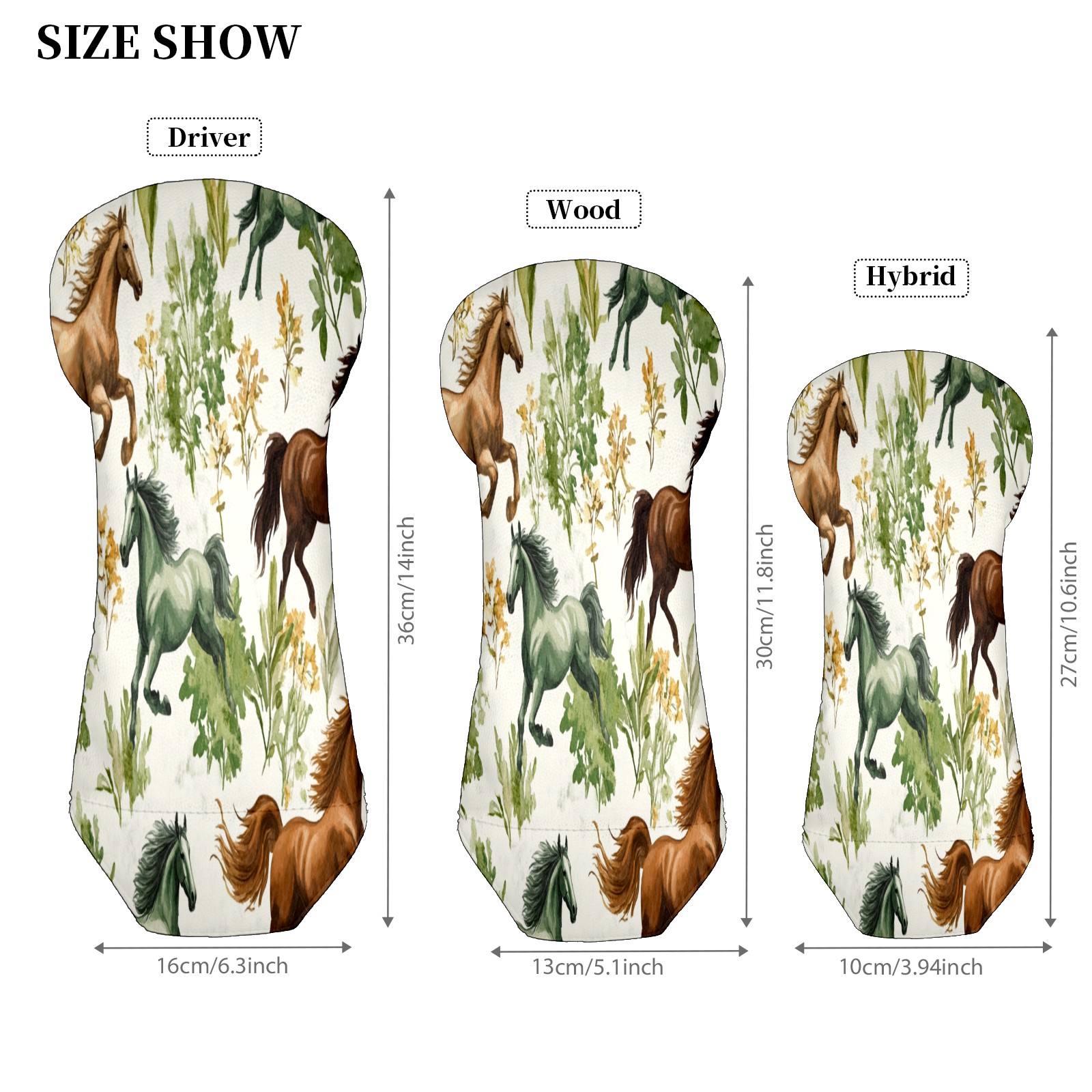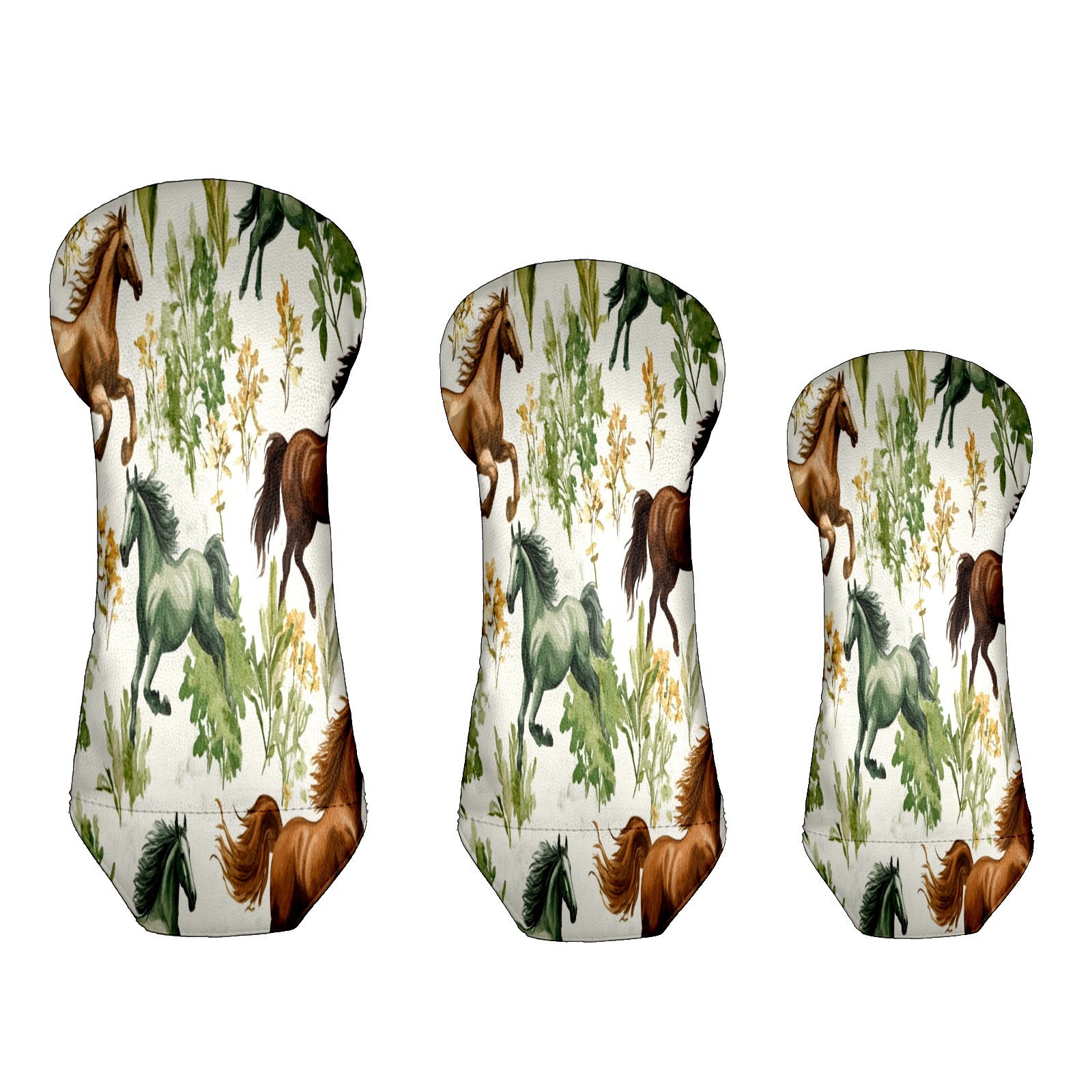 Golf Club Head Covers for Driver Hybrid and Fairway Woods, Waterproof Leather Headcovers for Golf Clubs, Ideal Golf Accessories Gift for Men Women (Galloping Horses)