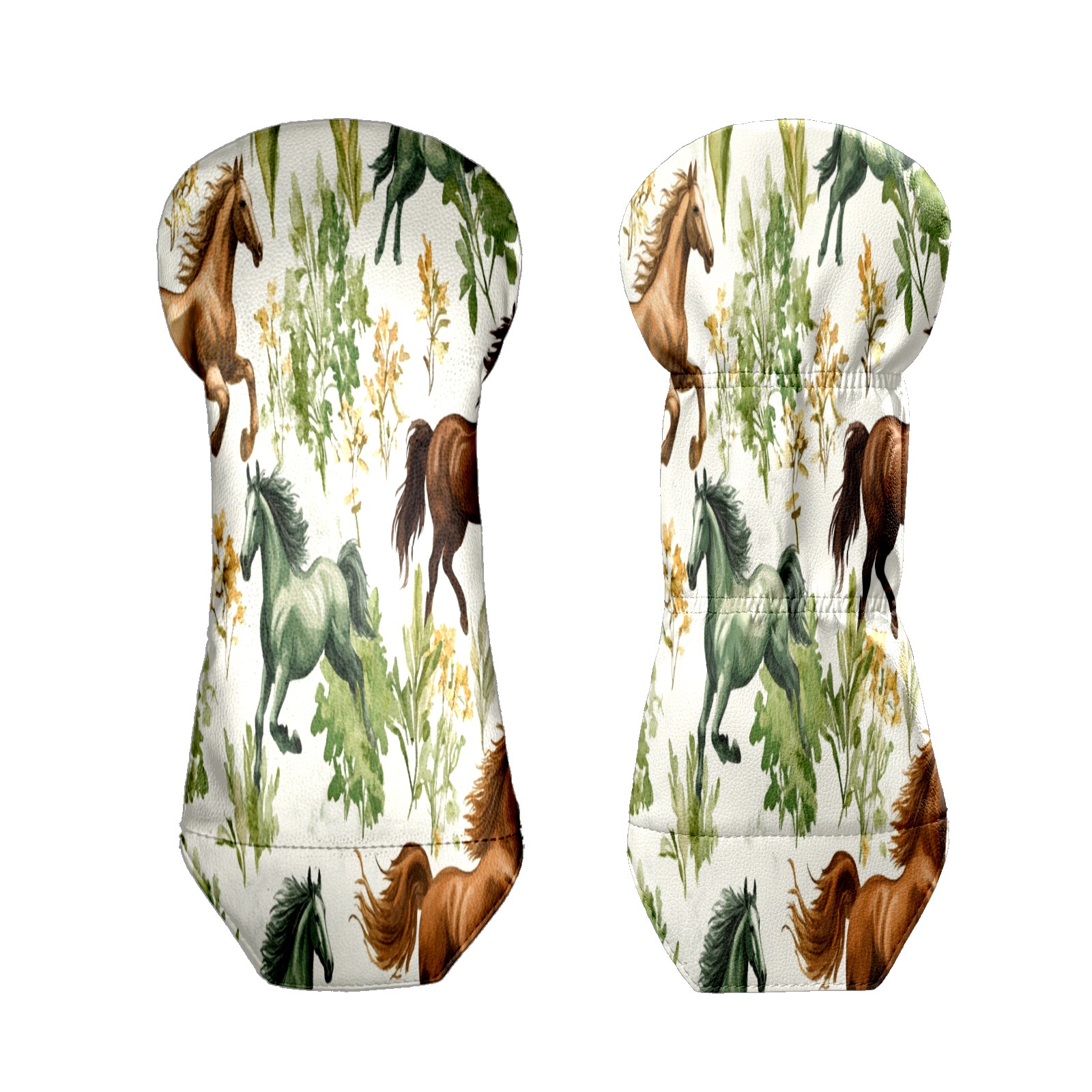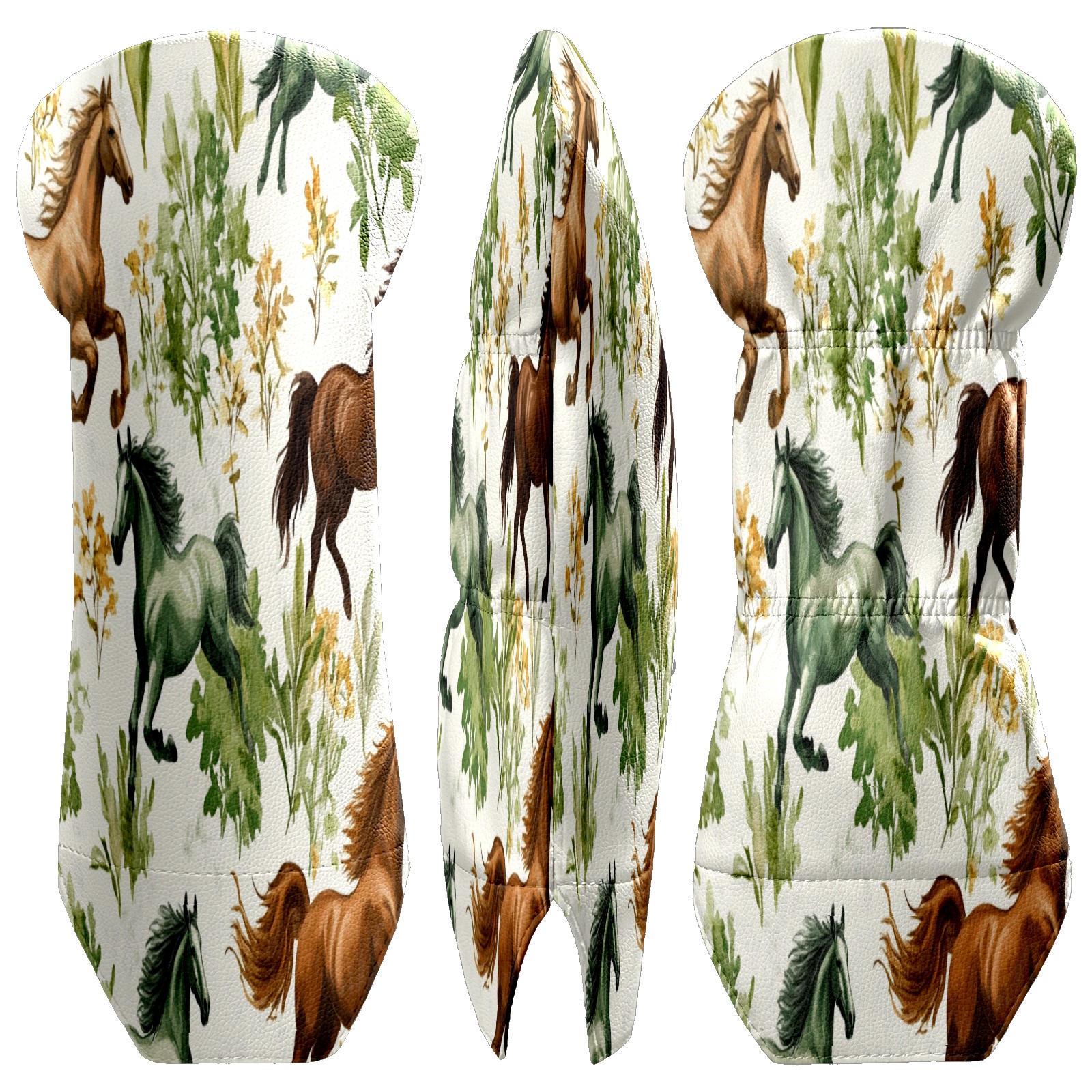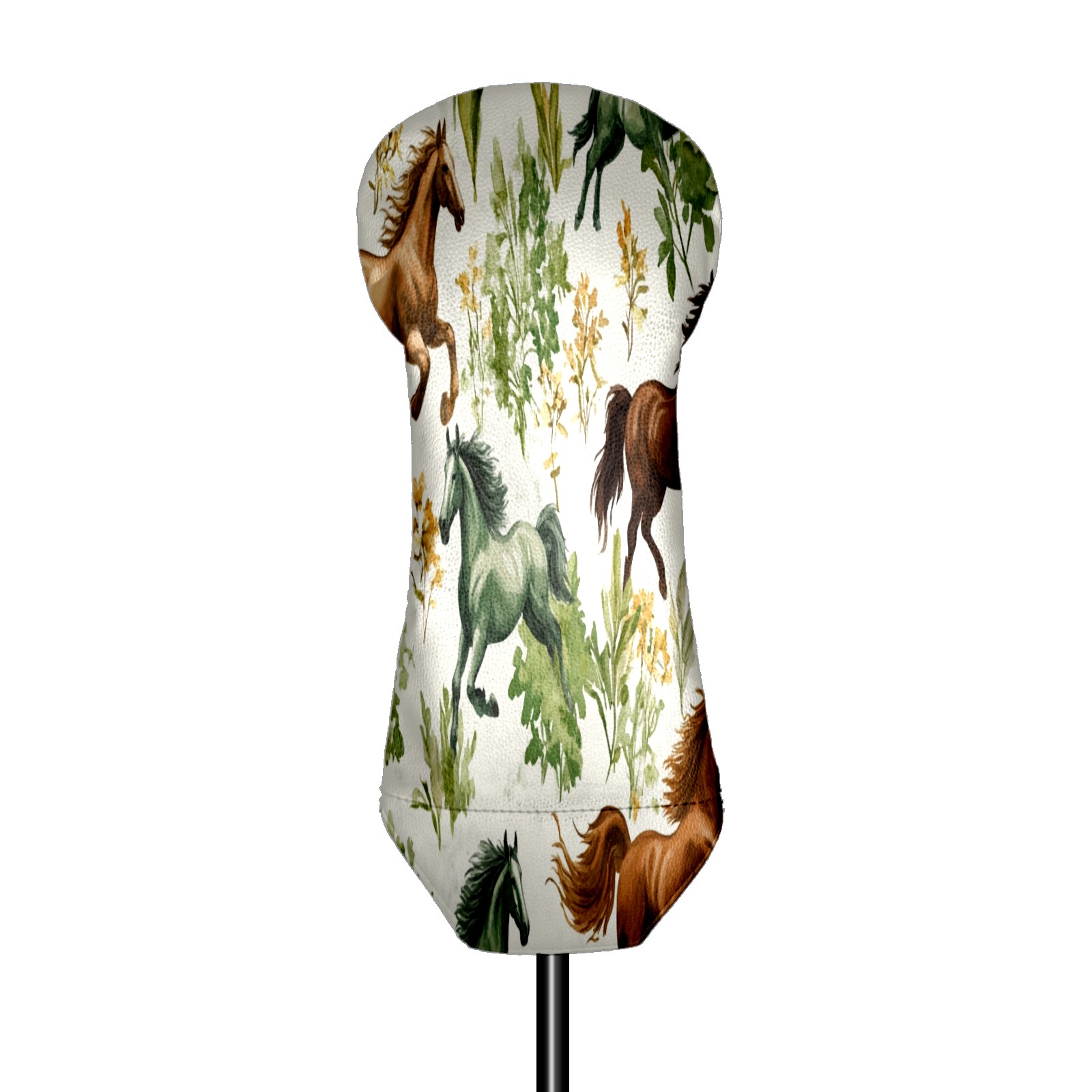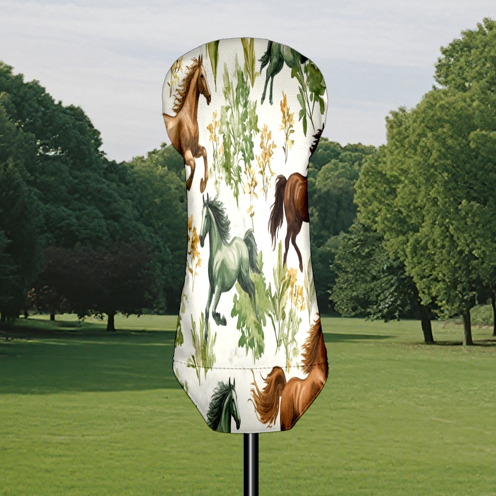 Golf Club Head Covers for Driver Hybrid and Fairway Woods, Waterproof Leather Headcovers for Golf Clubs, Ideal Golf Accessories Gift for Men Women (Galloping Horses)