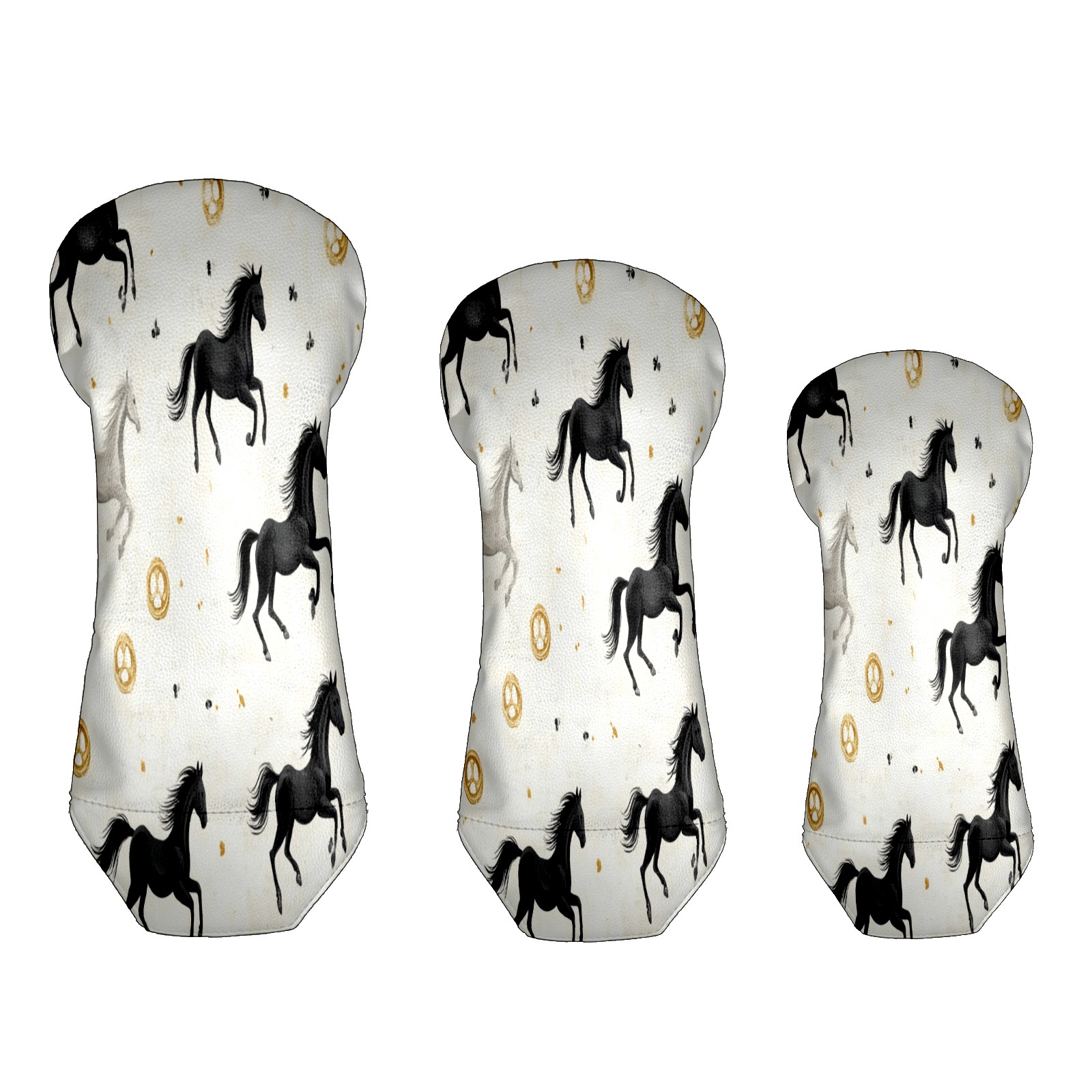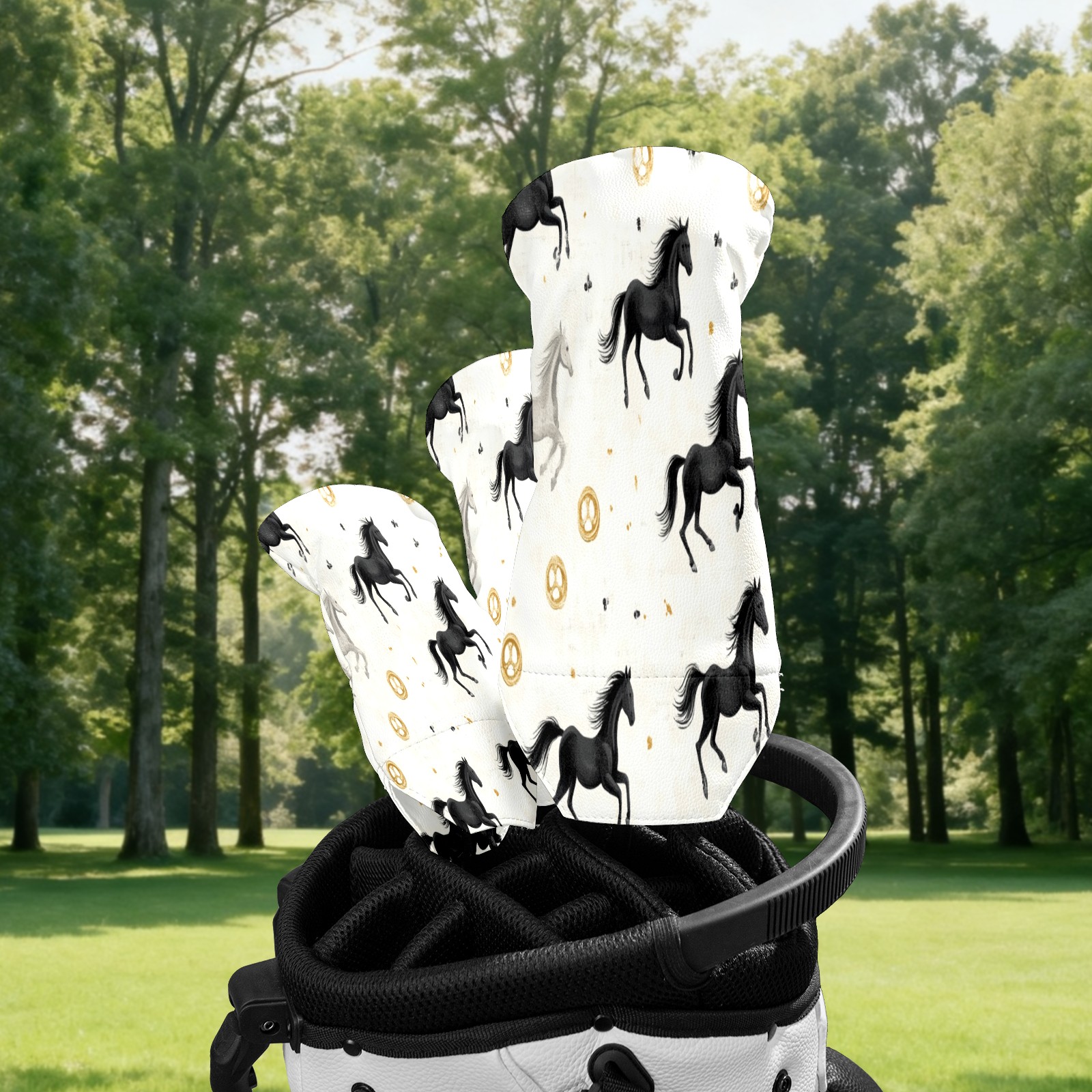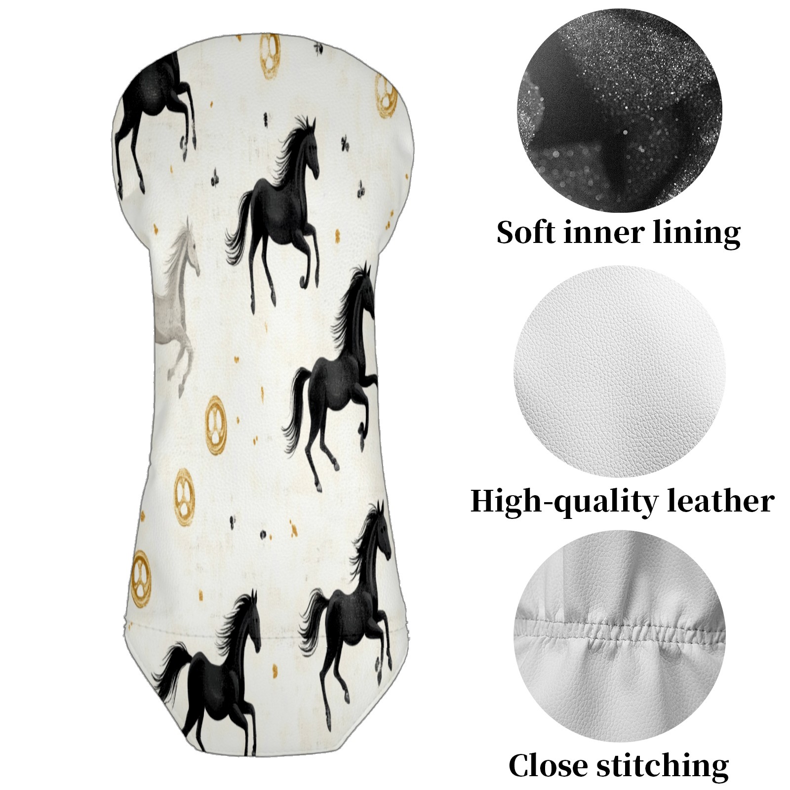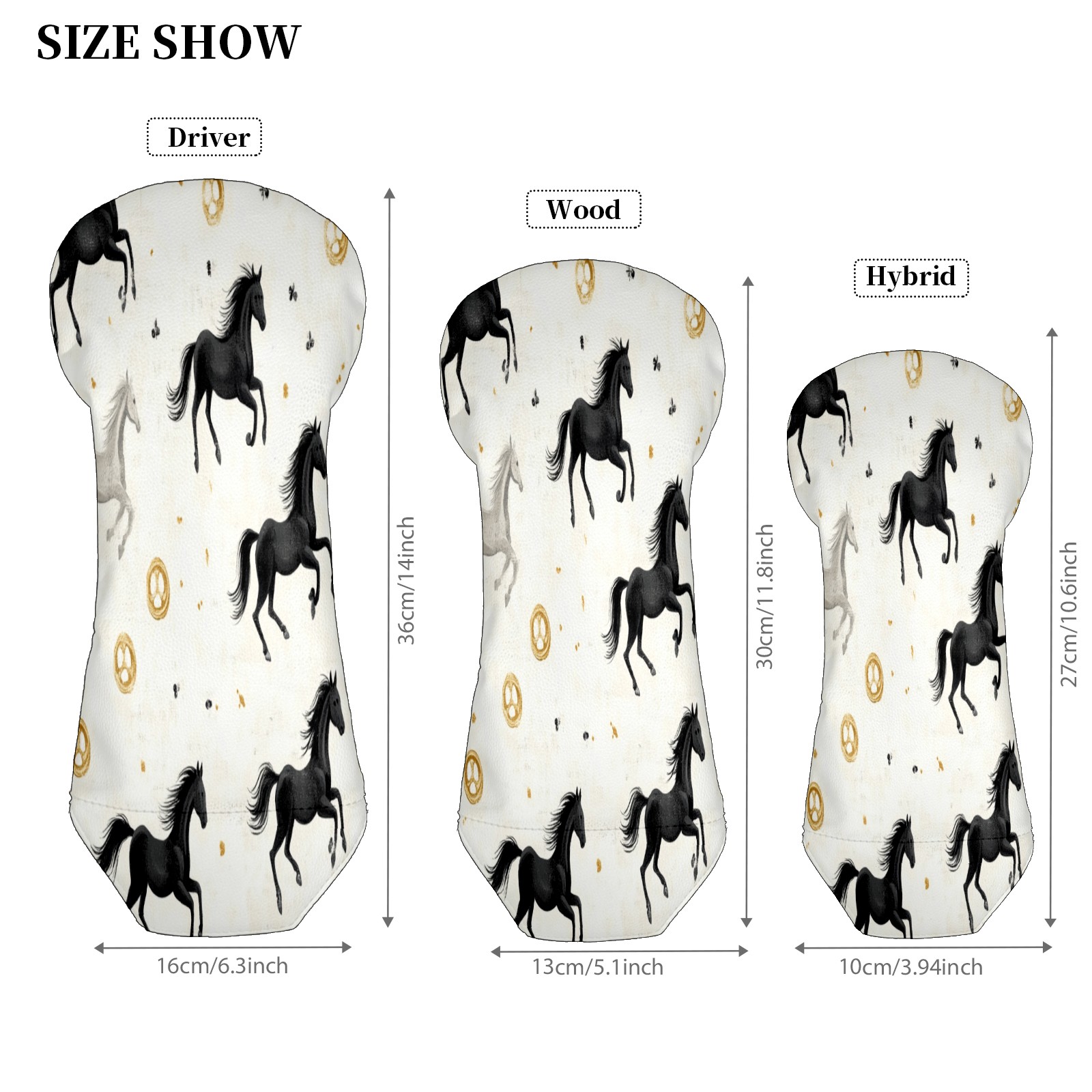 Golf Club Head Covers for Driver Hybrid and Fairway Woods, Waterproof Leather Headcovers for Golf Clubs, Ideal Golf Accessories Gift for Men Women (Horses)