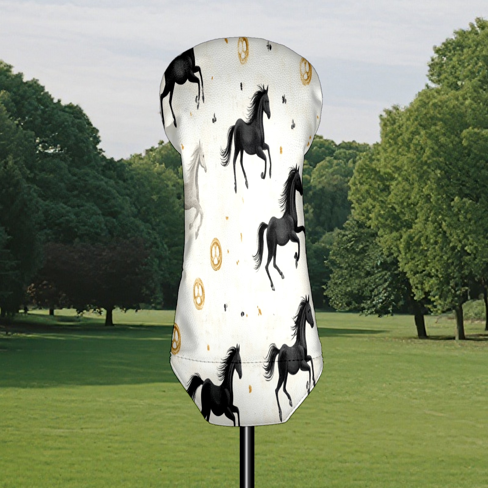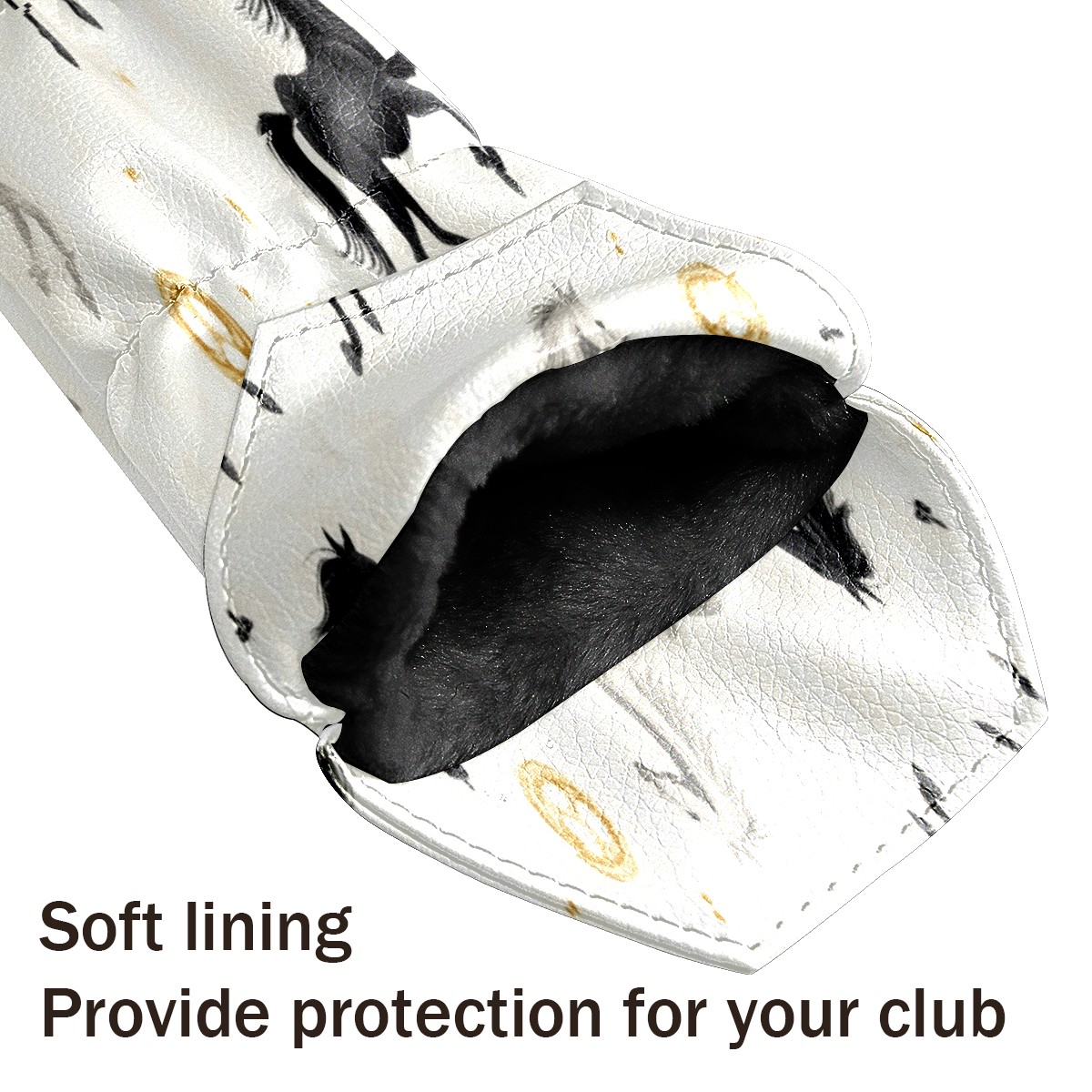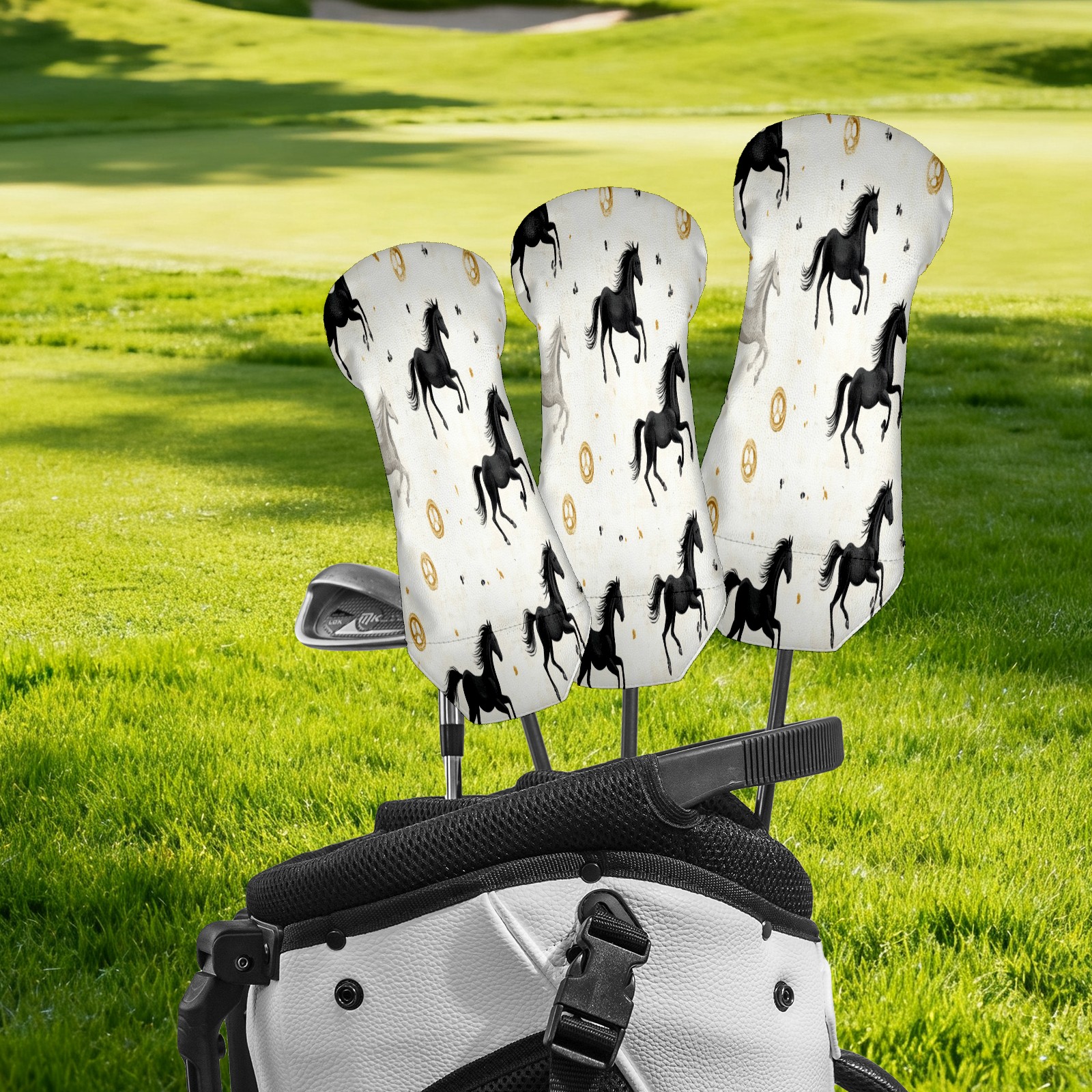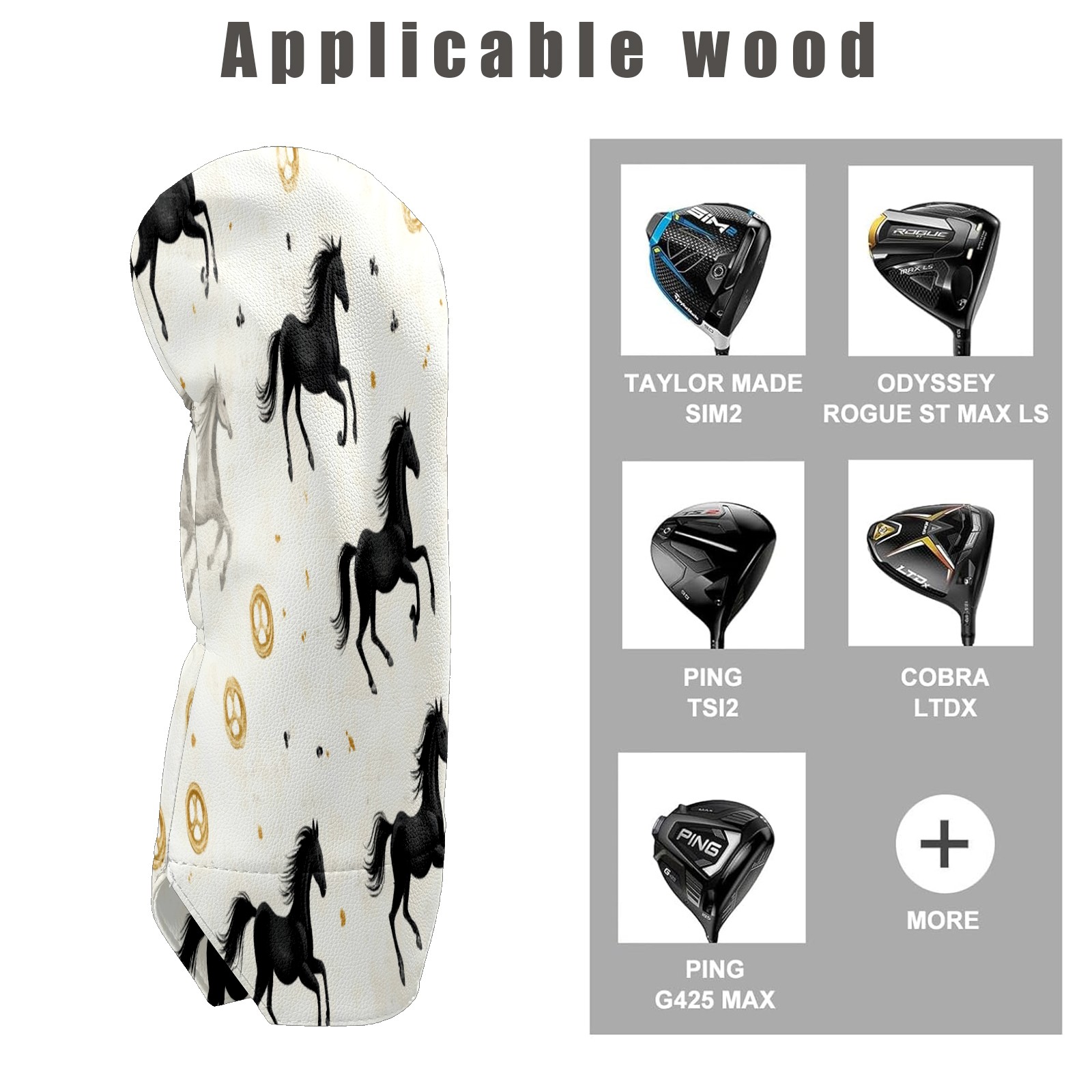 Golf Club Head Covers for Driver Hybrid and Fairway Woods, Waterproof Leather Headcovers for Golf Clubs, Ideal Golf Accessories Gift for Men Women (Horses)