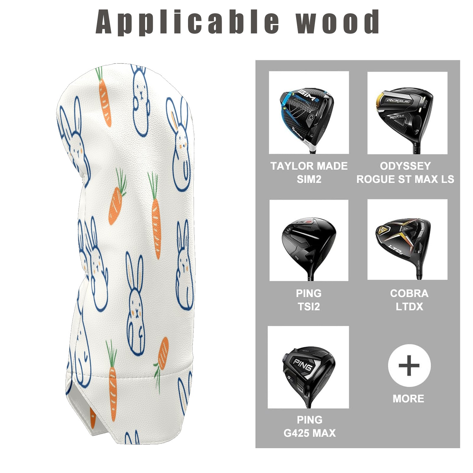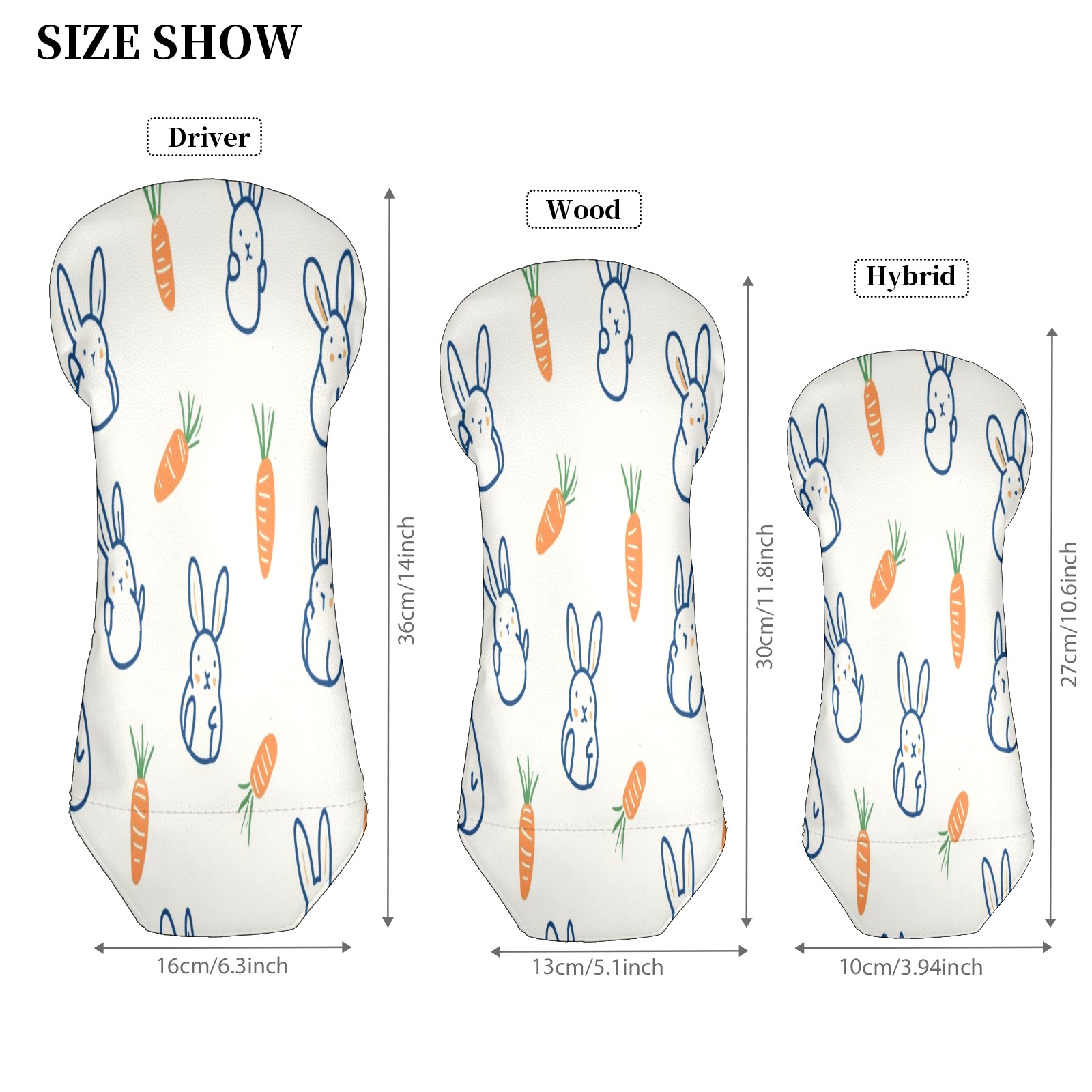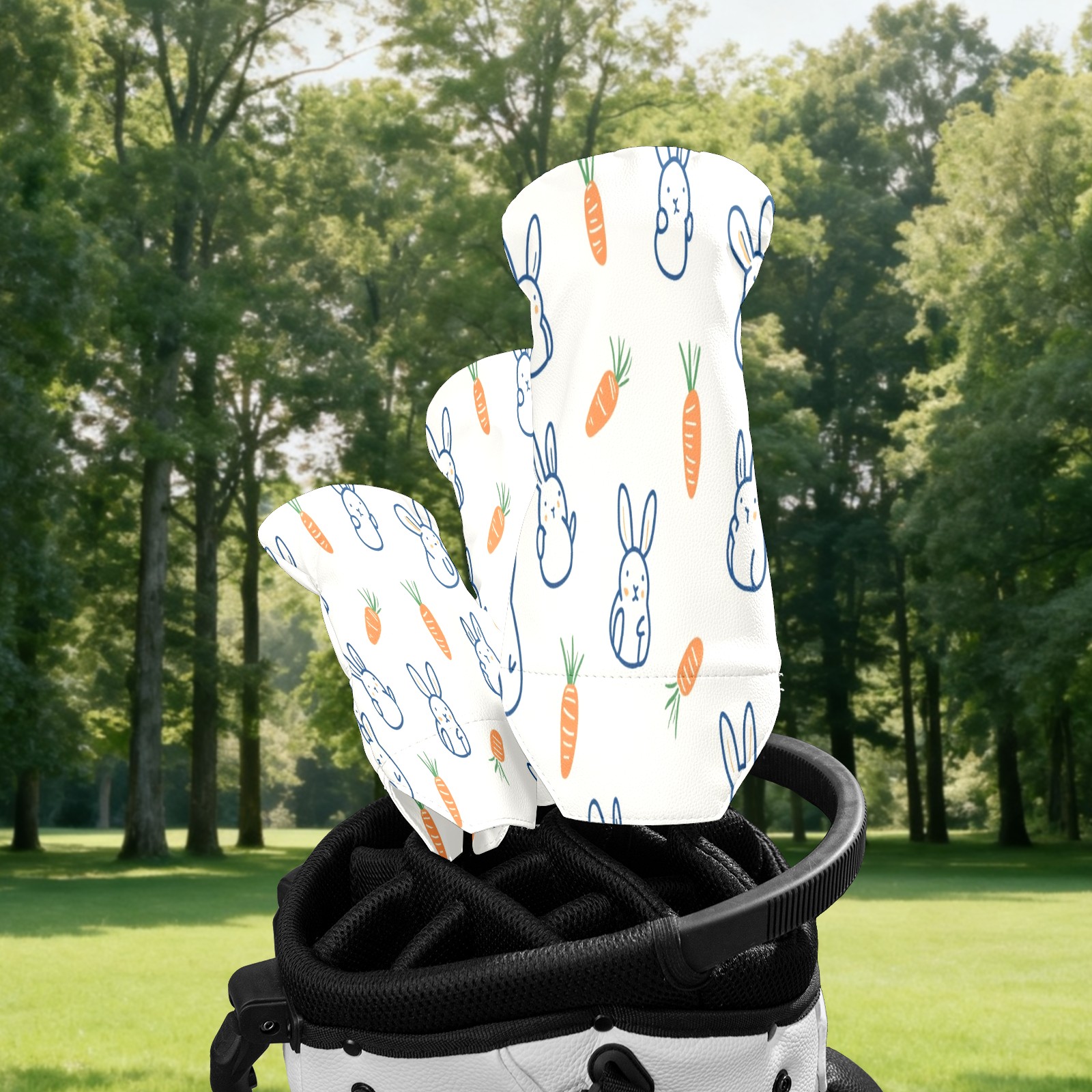 Golf Club Head Covers for Driver Hybrid and Fairway Woods, Waterproof Leather Headcovers for Golf Clubs, Ideal Golf Accessories Gift for Men Women (Rabbits And Carrots)