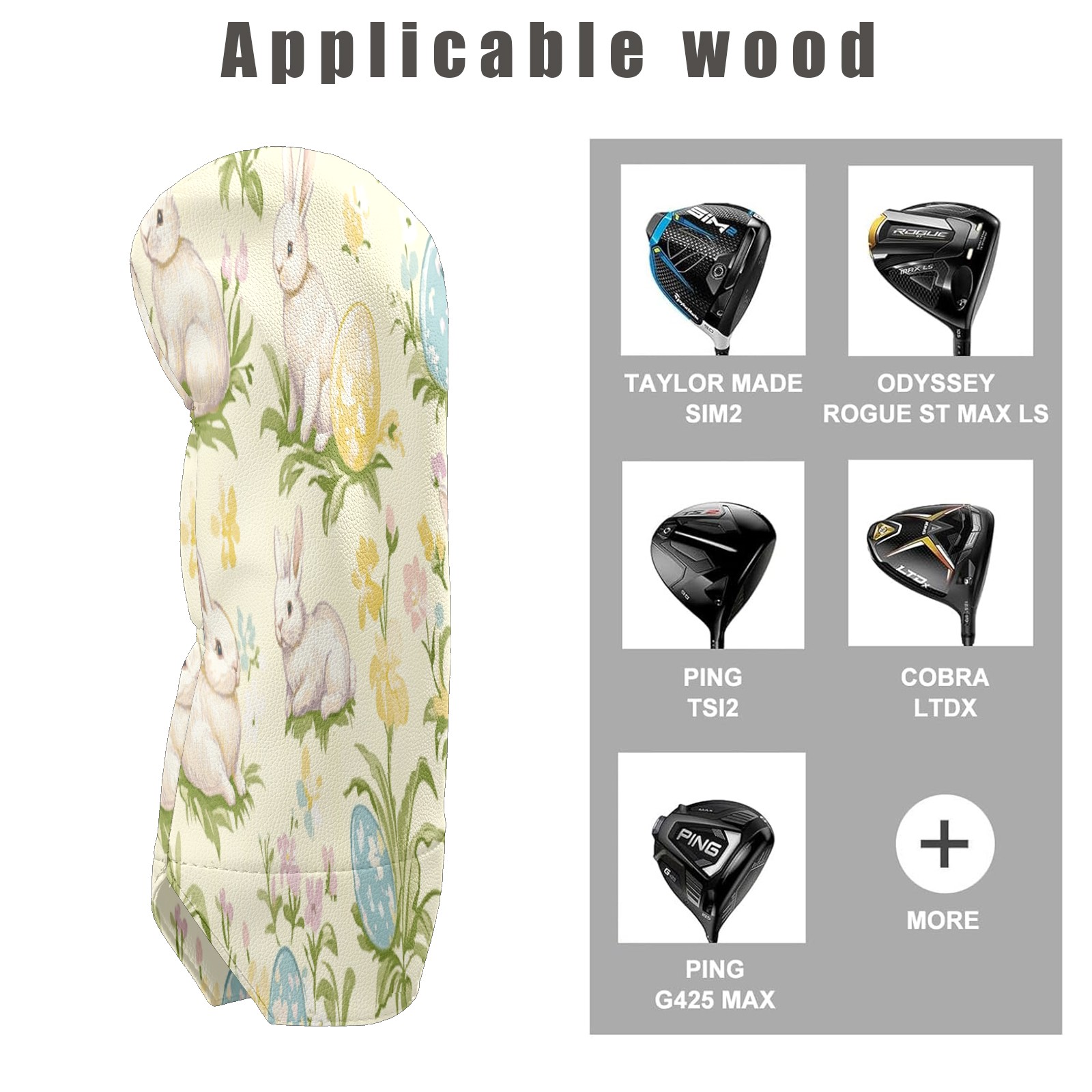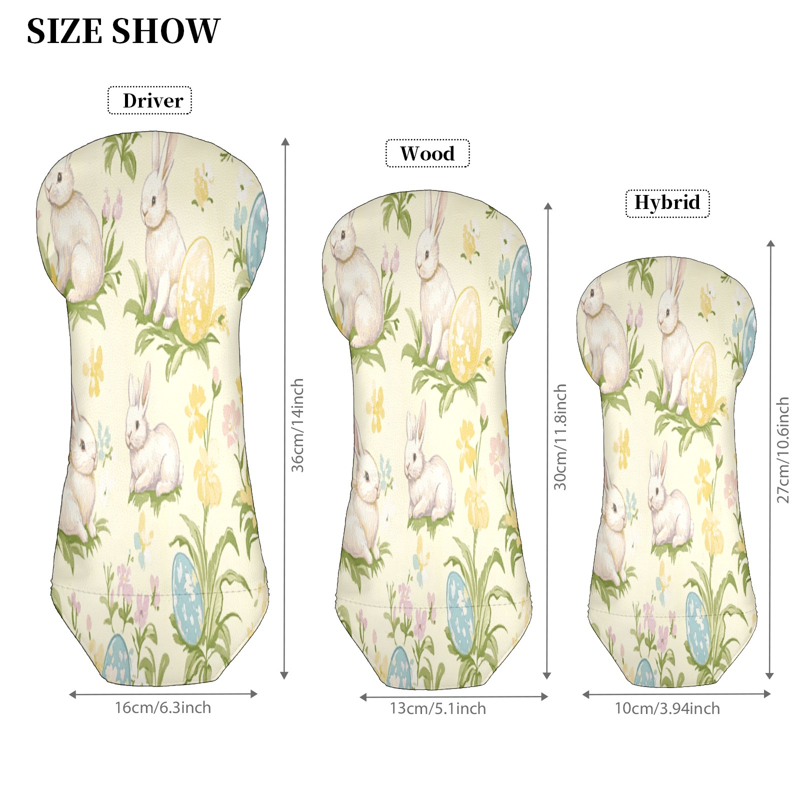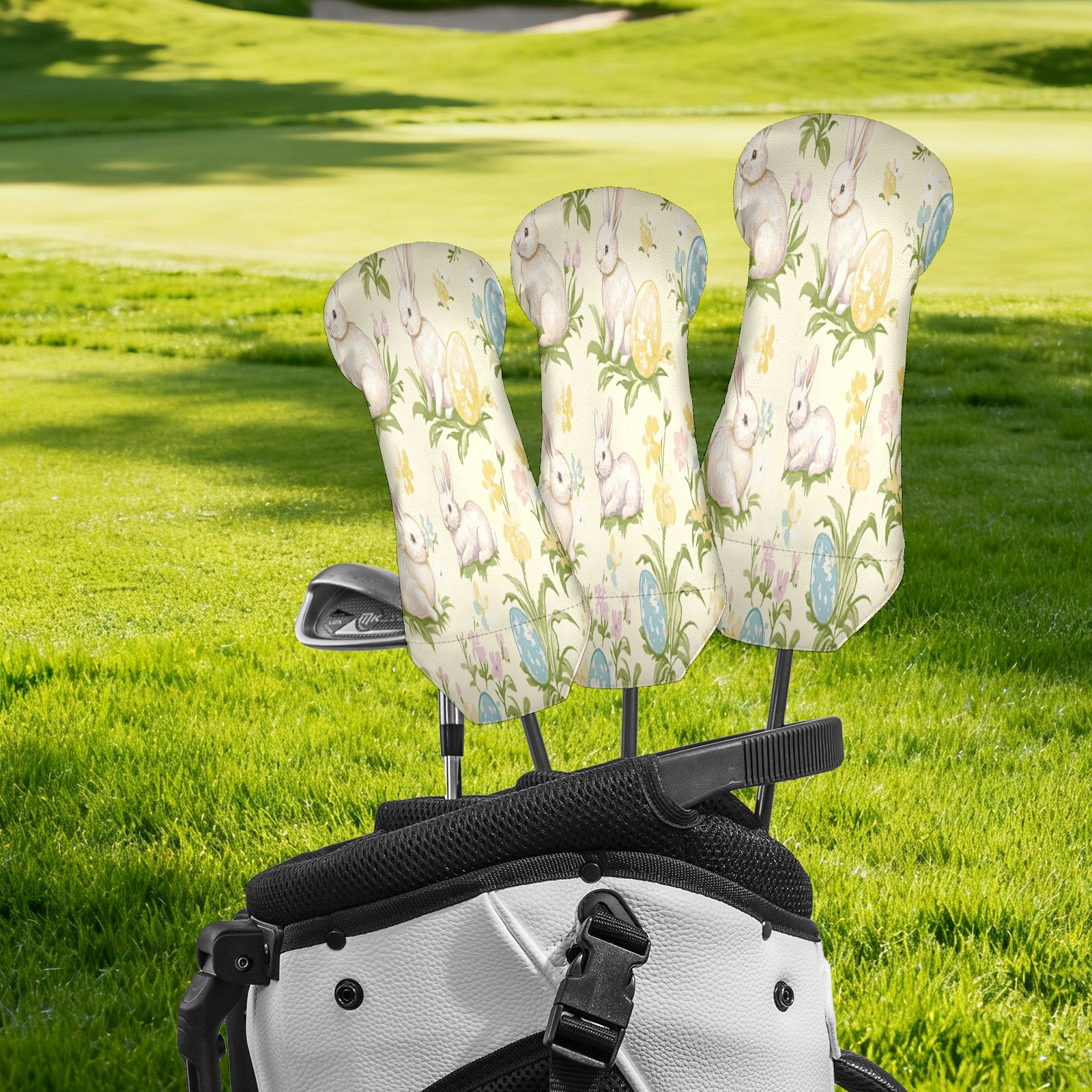 Golf Club Head Covers for Driver Hybrid and Fairway Woods, Waterproof Leather Headcovers for Golf Clubs, Ideal Golf Accessories Gift for Men Women (Easter Bunnies And Eggs)