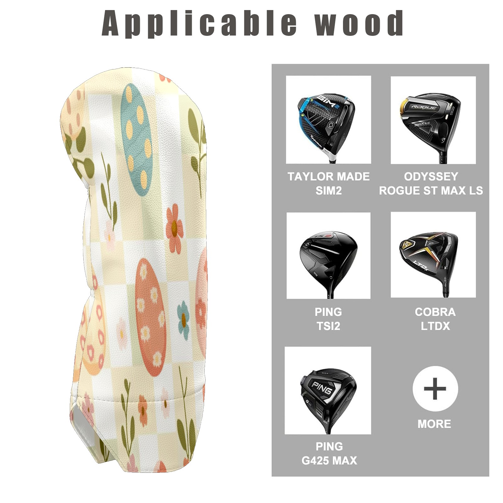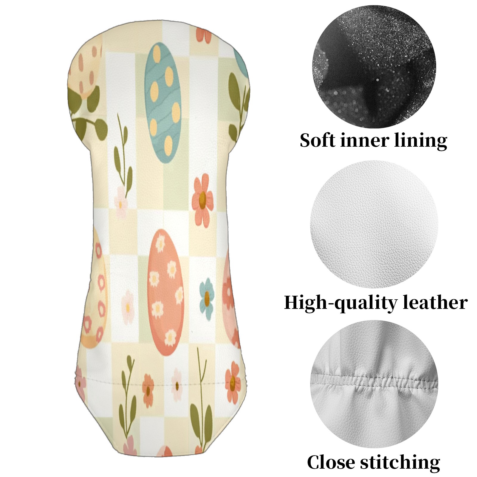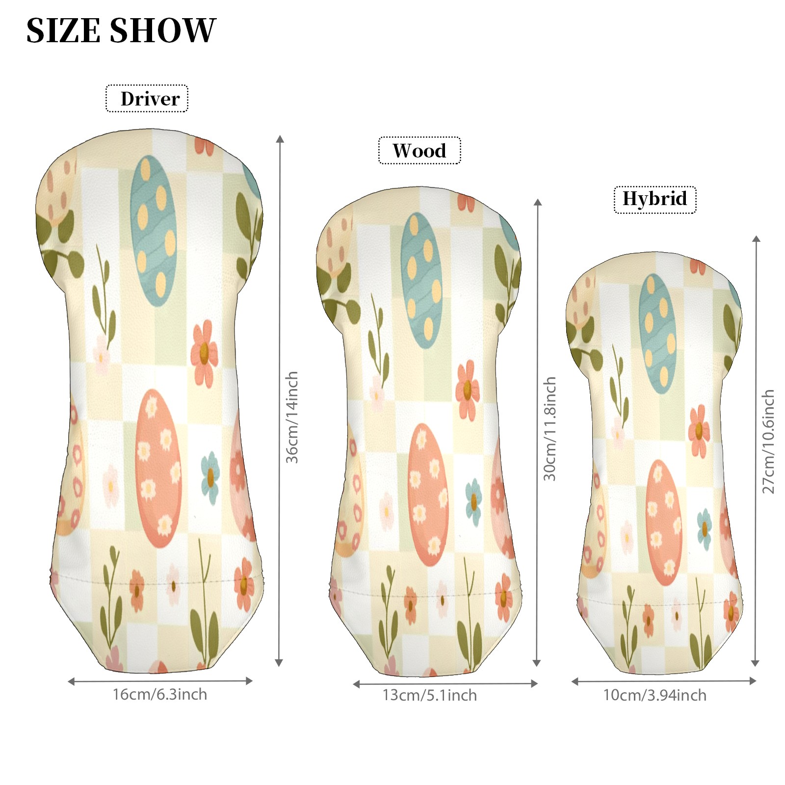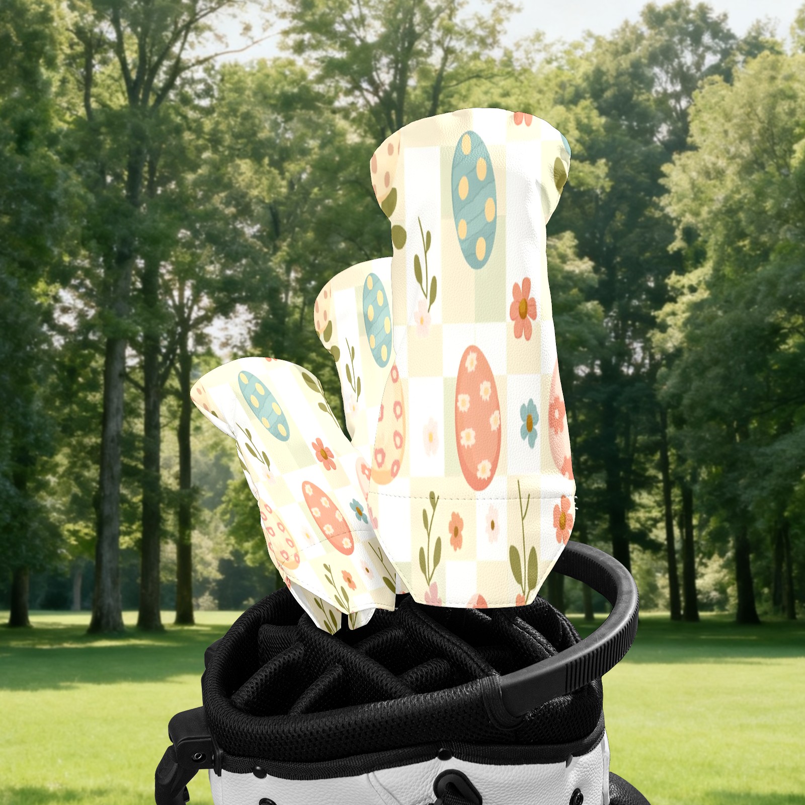 Golf Club Head Covers for Driver Hybrid and Fairway Woods, Waterproof Leather Headcovers for Golf Clubs, Ideal Golf Accessories Gift for Men Women (Cute Easter Eggs And Flowers)