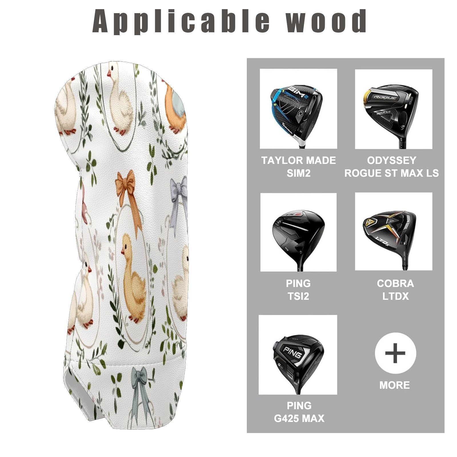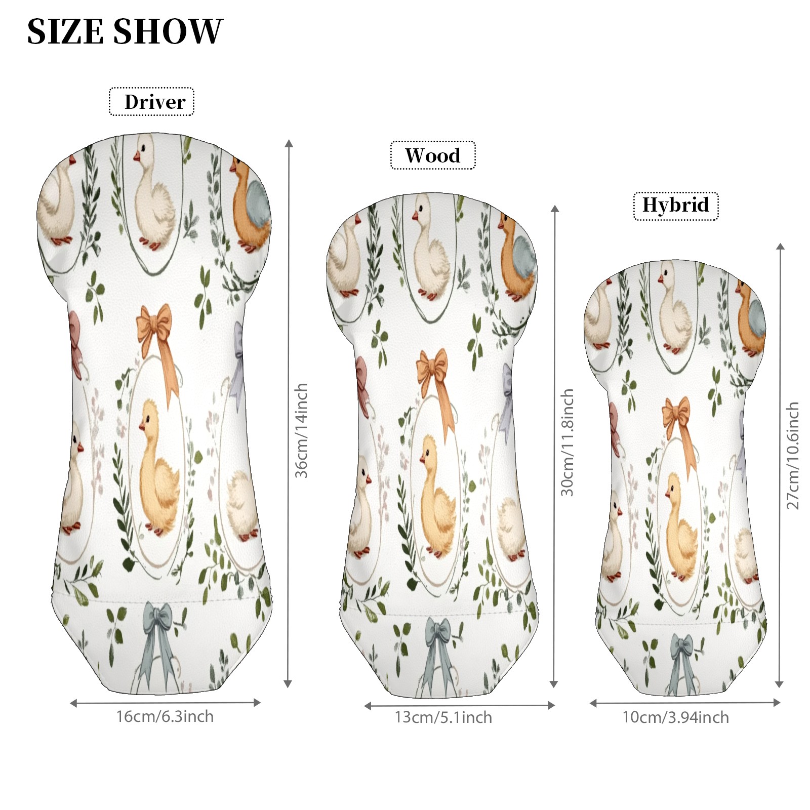 Golf Club Head Covers for Driver Hybrid and Fairway Woods, Waterproof Leather Headcovers for Golf Clubs, Ideal Golf Accessories Gift for Men Women (Cute Geese)