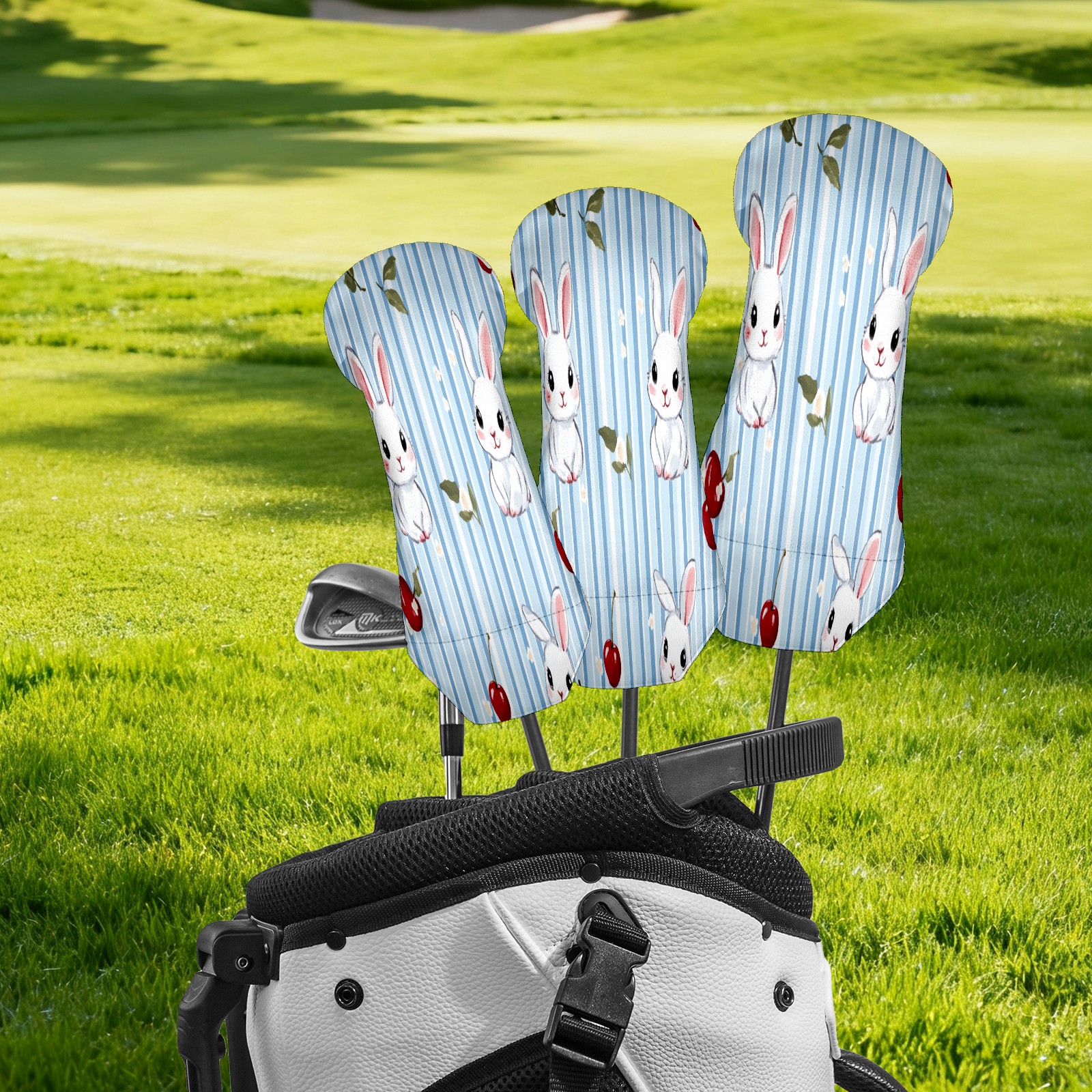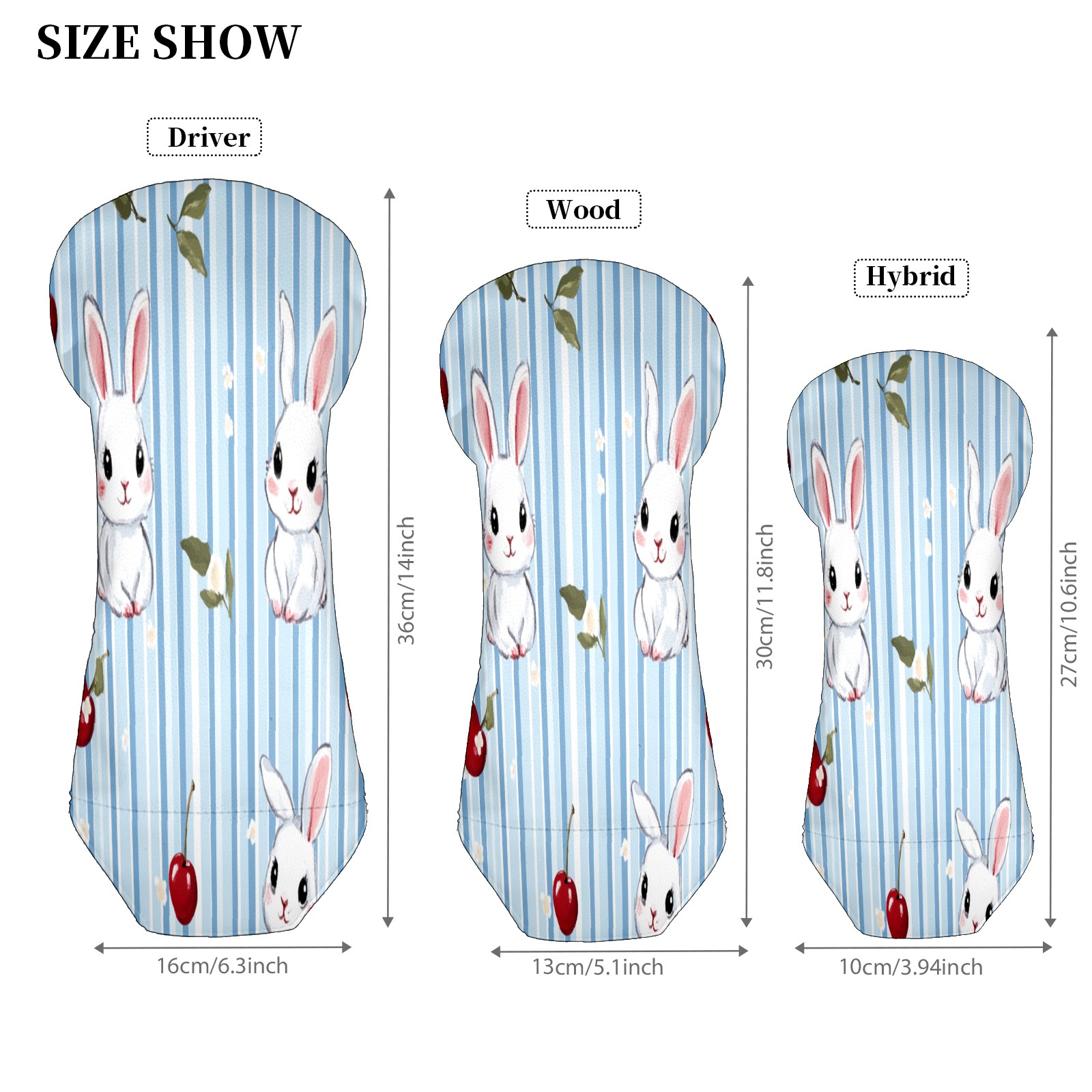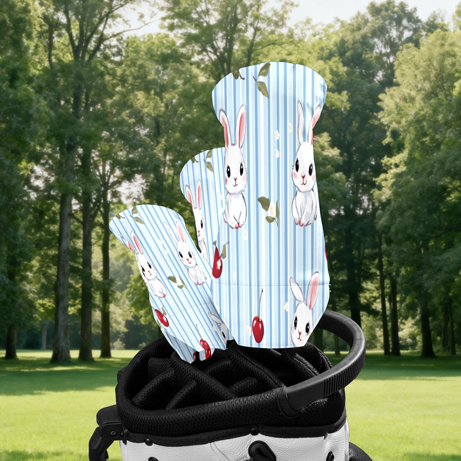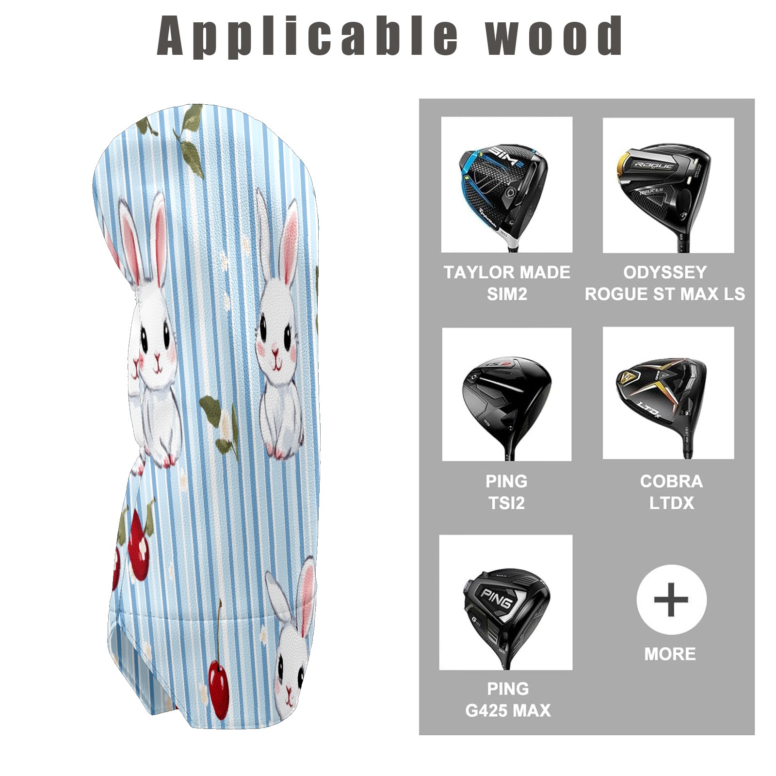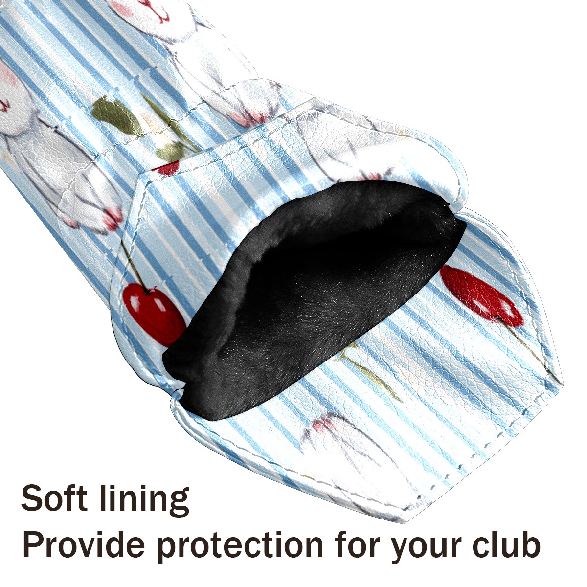 Golf Club Head Covers for Driver Hybrid and Fairway Woods, Waterproof Leather Headcovers for Golf Clubs, Ideal Golf Accessories Gift for Men Women (Bunnies And Cherries)