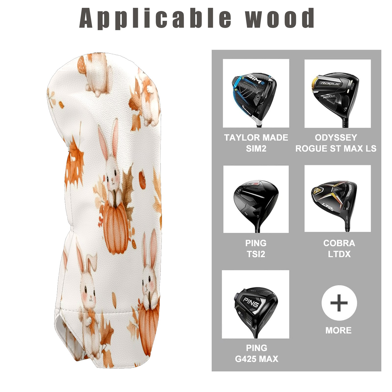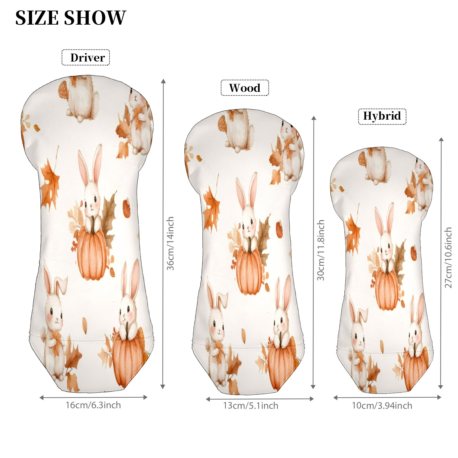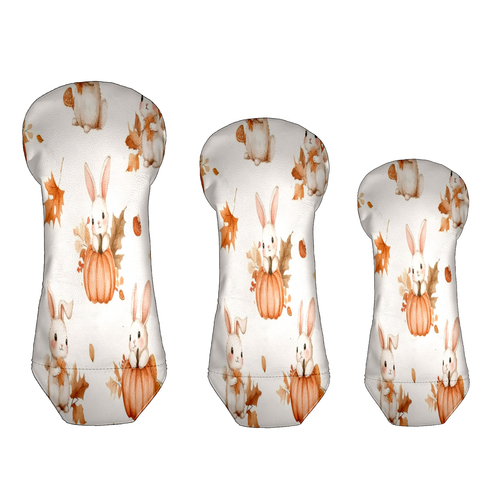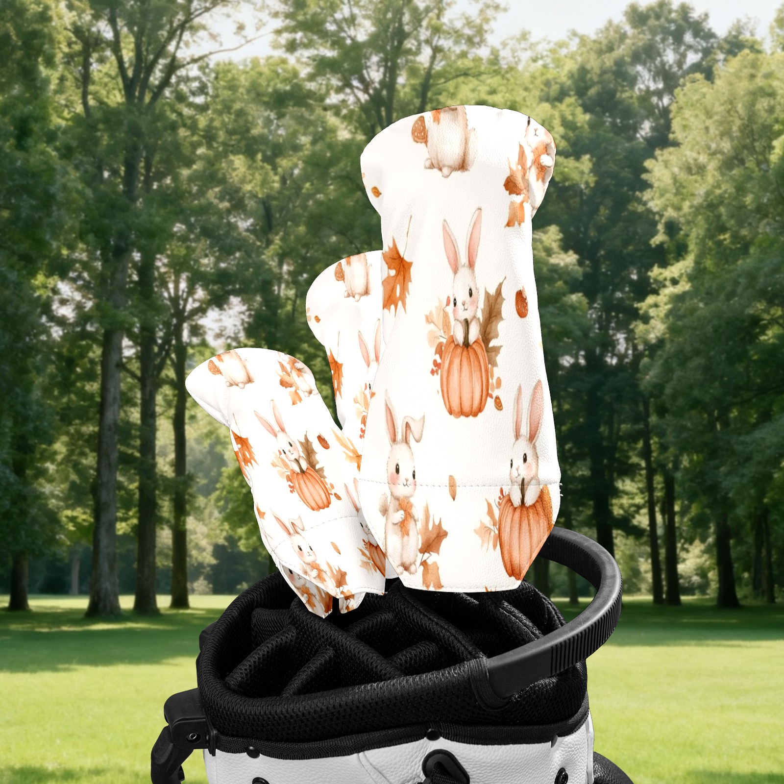 Golf Club Head Covers for Driver Hybrid and Fairway Woods, Waterproof Leather Headcovers for Golf Clubs, Ideal Golf Accessories Gift for Men Women (Bunnies And Pumpkin)