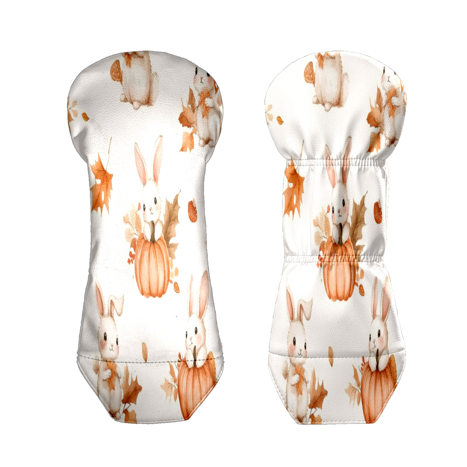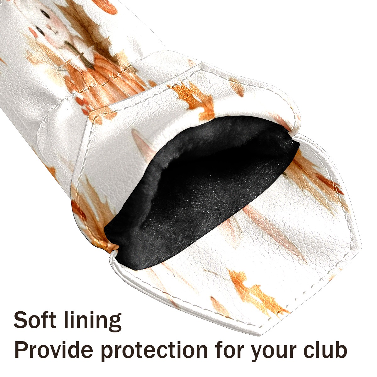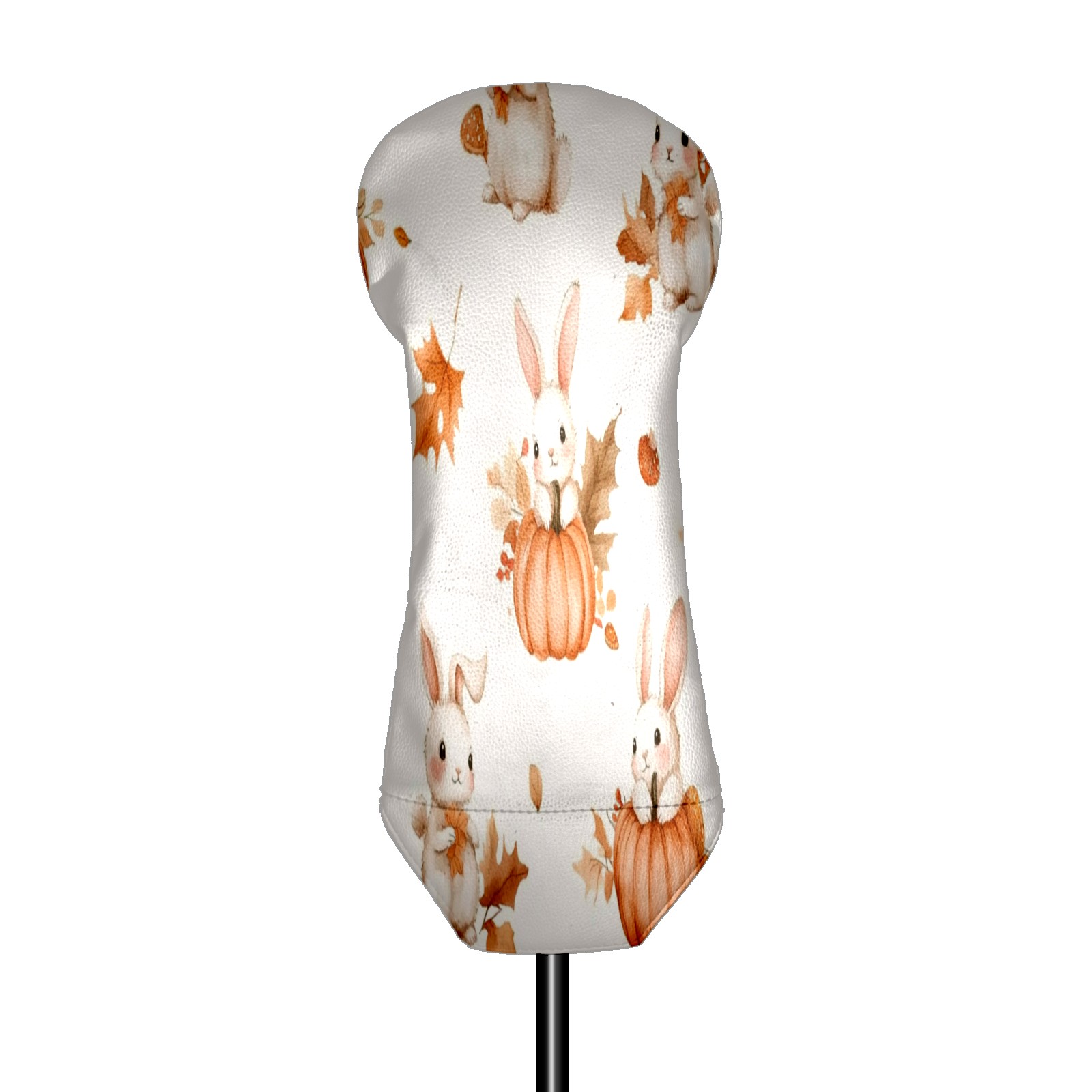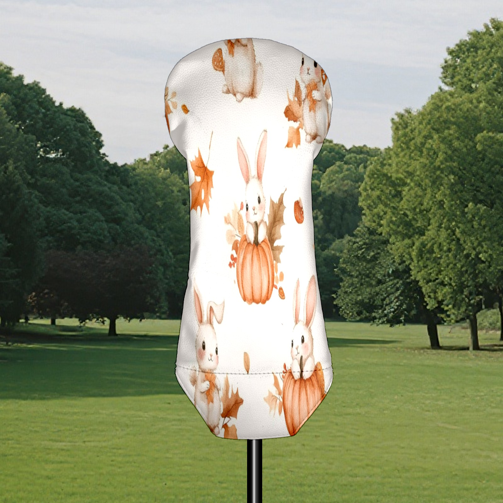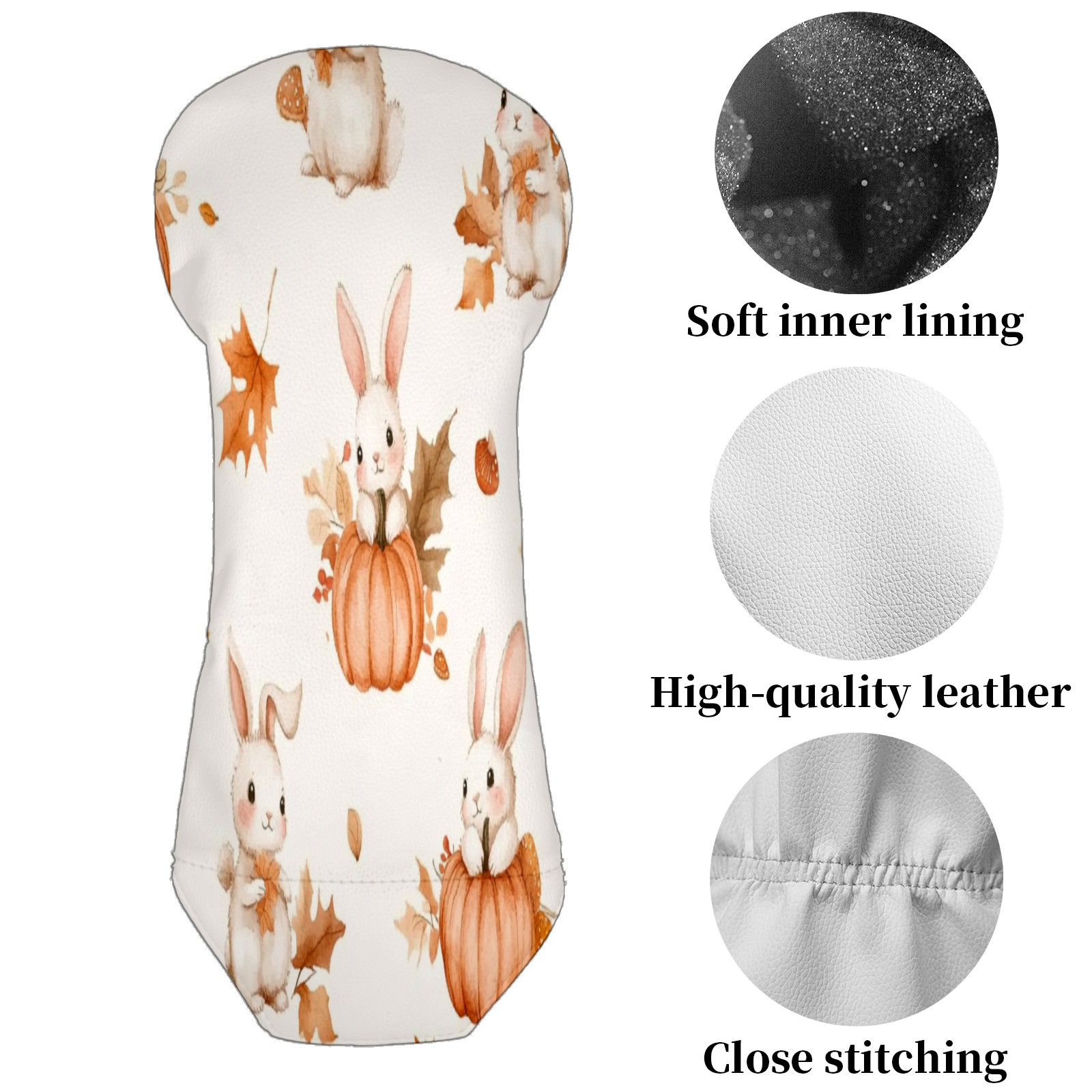 Golf Club Head Covers for Driver Hybrid and Fairway Woods, Waterproof Leather Headcovers for Golf Clubs, Ideal Golf Accessories Gift for Men Women (Bunnies And Pumpkin)