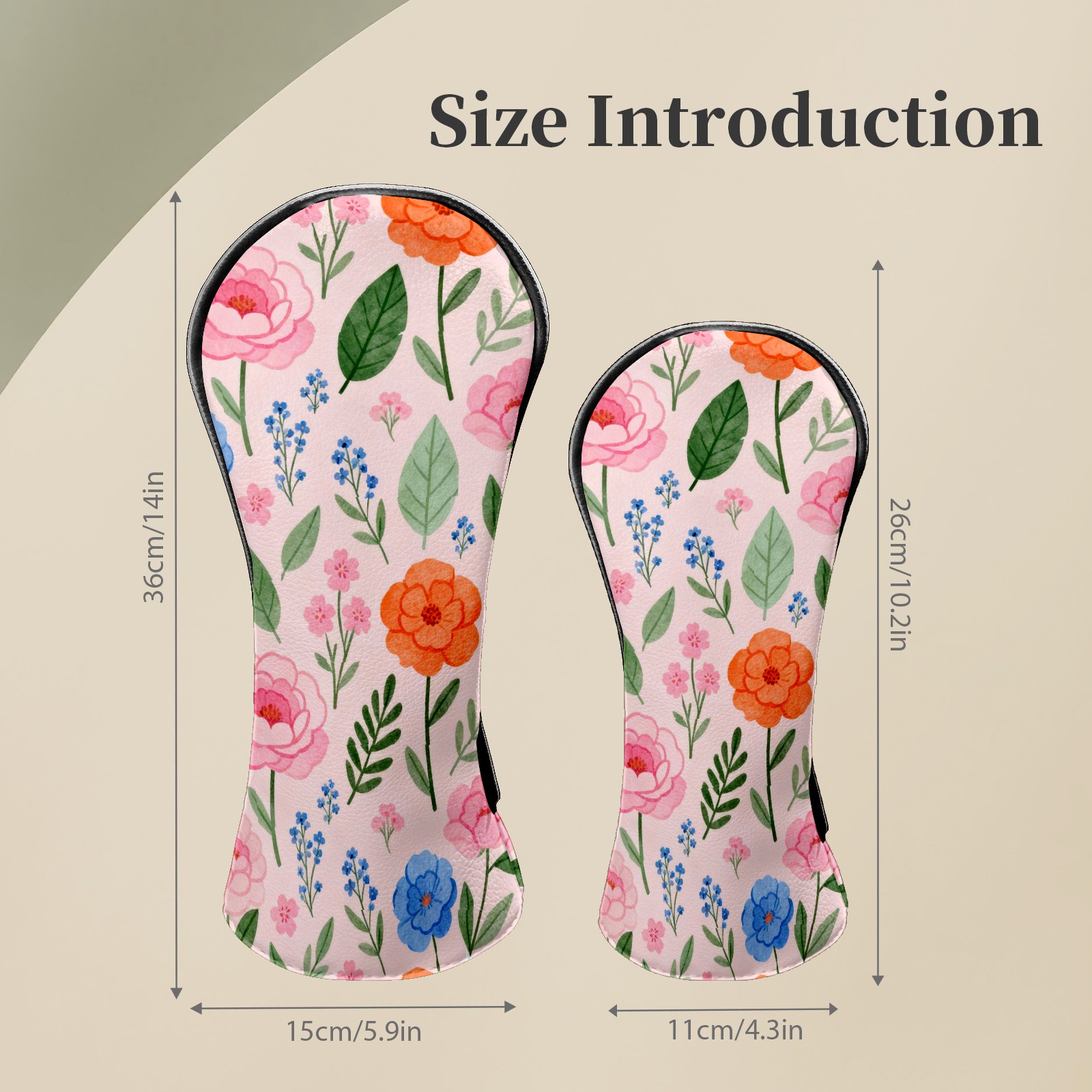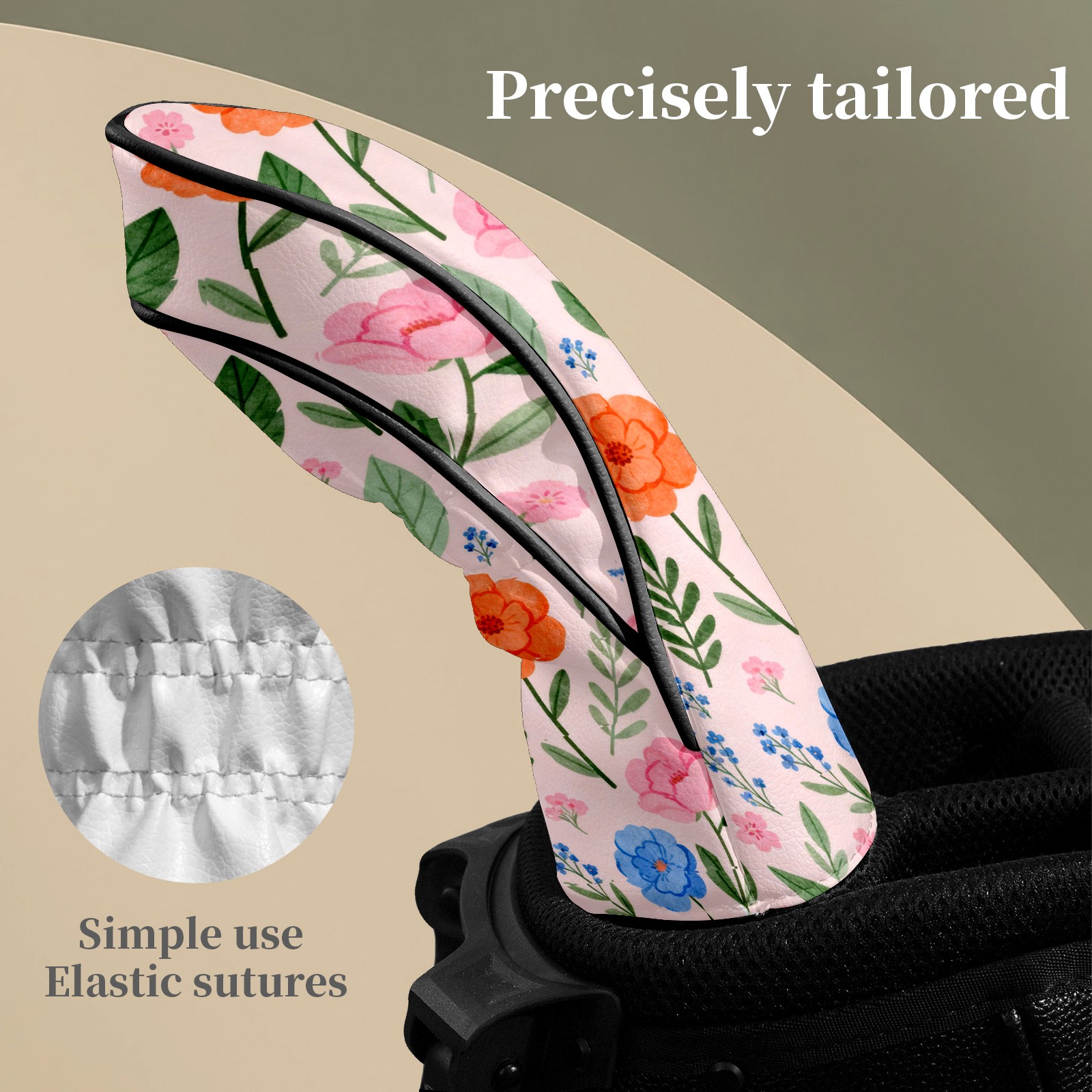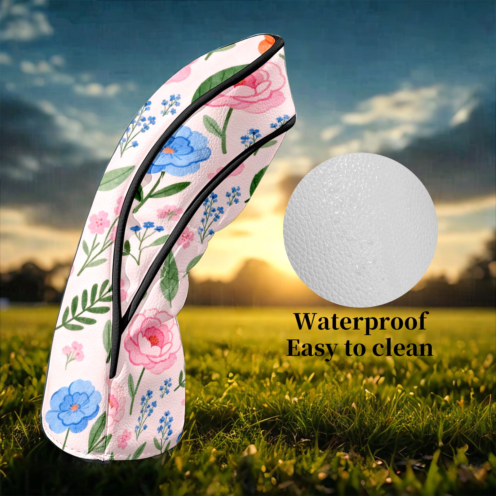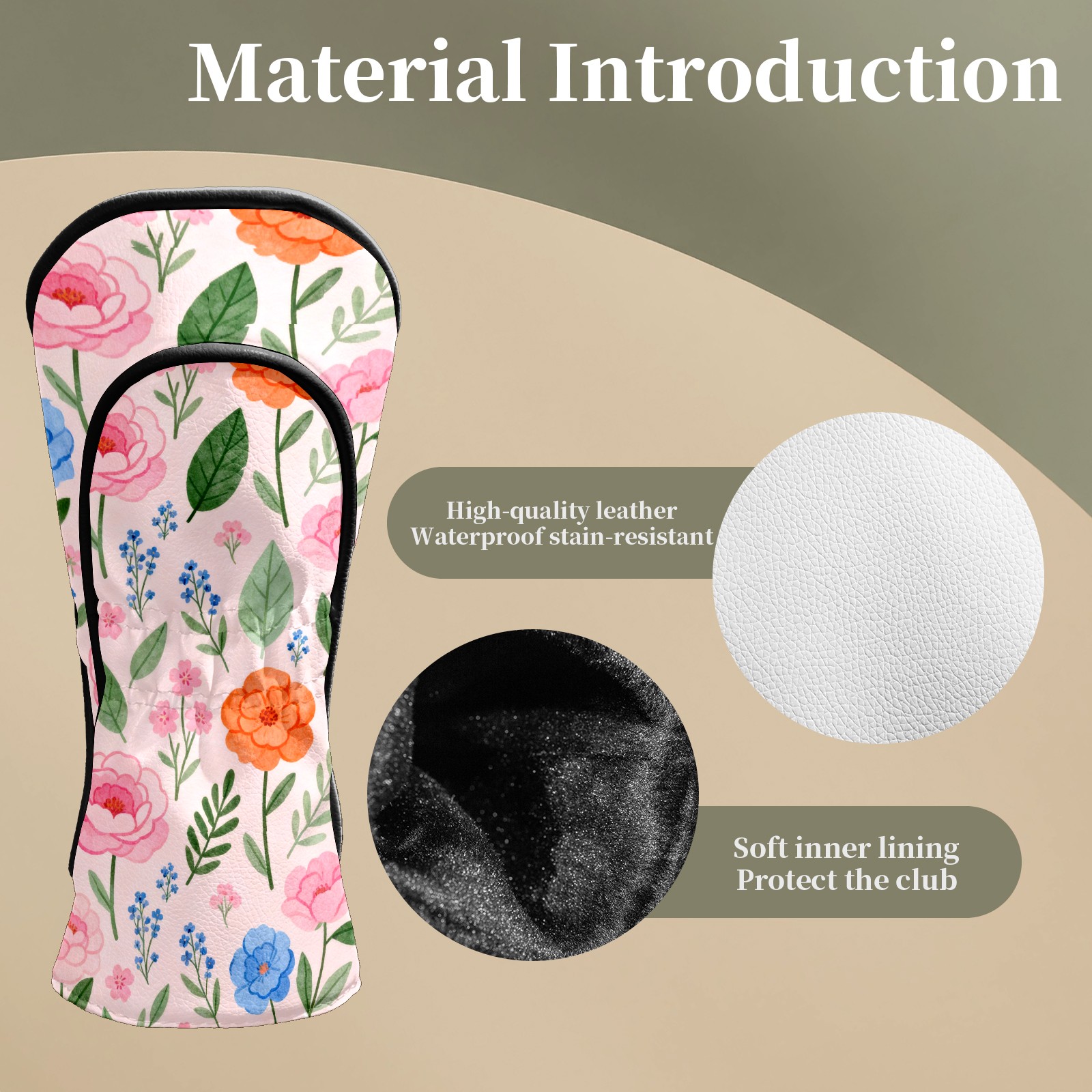 Golf Head Covers Leather Driver Head Cover, Premium Golf Club Covers with Soft Lining Fits Driver Hybrid Fairway 3/5 Wood Cover for Women Men Boys Girls (Flowers Pink)