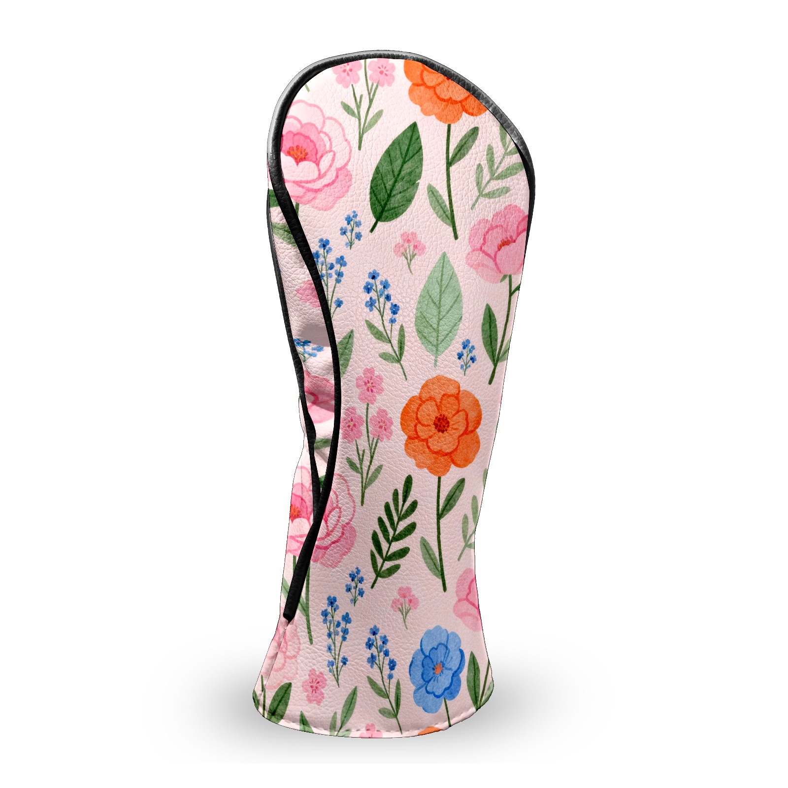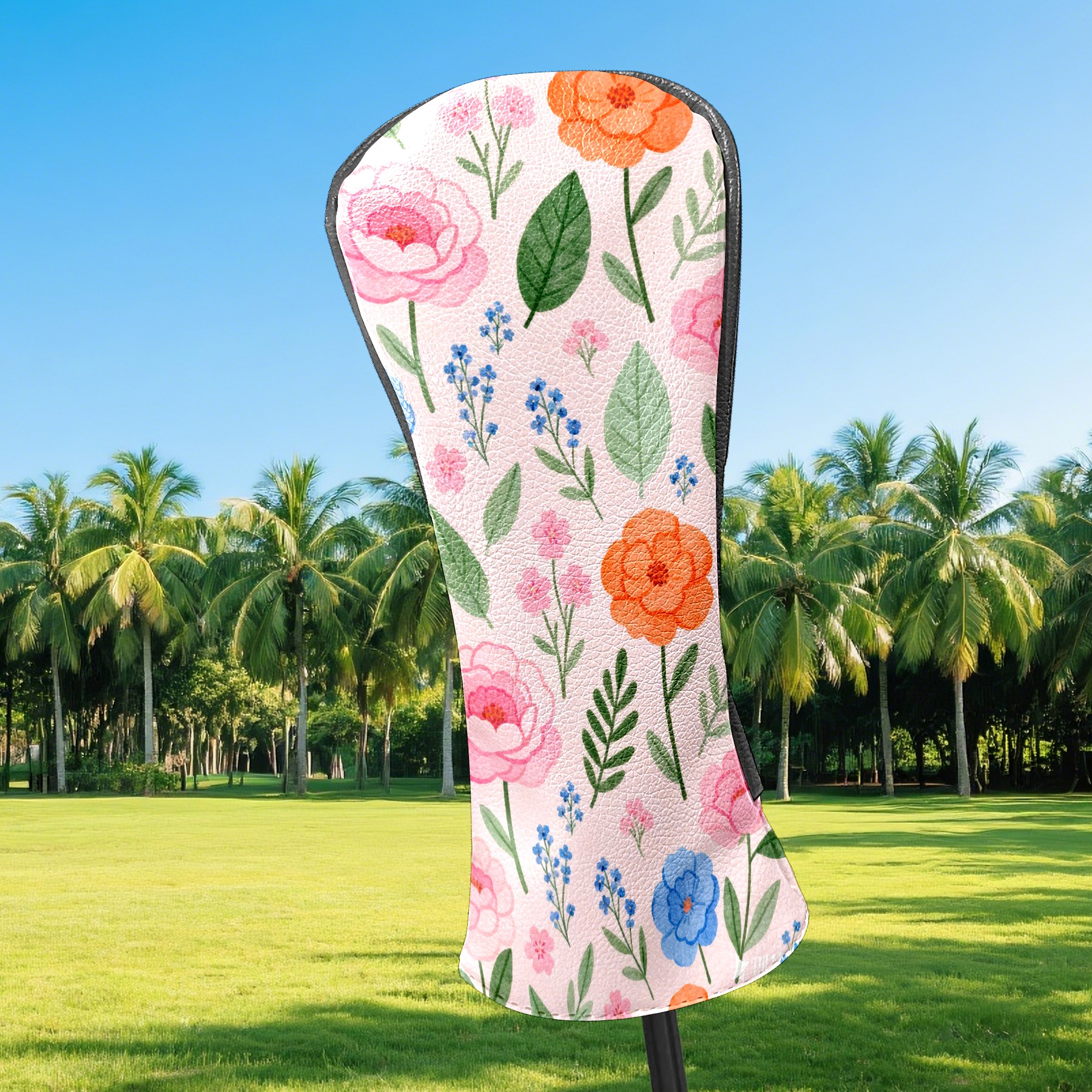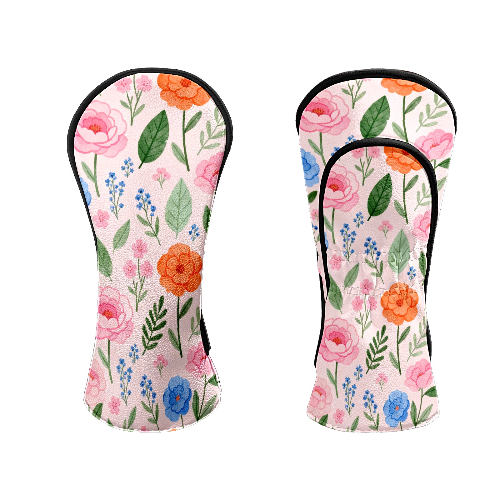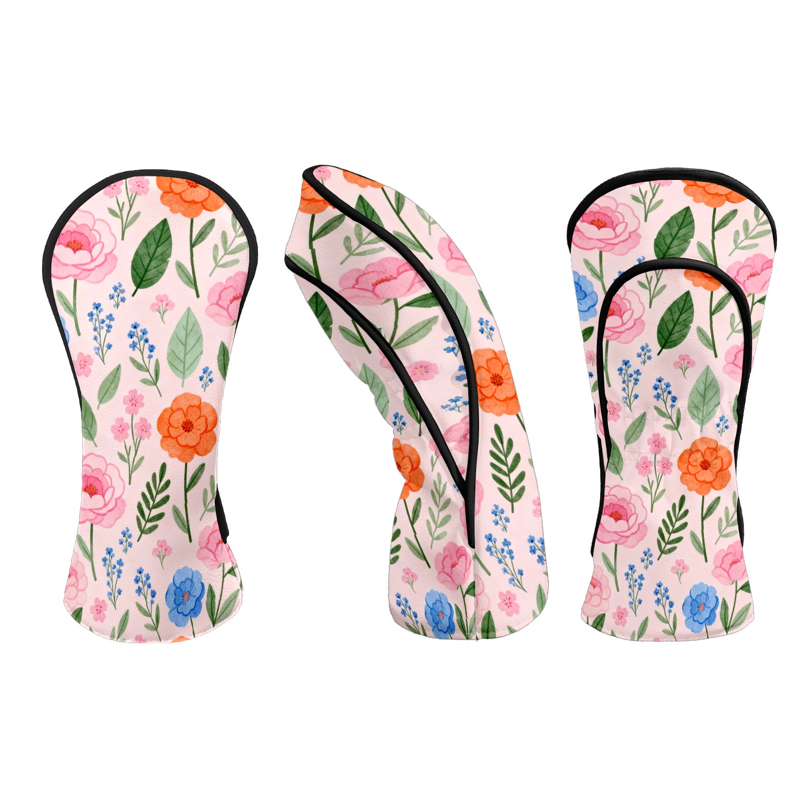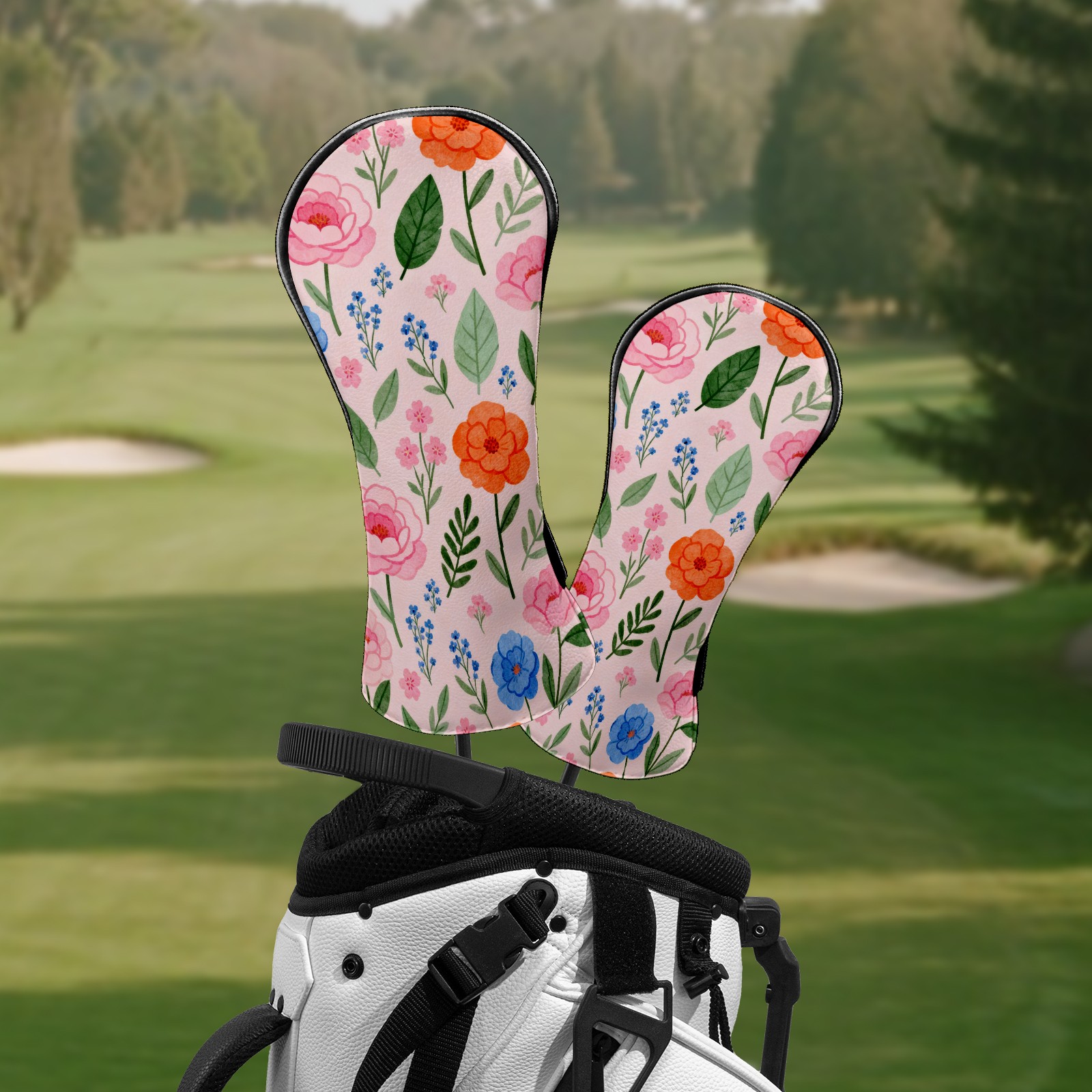 Golf Head Covers Leather Driver Head Cover, Premium Golf Club Covers with Soft Lining Fits Driver Hybrid Fairway 3/5 Wood Cover for Women Men Boys Girls (Flowers Pink)